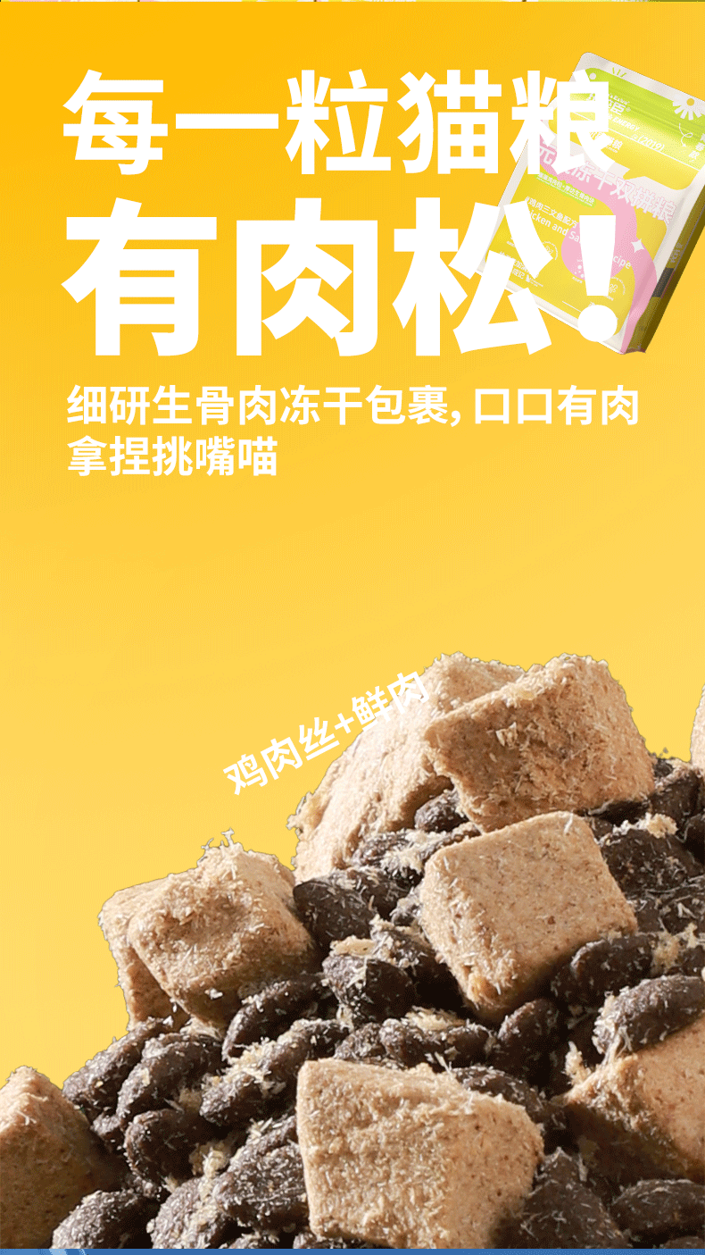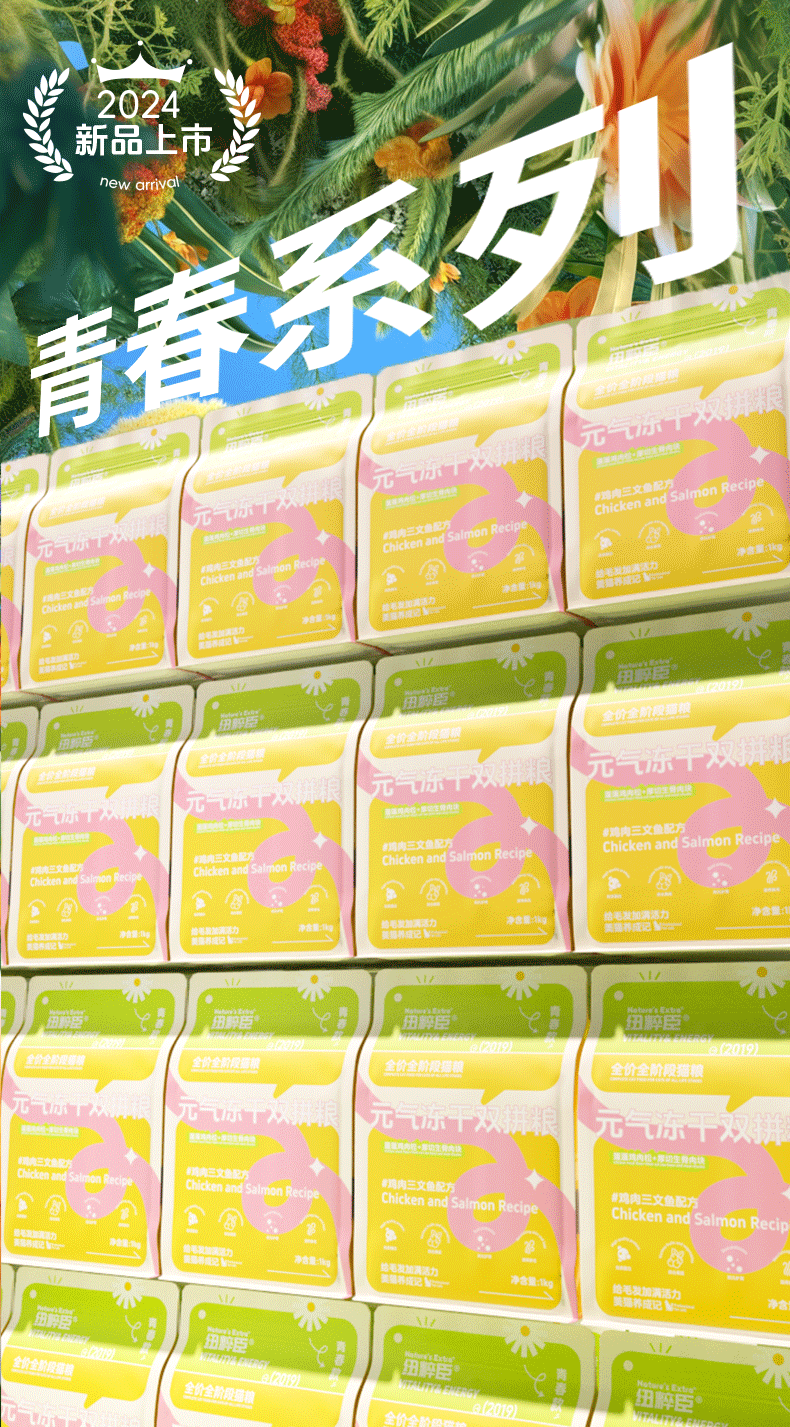 【青春升级焕新上市】纽粹臣青春款元气冻干双拼犬猫粮1kg蓬蓬鸡肉松+厚切生骨肉块不好卖包退