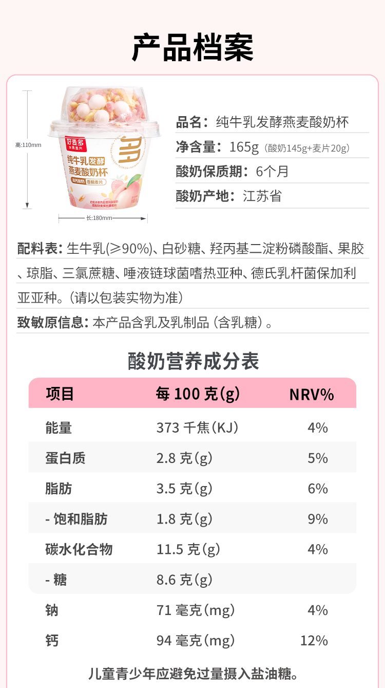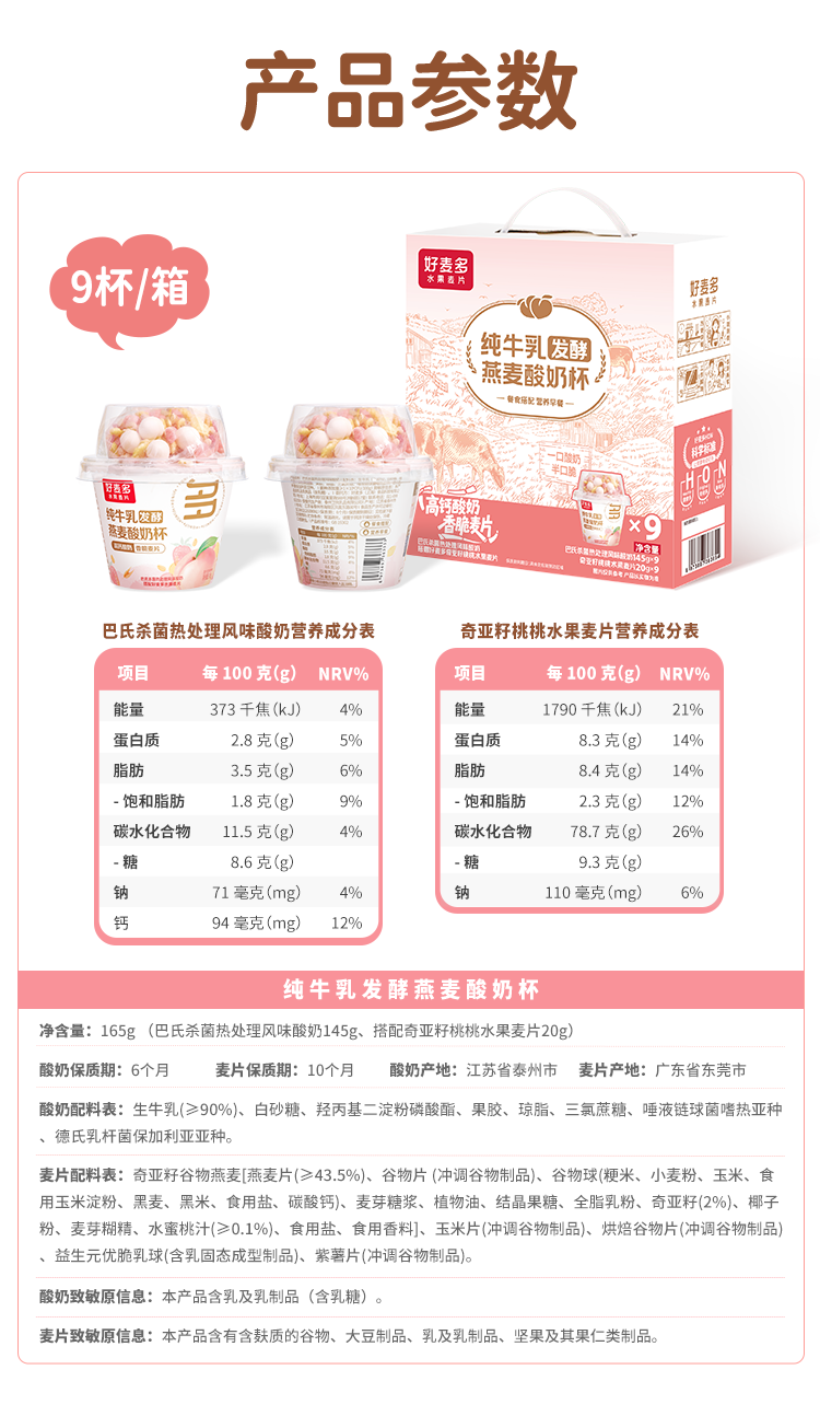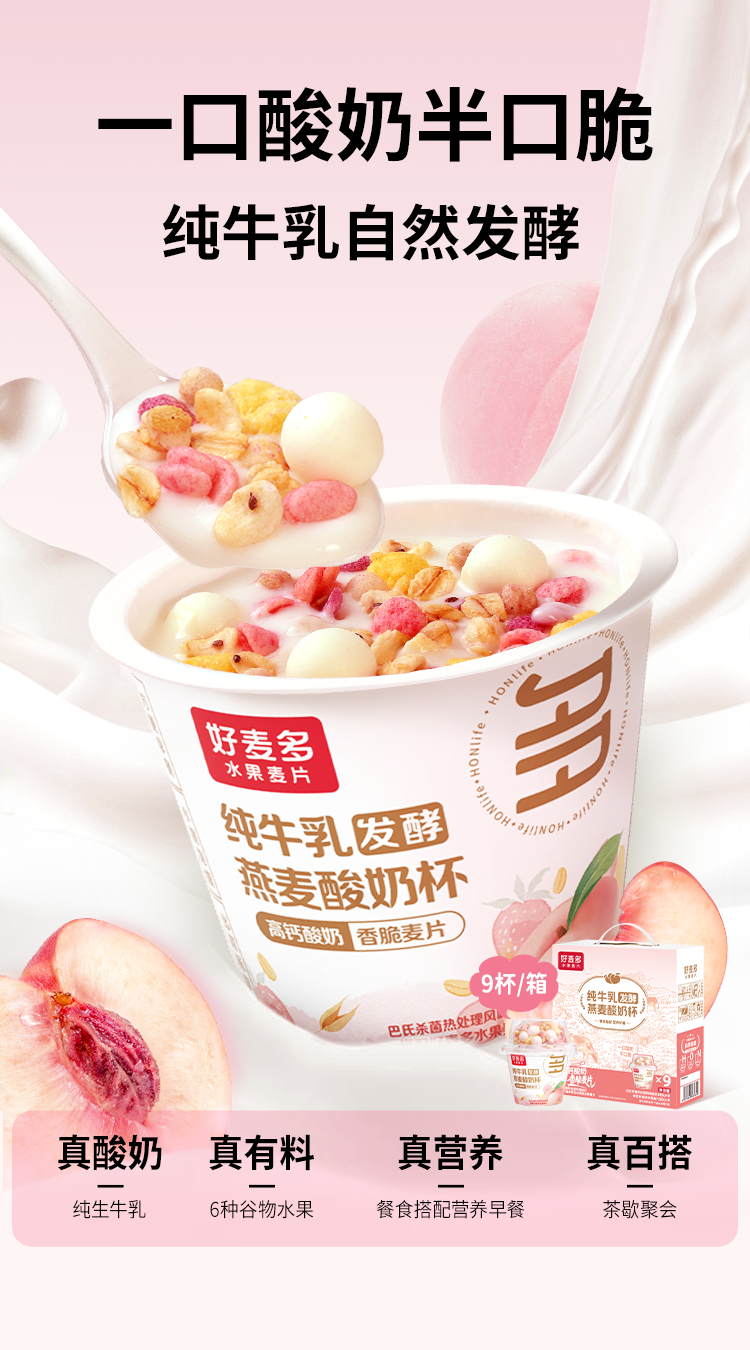 【节日礼盒】好麦多 燕麦酸奶杯(桃桃)165g*9 礼盒装