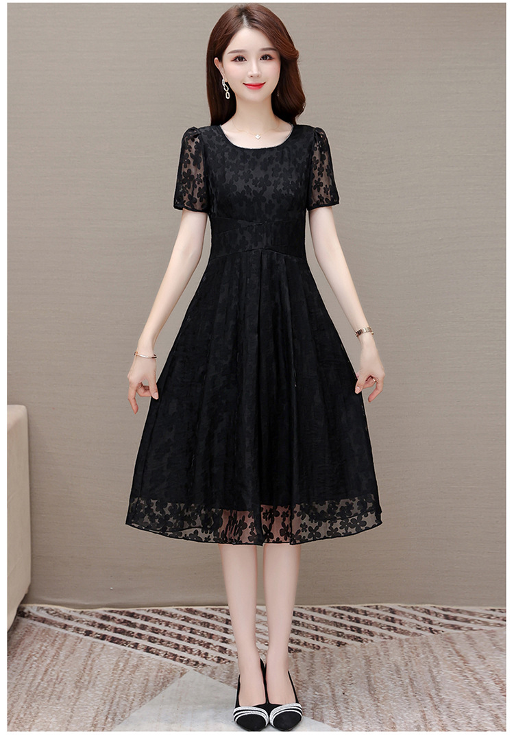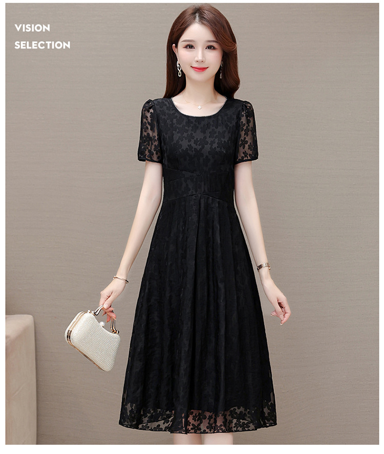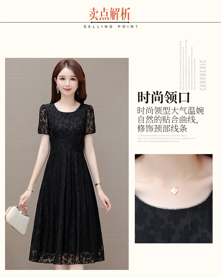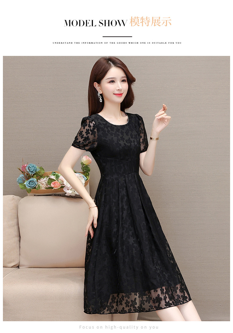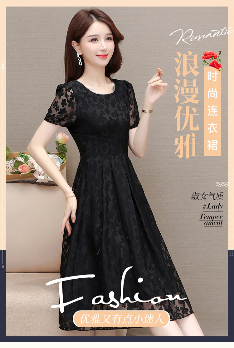 夏季新款,时尚女装短袖中长款百褶裙网纱花朵裙连衣裙QYM-HSY-X23A102-Y