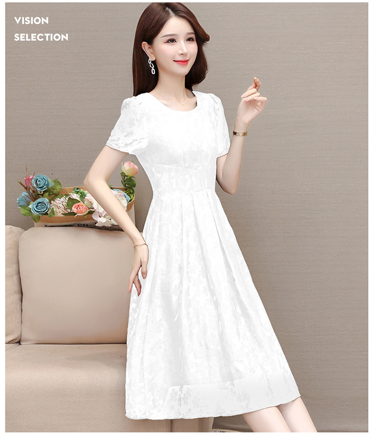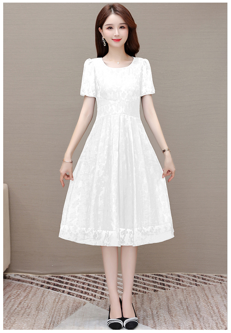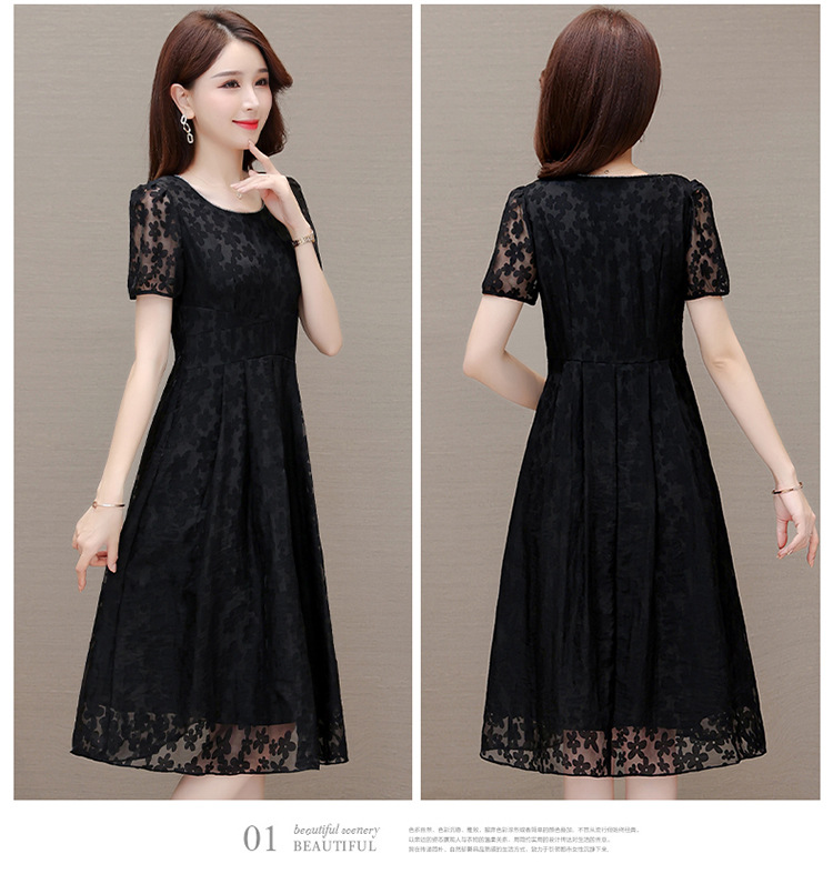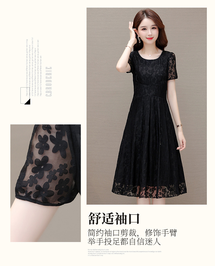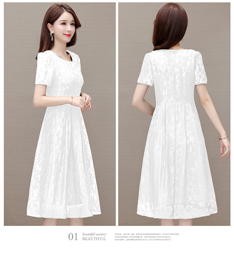 夏季新款,时尚女装短袖中长款百褶裙网纱花朵裙连衣裙QYM-HSY-X23A102-Y