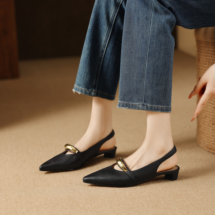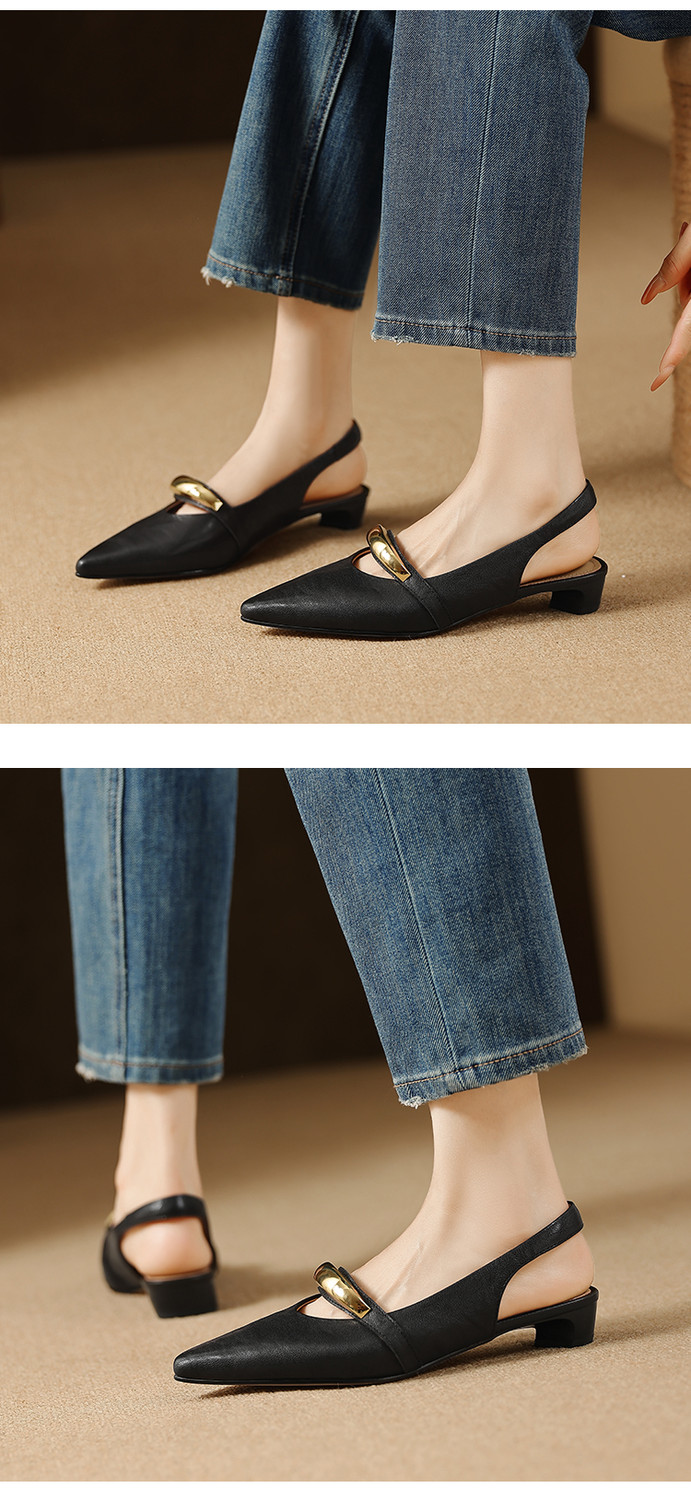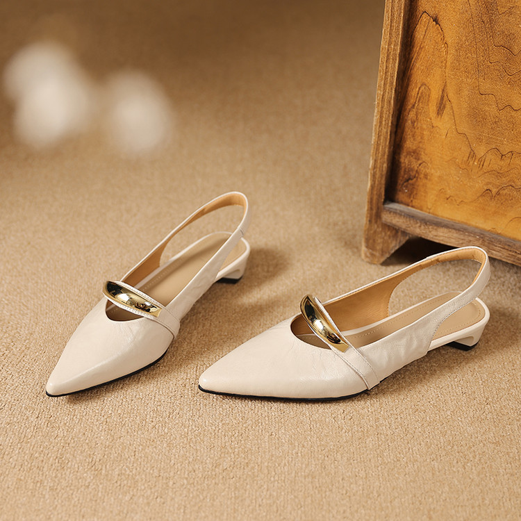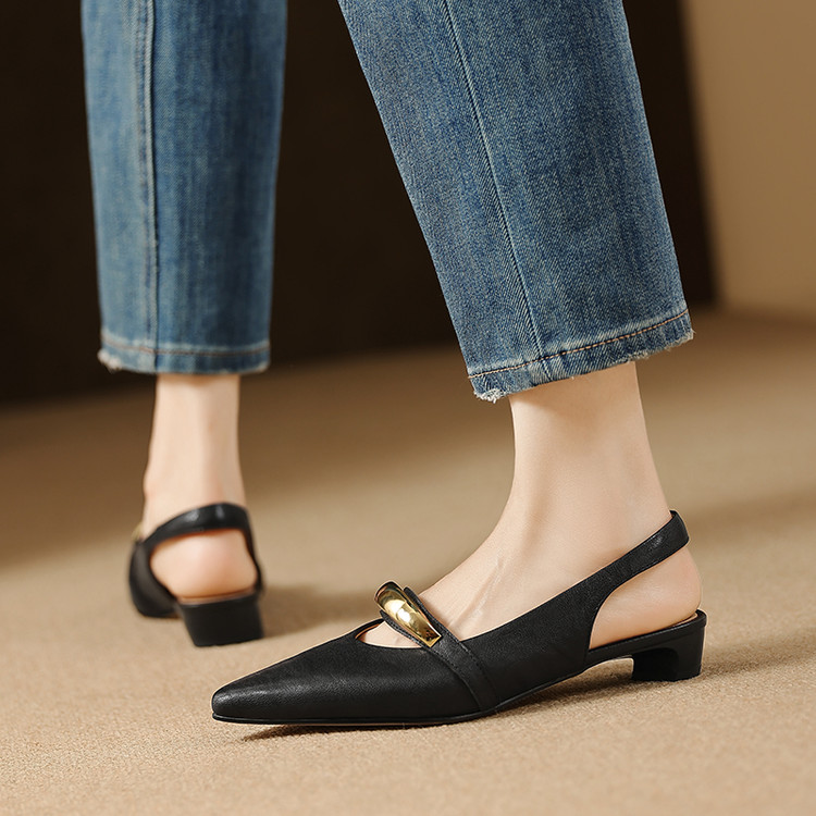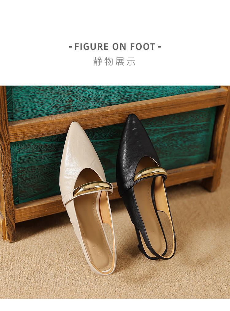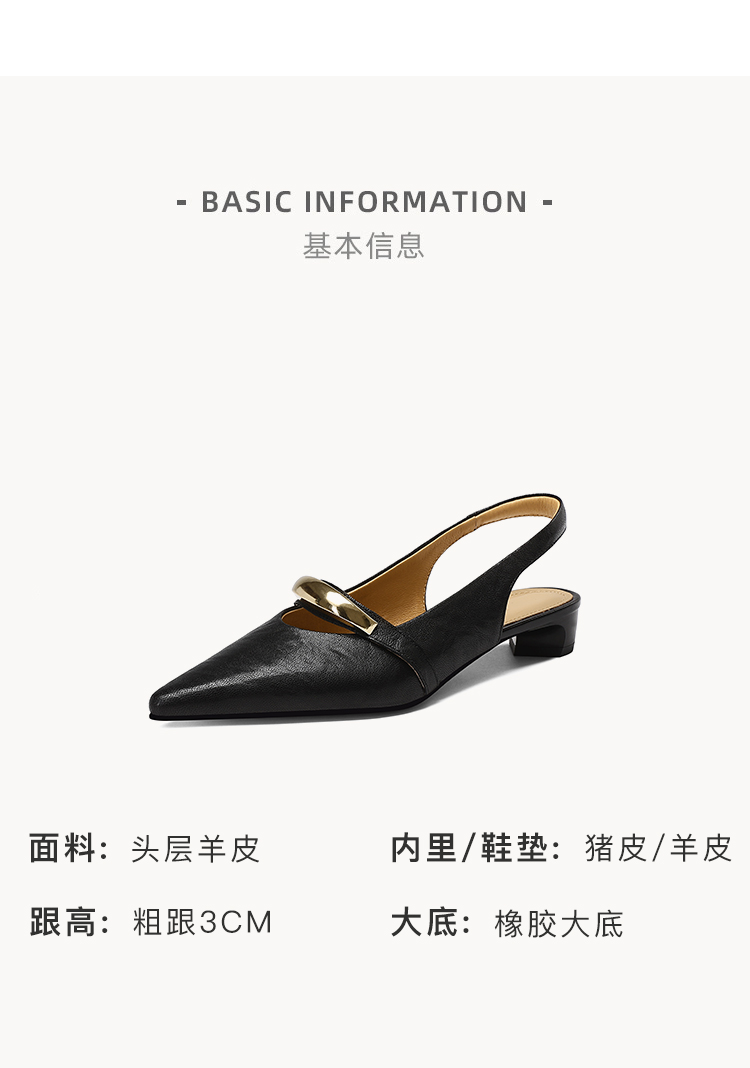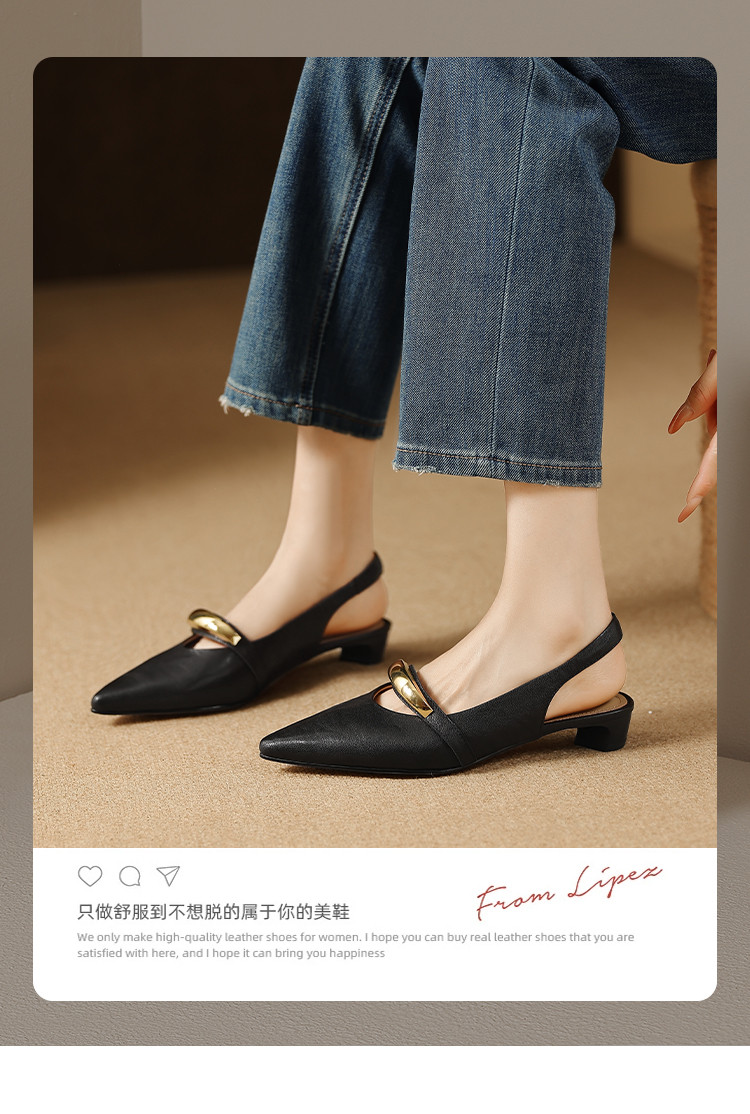 【预售5天】法式包头凉鞋女新款夏真皮尖头浅口后绊带低跟气质女鞋LG&627-1226