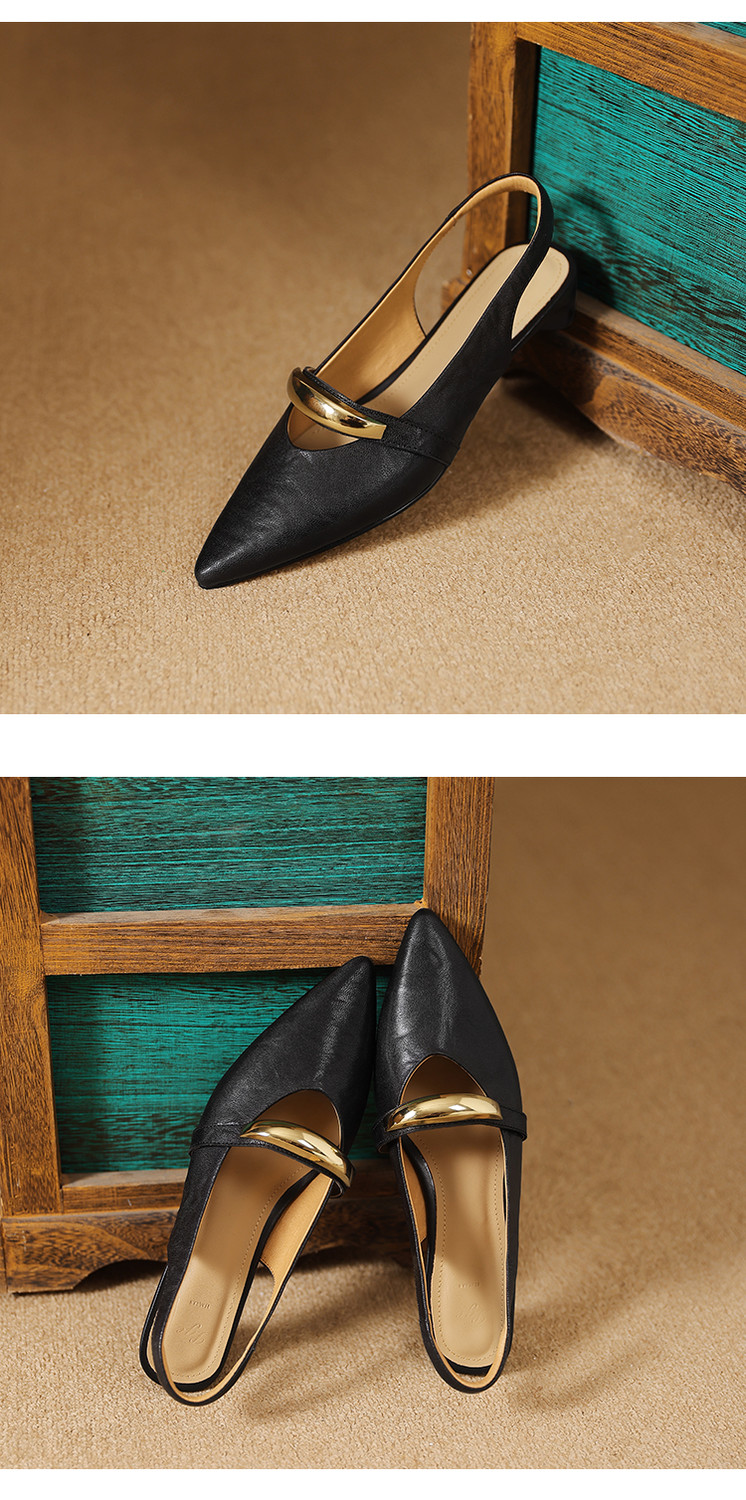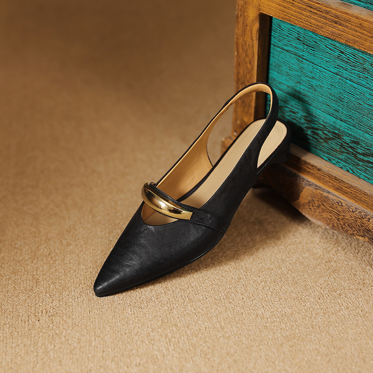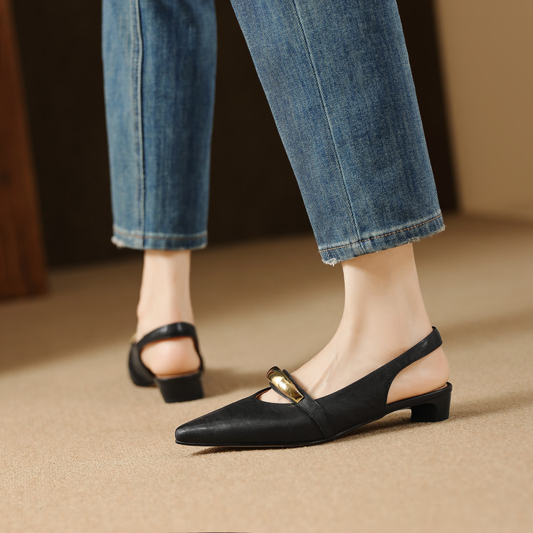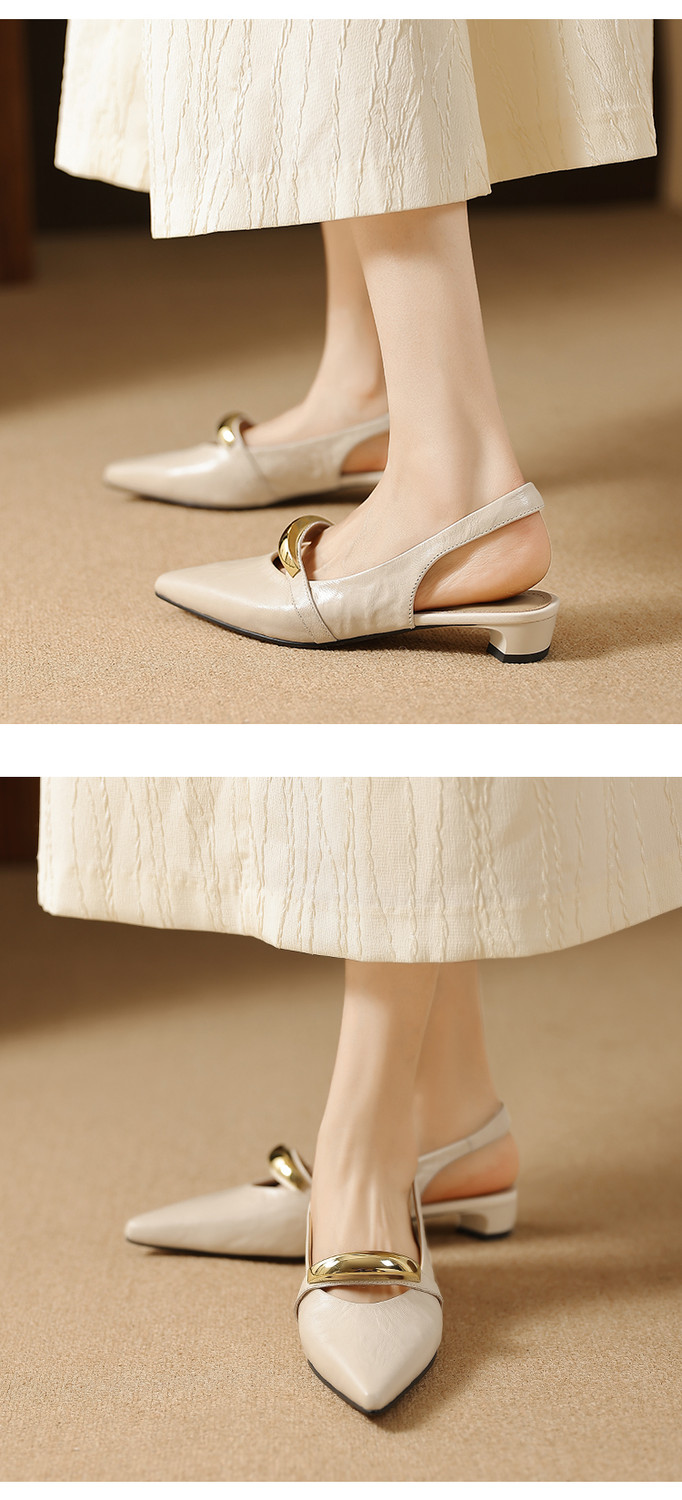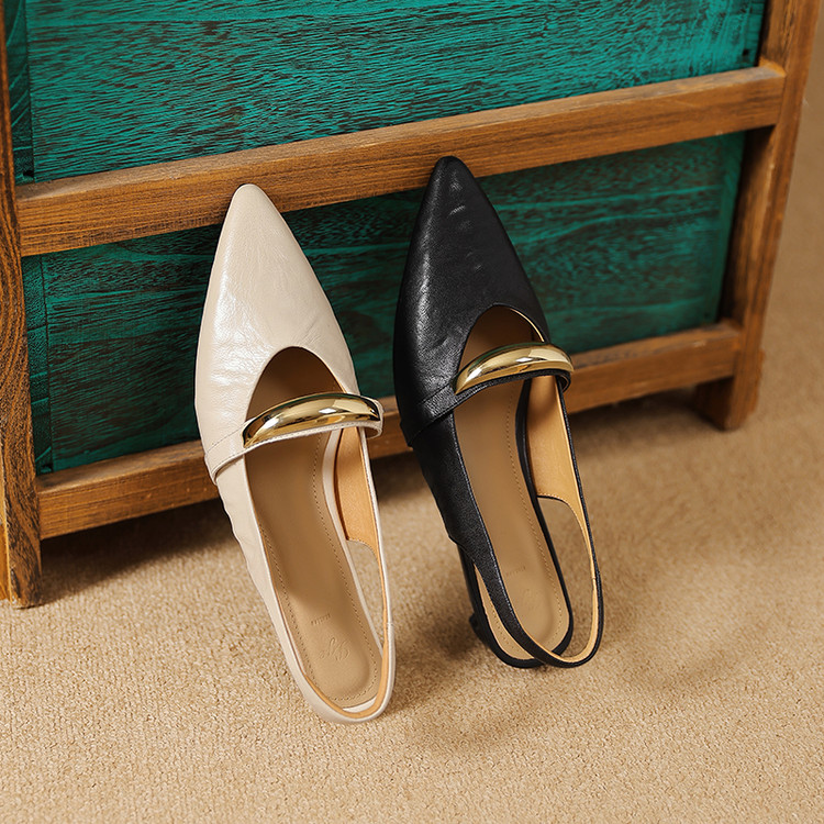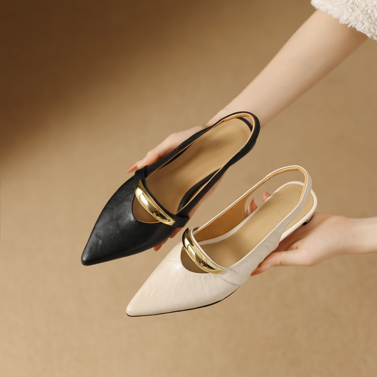 【预售5天】法式包头凉鞋女新款夏真皮尖头浅口后绊带低跟气质女鞋LG&627-1226