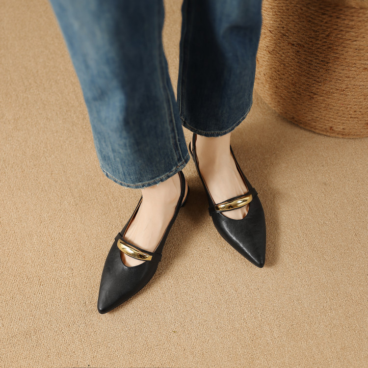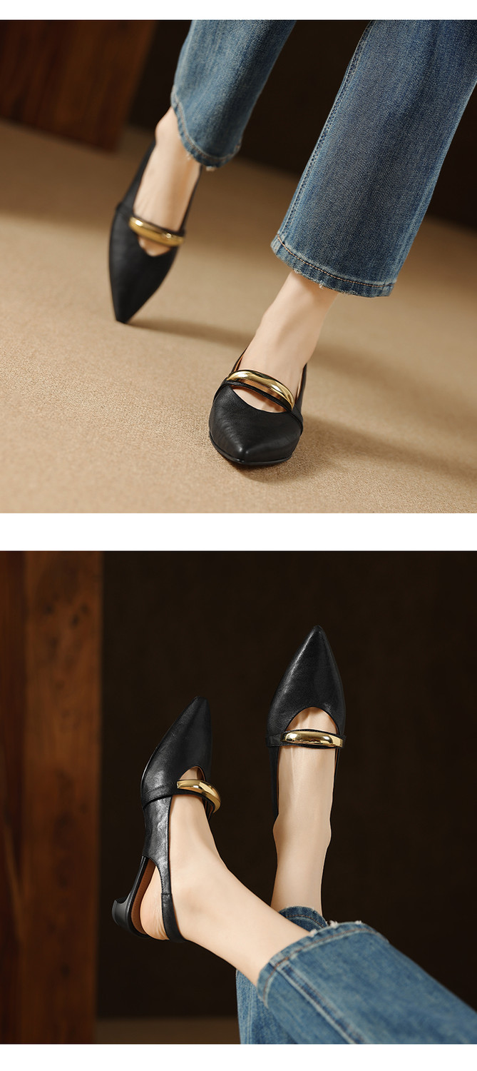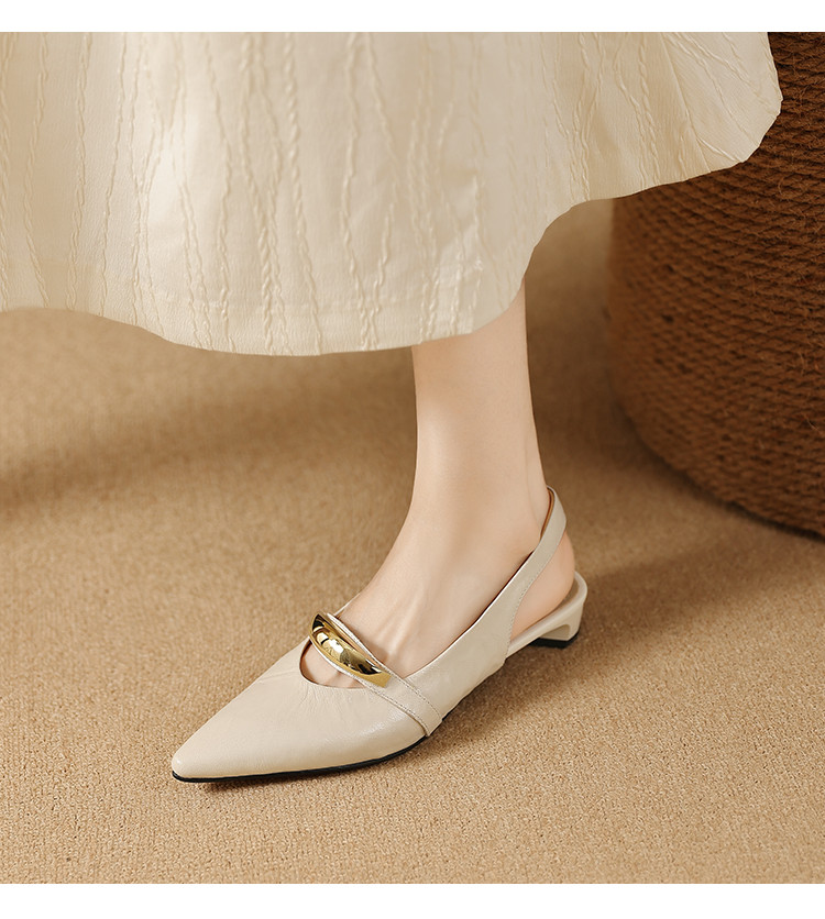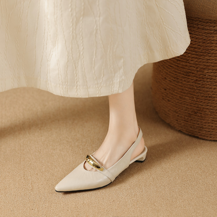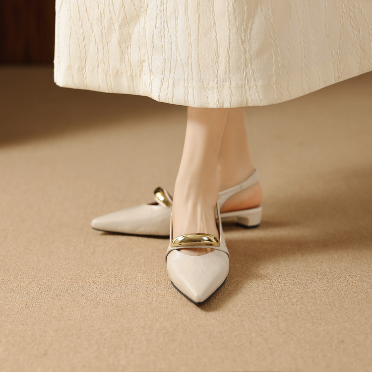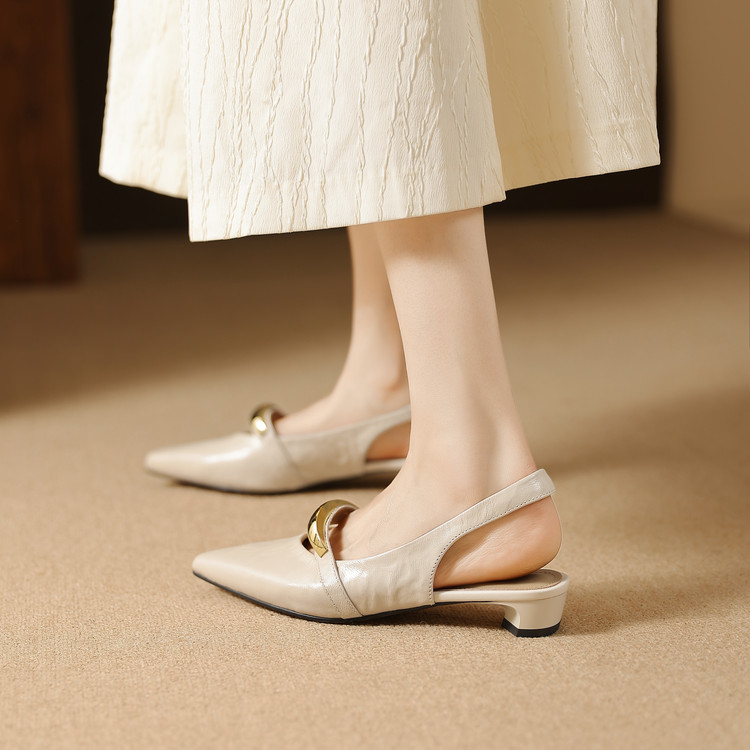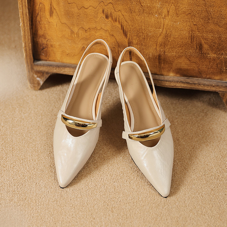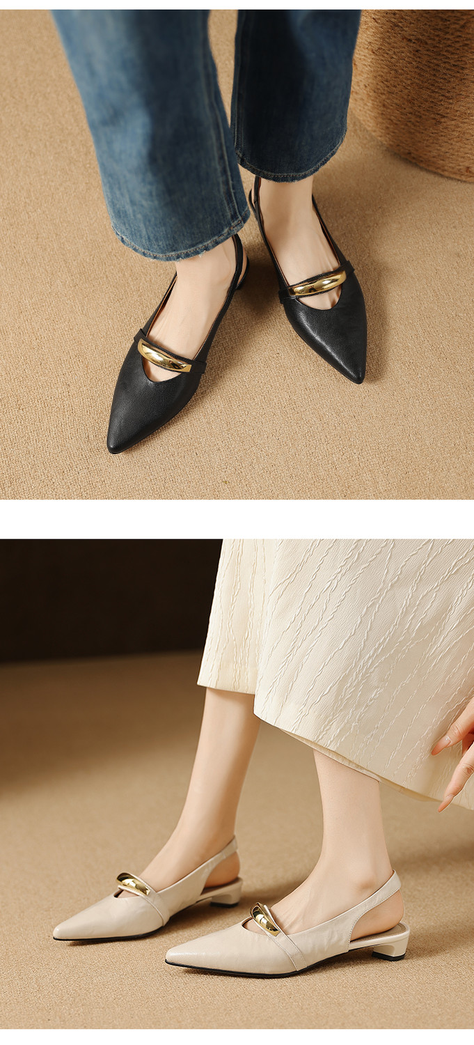 【预售5天】法式包头凉鞋女新款夏真皮尖头浅口后绊带低跟气质女鞋LG&627-1226