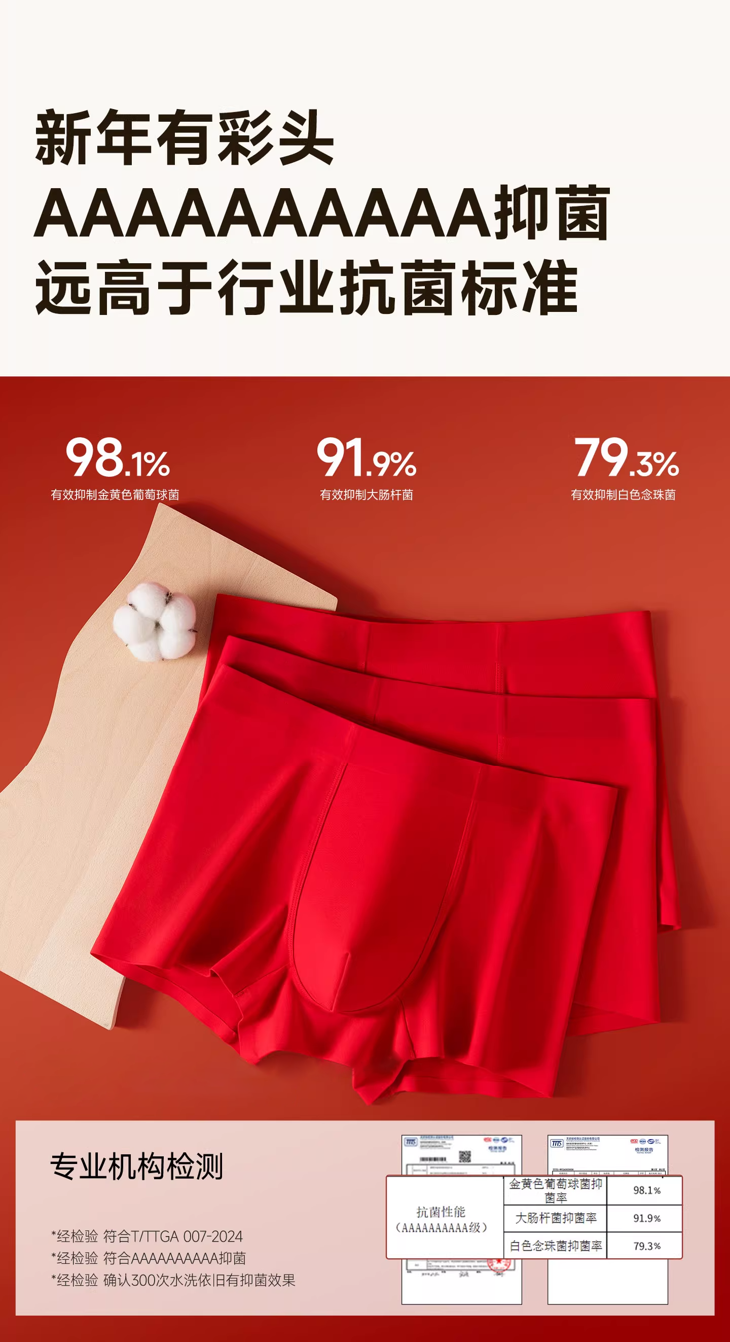 本命年红色抗菌男士内裤UA51024