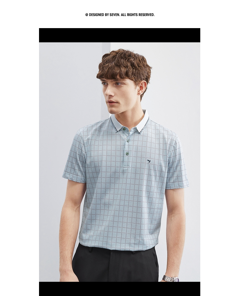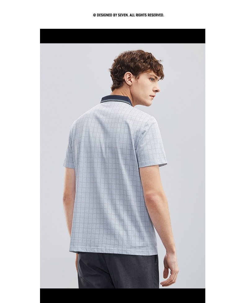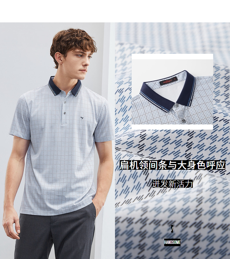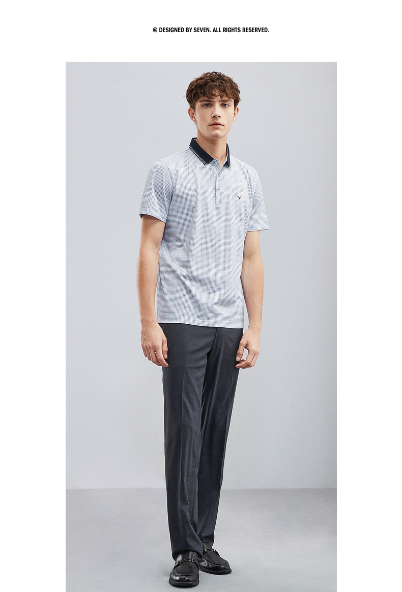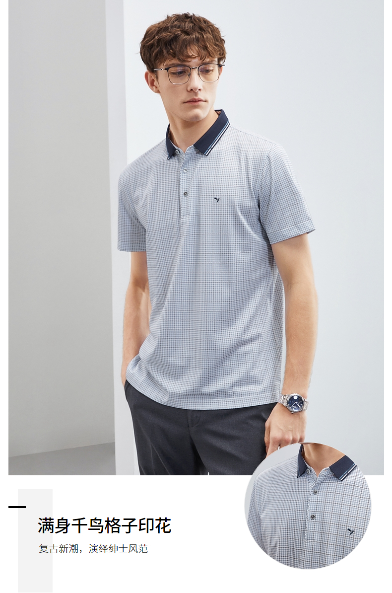 柒牌polo衫男短袖夏季薄款时尚休闲中老年千鸟格翻领T恤上衣124T73310