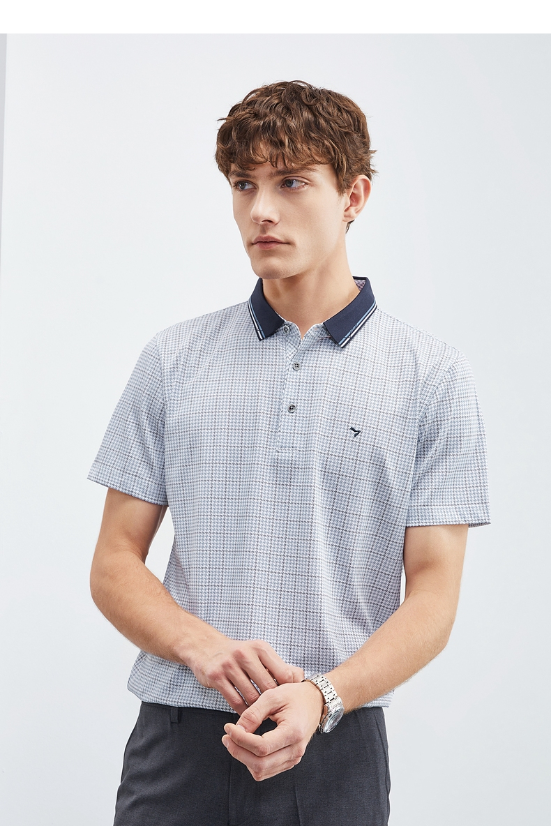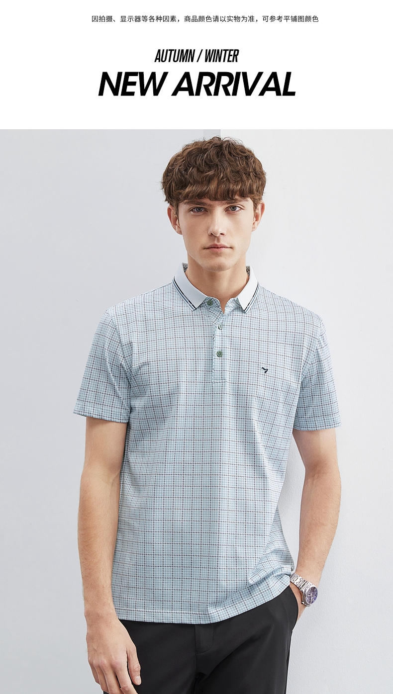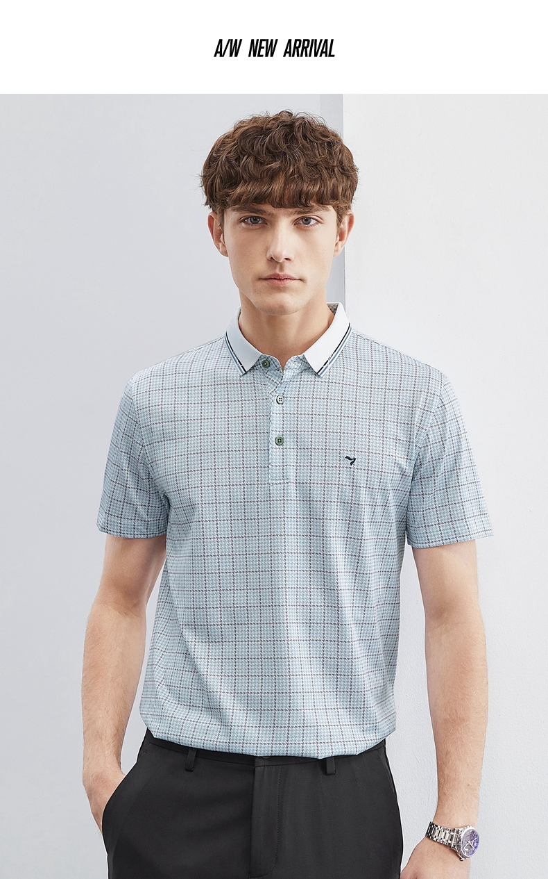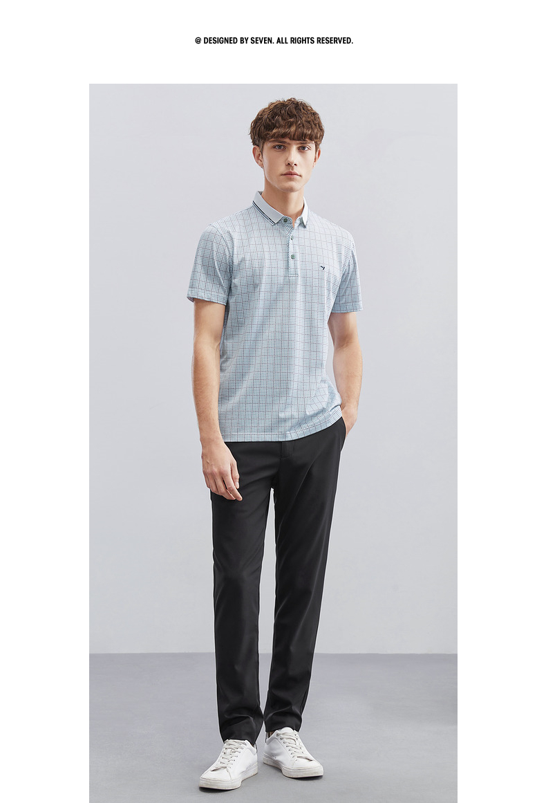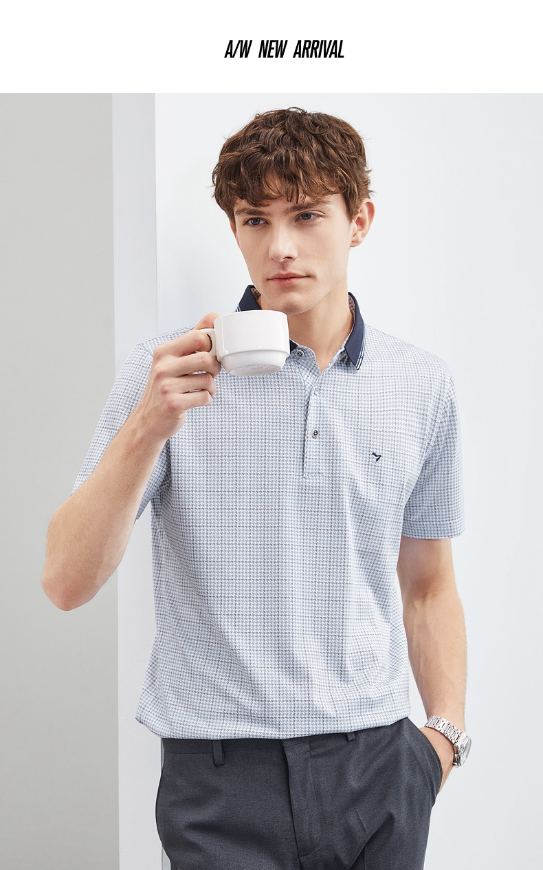 柒牌polo衫男短袖夏季薄款时尚休闲中老年千鸟格翻领T恤上衣124T73310