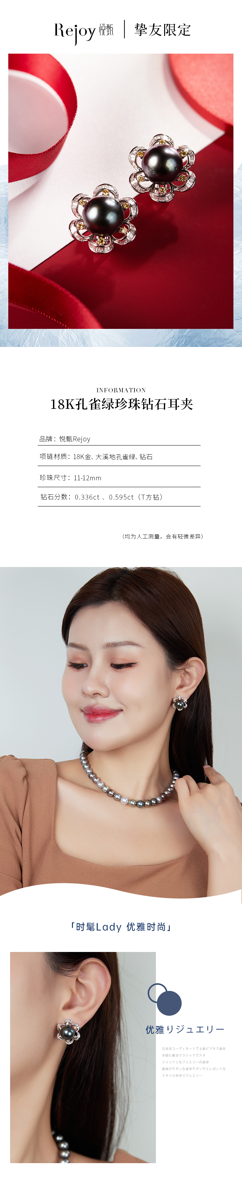 【挚友限定】18K金孔雀绿珍珠钻石耳夹11-12mm 繁花