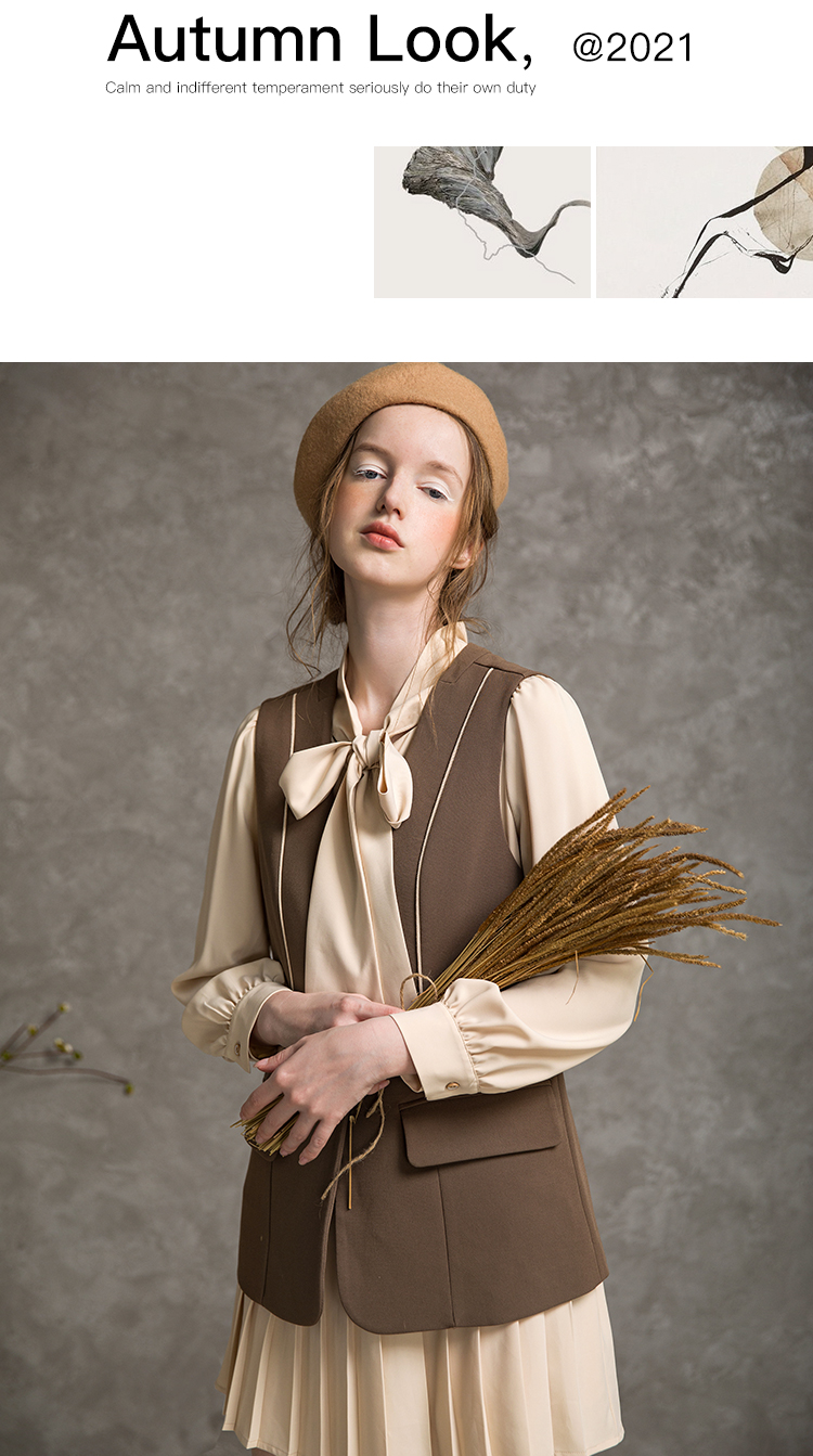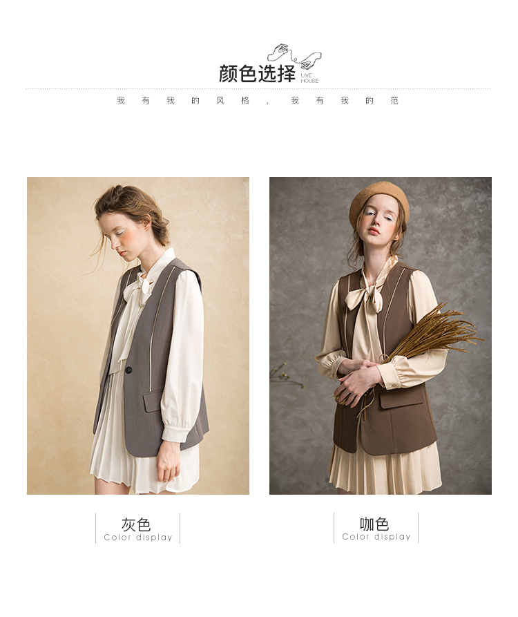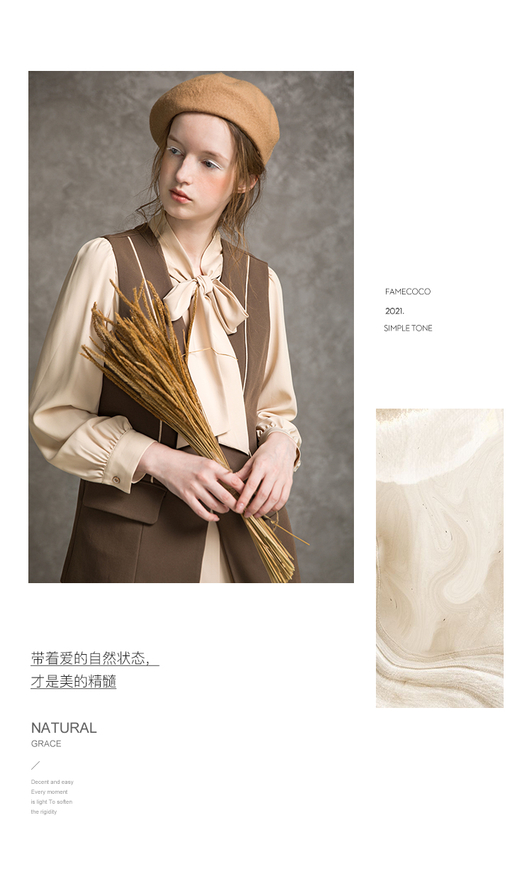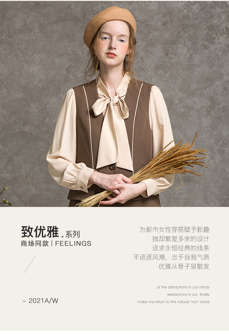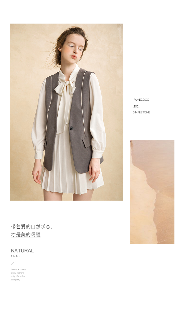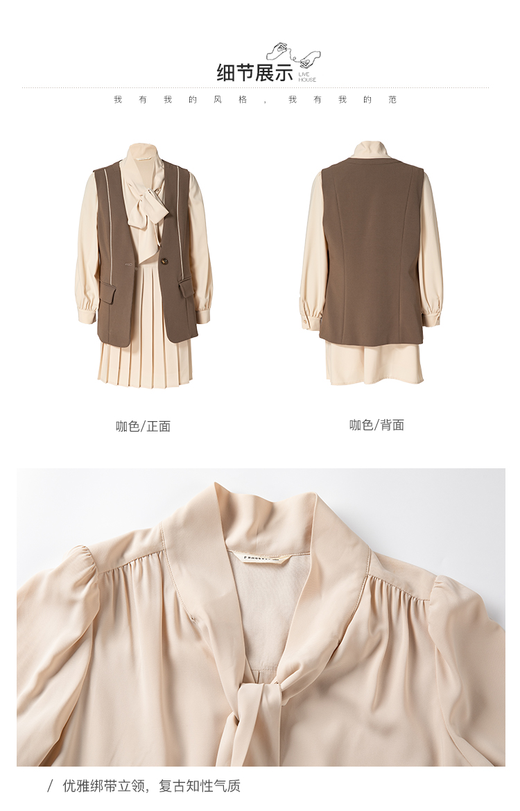 famecoco范可儿套装女秋时尚马甲衬衫两件套F216EC008