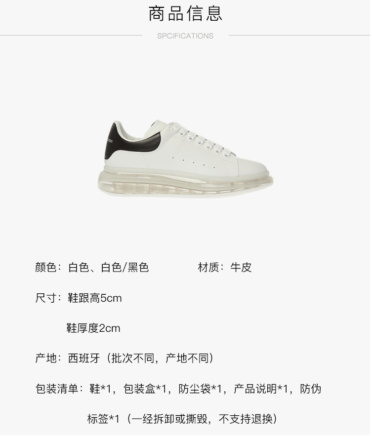 ALEXANDER MCQUEEN 亚历山大.麦昆 男士阔型透明底运动鞋小白鞋 七夕礼物 纯黑 604232