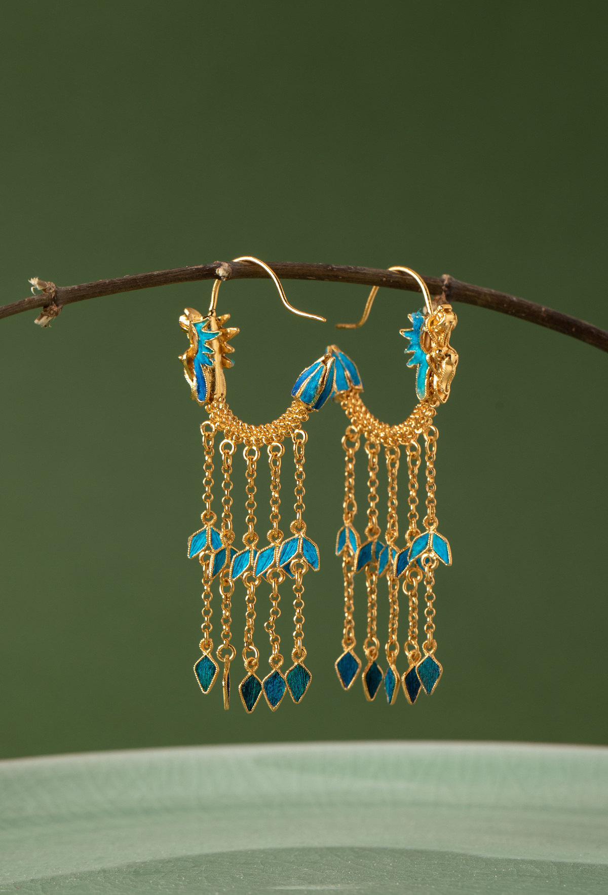 【林栖设计小店】孔雀羽毛耳环仿点翠复古2025秋冬新款配饰女2954161