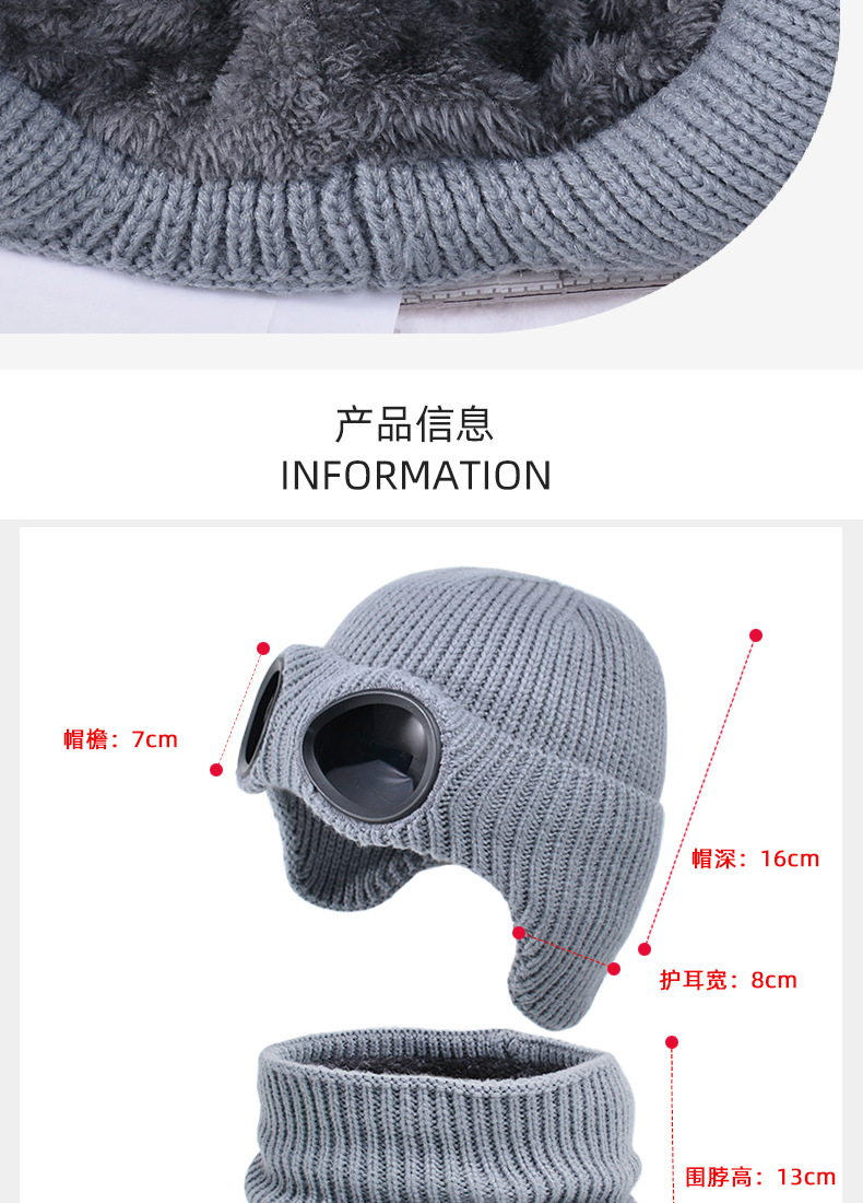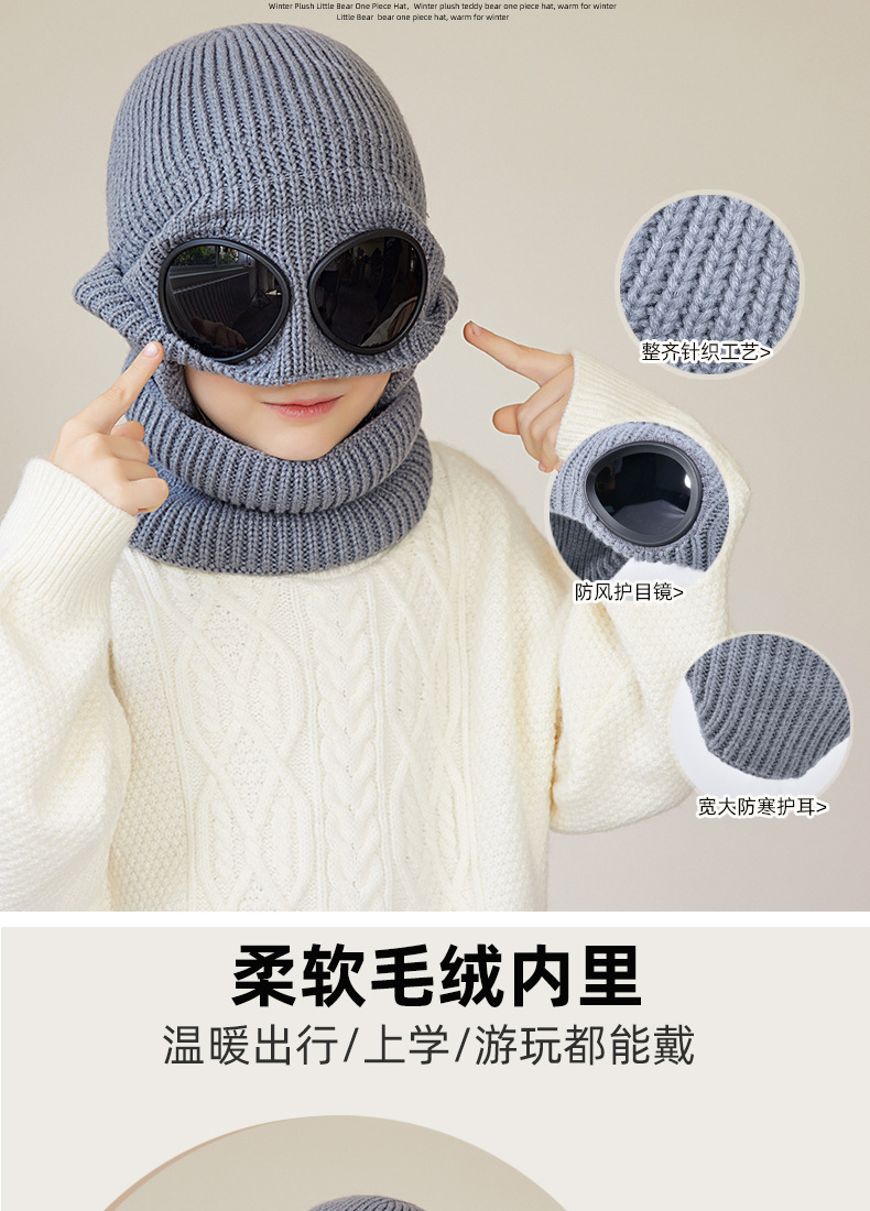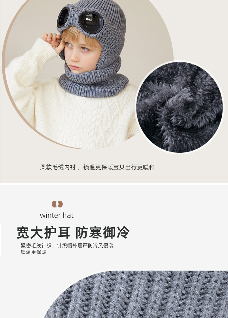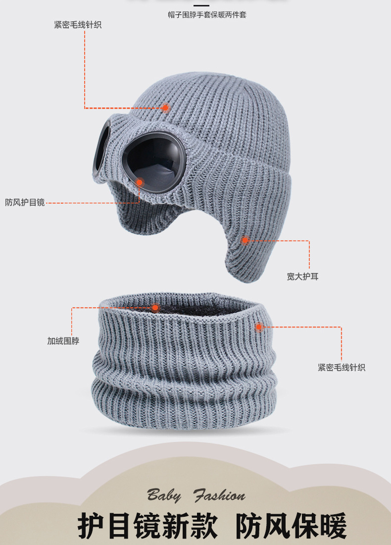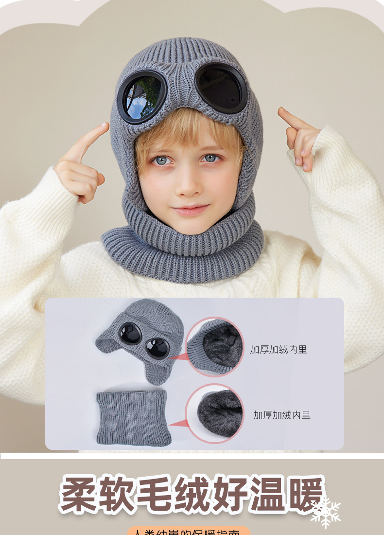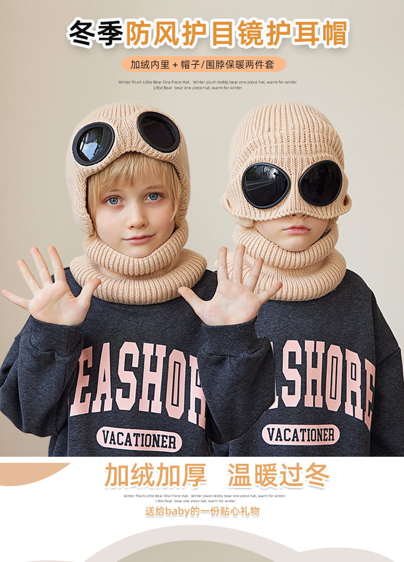 儿童防风护目镜护耳帽帽子围脖两件套儿童加绒保暖帽围脖冬季