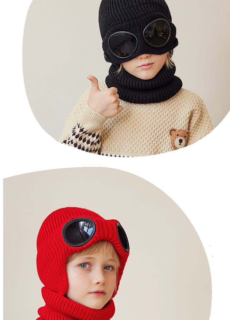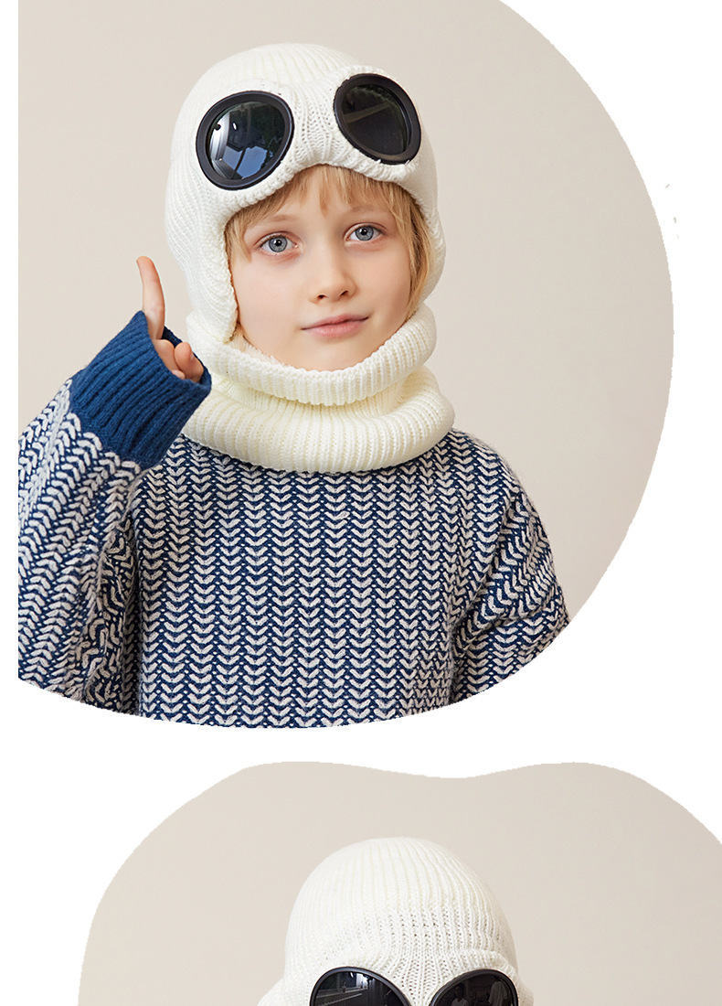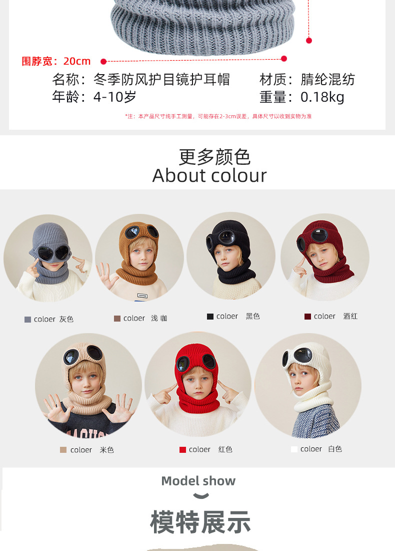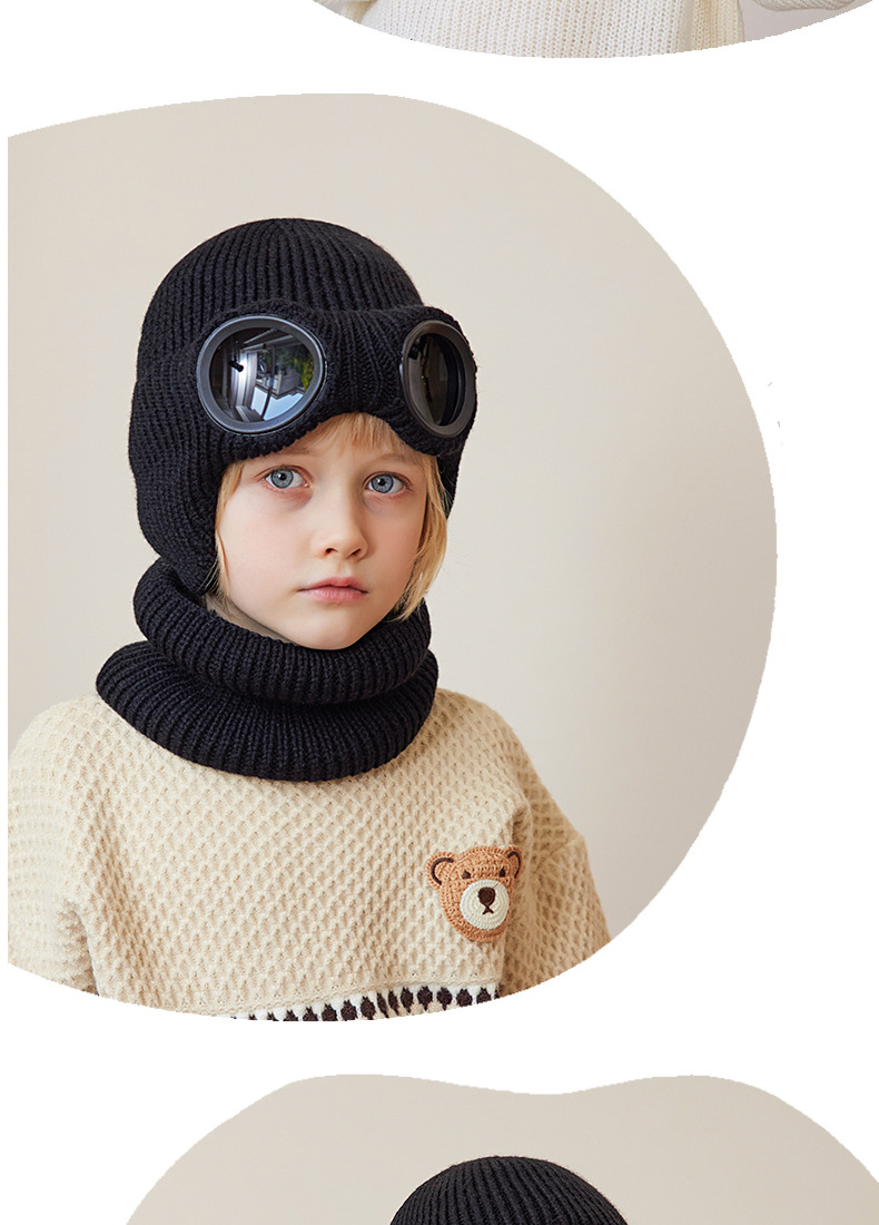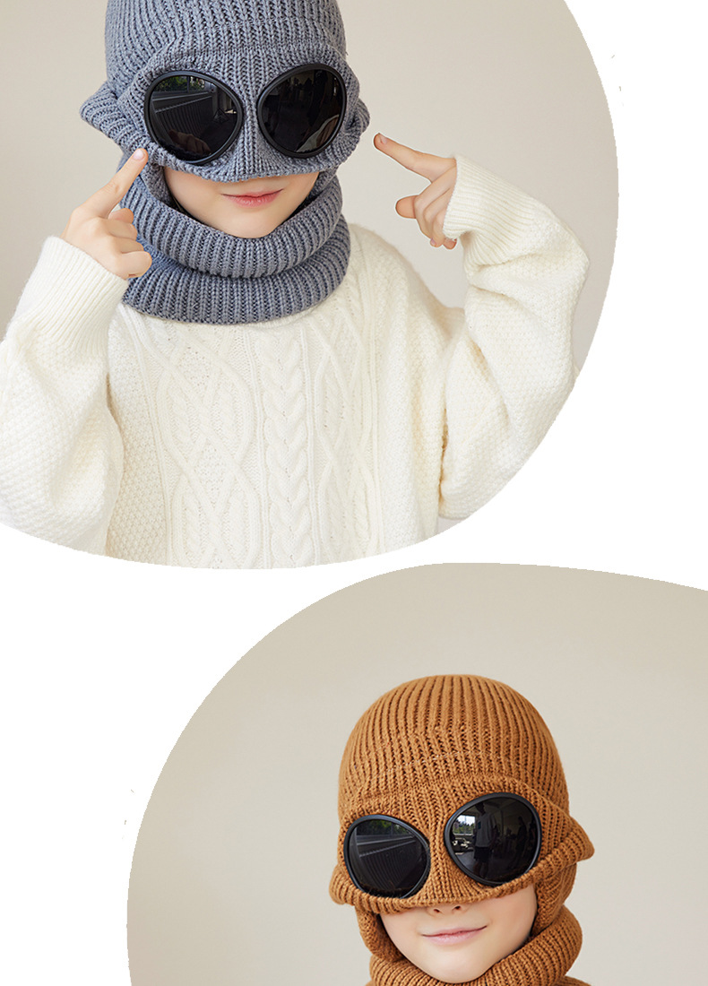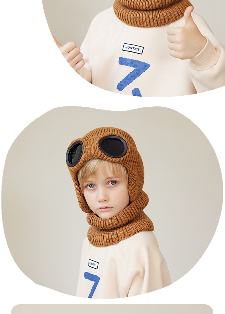 儿童防风护目镜护耳帽帽子围脖两件套儿童加绒保暖帽围脖冬季