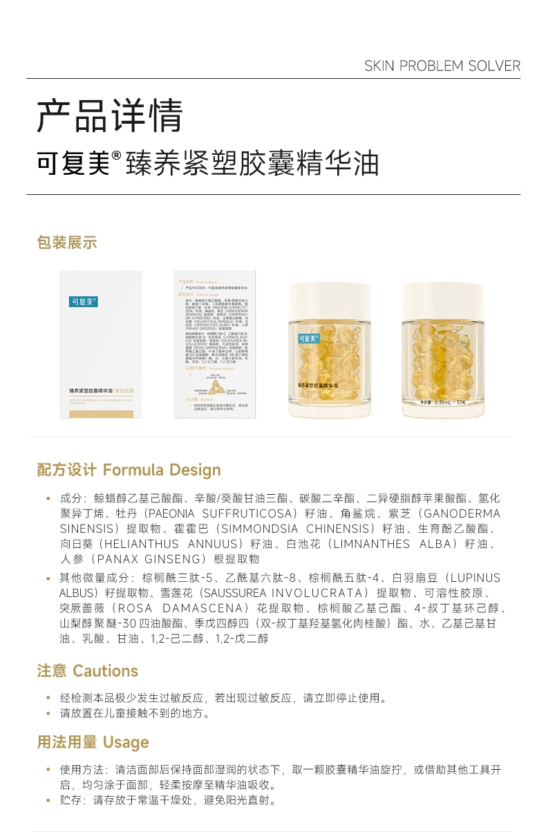 可复美臻养紧塑胶囊精华油50颗/瓶(轻养油)(配剪刀 非食用)