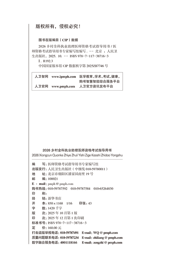 书名:2026乡村全科执业助理医师资格考试指导用书