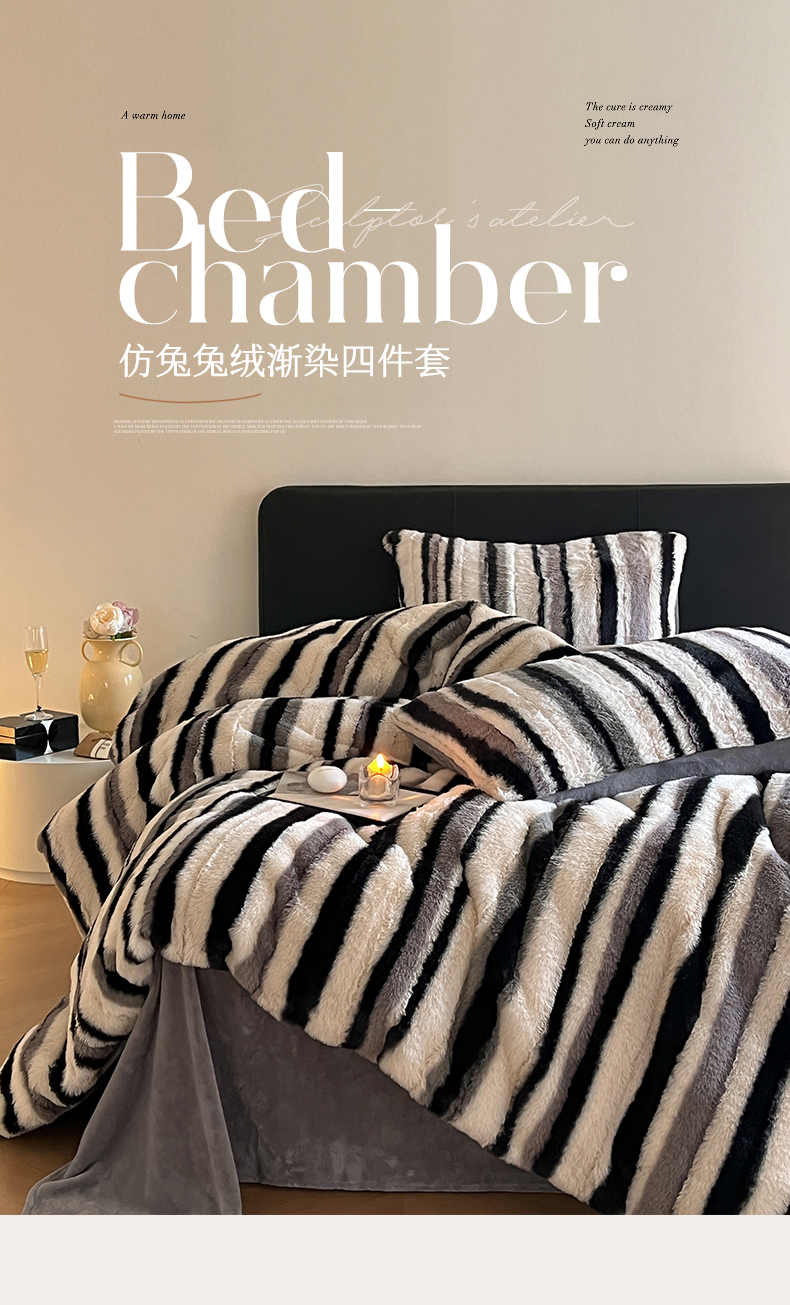 【YW】无忧购高级感撸猫感兔兔绒四件套轻奢高档加厚保暖双面绒牛奶绒床上用品(截单后3-5天发货)