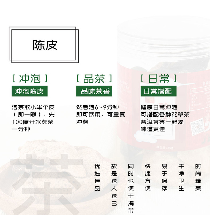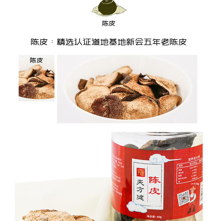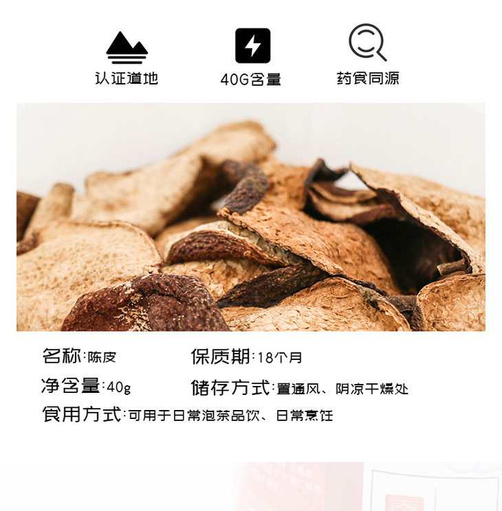 陈皮瓶装40克,广东新会五年老陈皮,自然陈化,传统制作