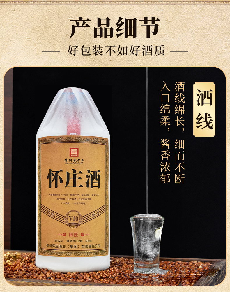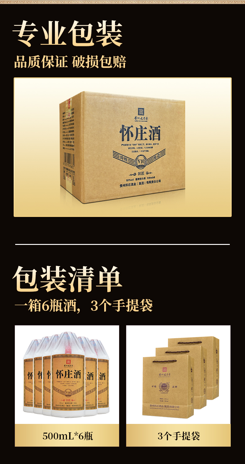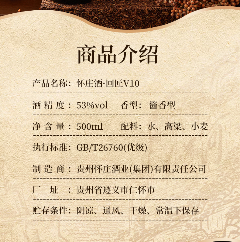 怀庄酒 回匠V10 酱香型白酒 53度500ml*6瓶装