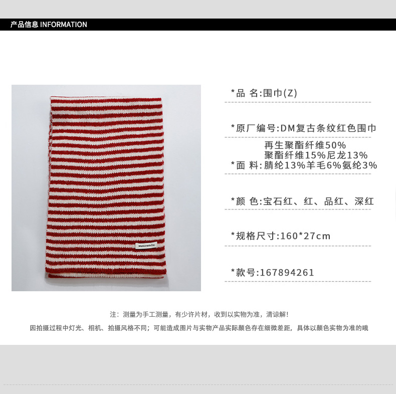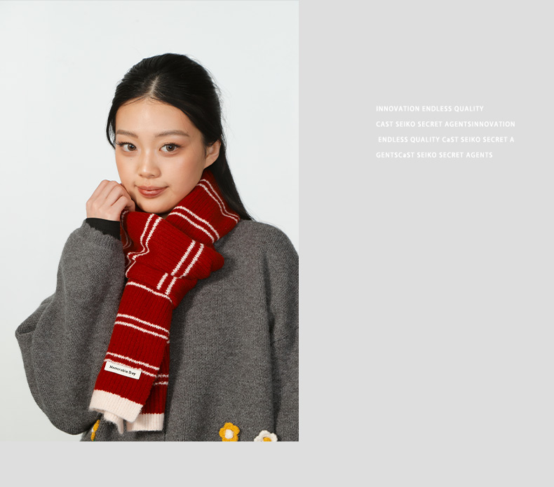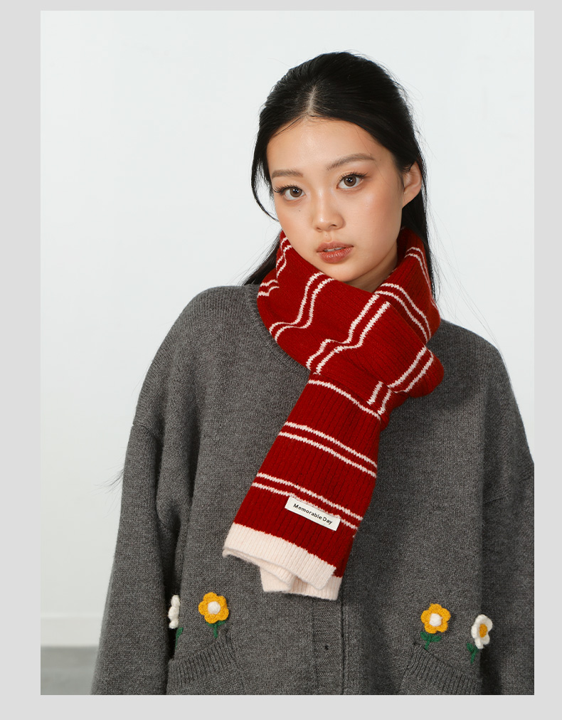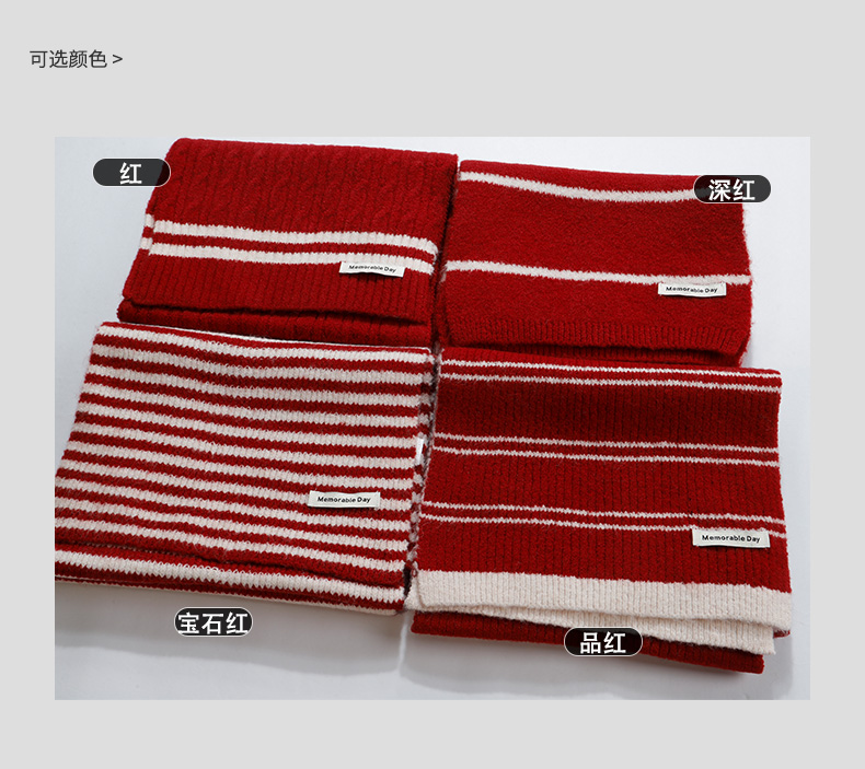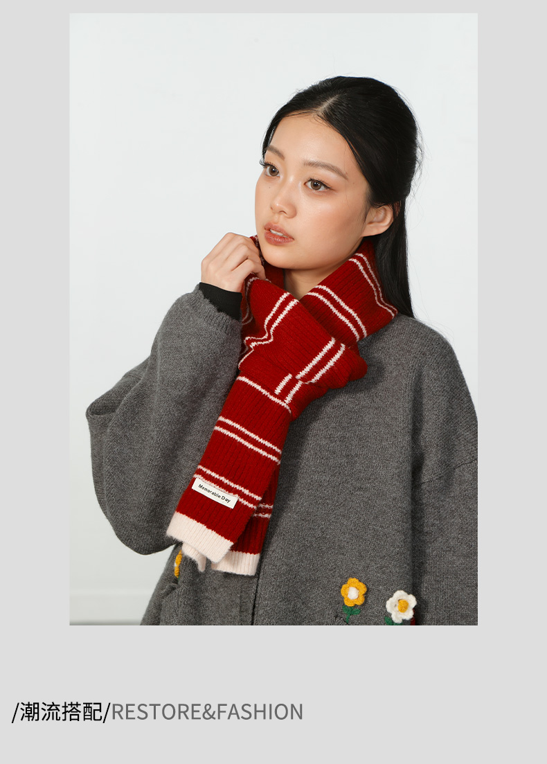 轻便保暖DM复古条纹红色围巾-纪念日百货门店同款167894261