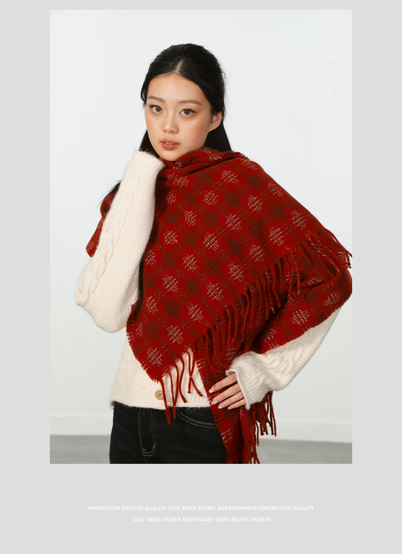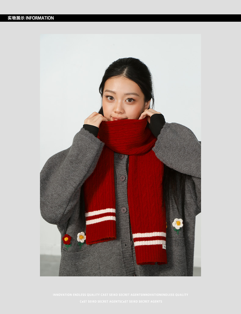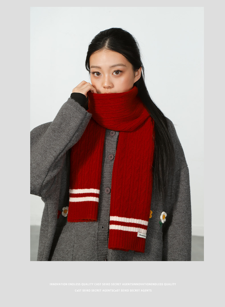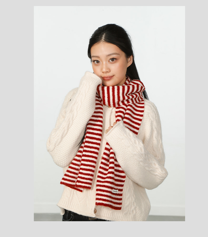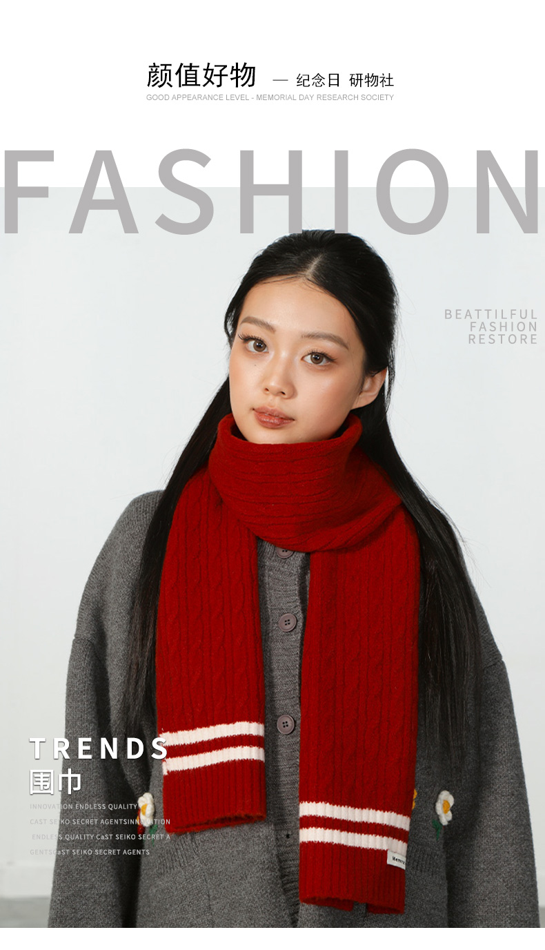 轻便保暖DM复古条纹红色围巾-纪念日百货门店同款167894261