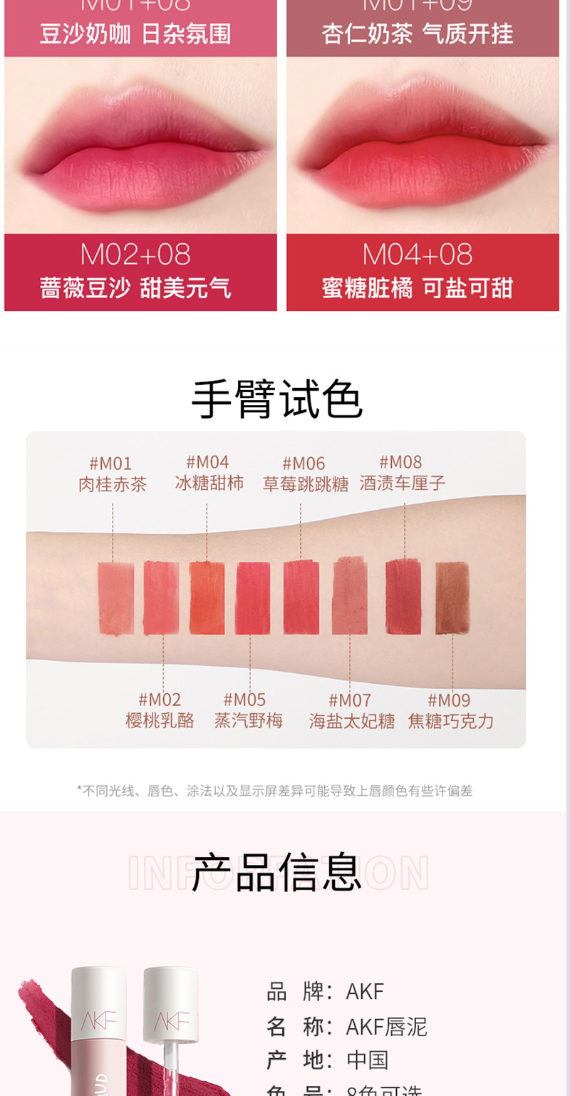 【多色号】AKF唇泥口红唇釉女小众品牌平价学生款雾面哑光色