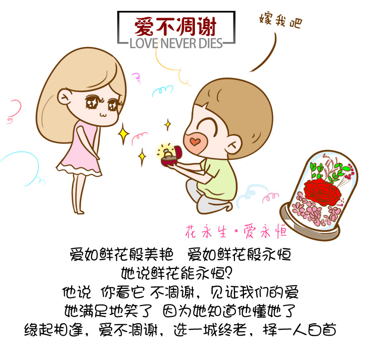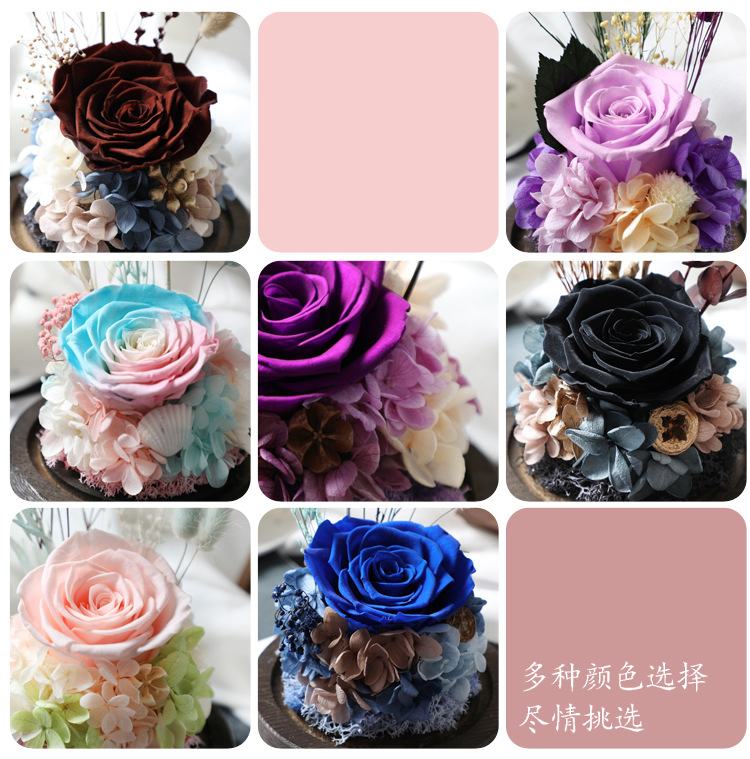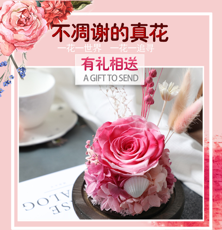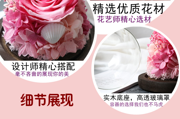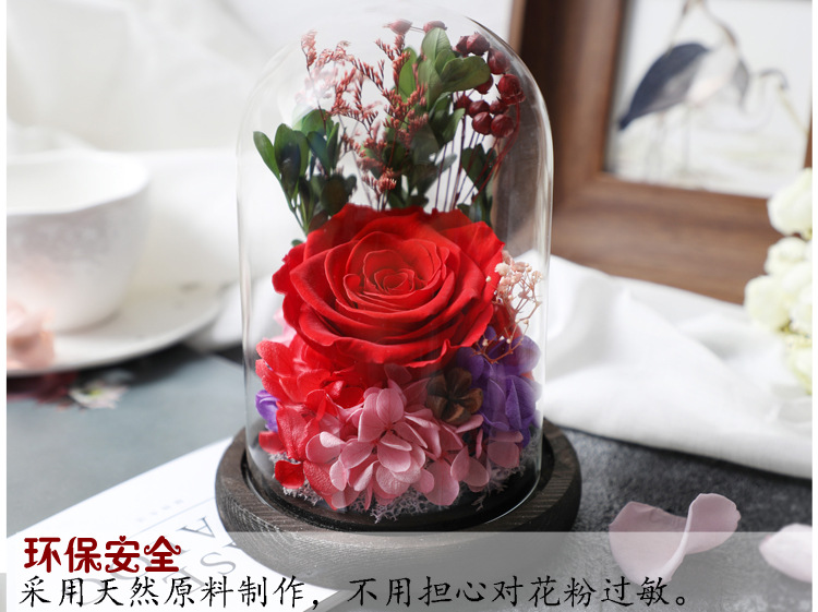 顺丰包邮 新款玫瑰永生花礼盒玻璃罩 七夕情人节礼物 生日礼物 送闺蜜女友 玫瑰花干花diy