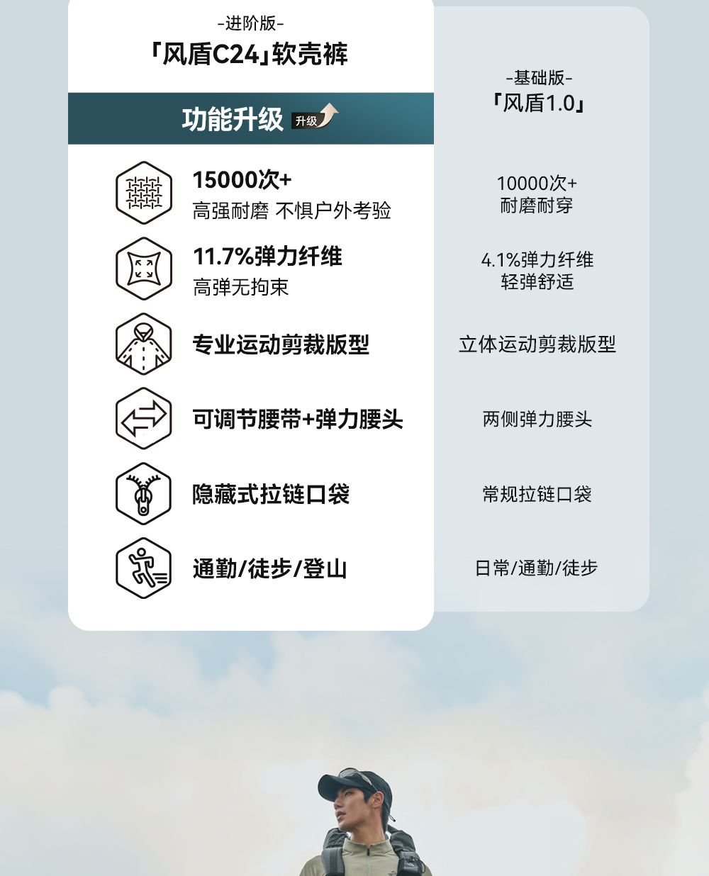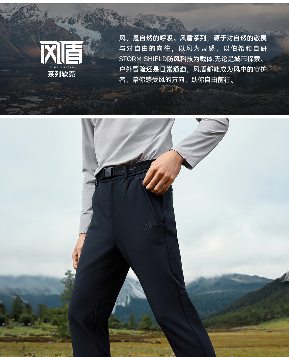 【风盾C24】伯希和户外软壳裤男冬季防风保暖徒步登山裤运动裤子