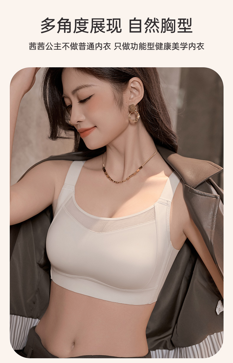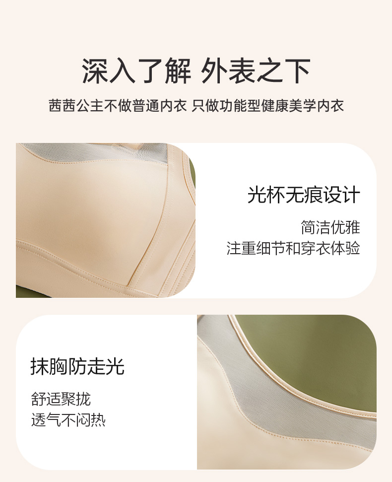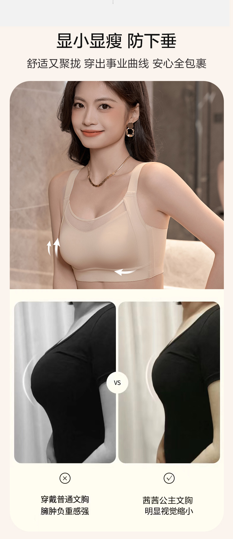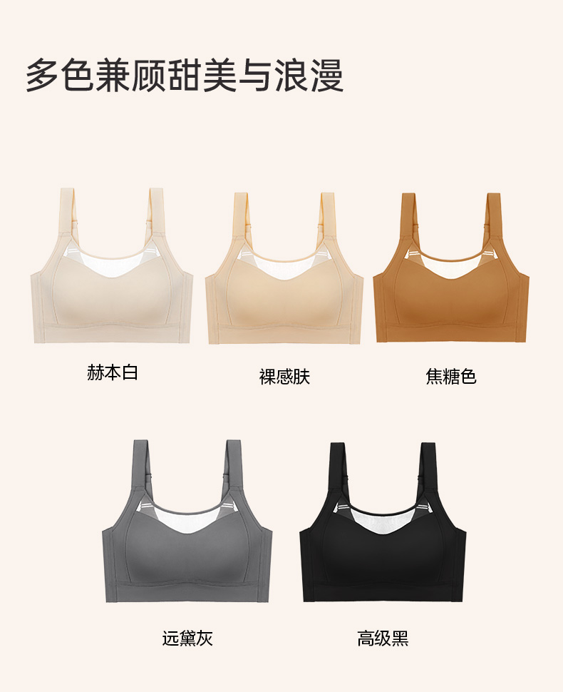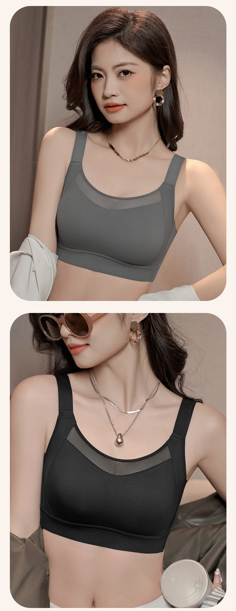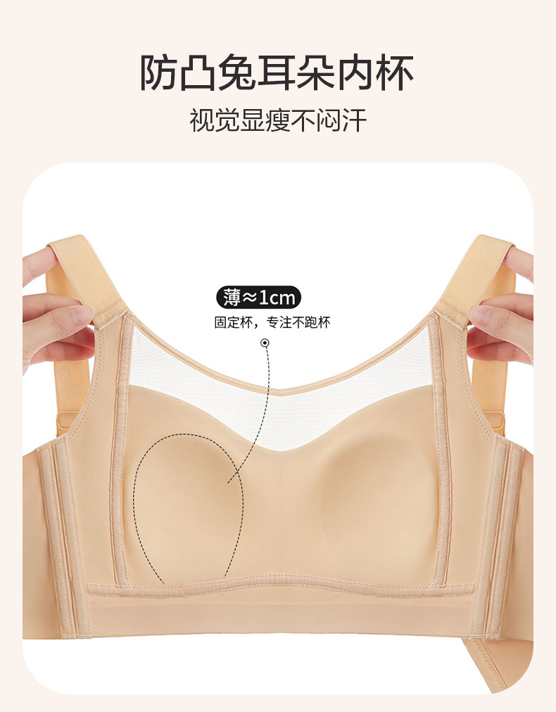 高弹无痕舒适文胸 超薄防凸兔耳婴儿棉内杯 大胸显小无钢圈 网纱抹胸防走光 无痕隐形 柔软舒适不勒身