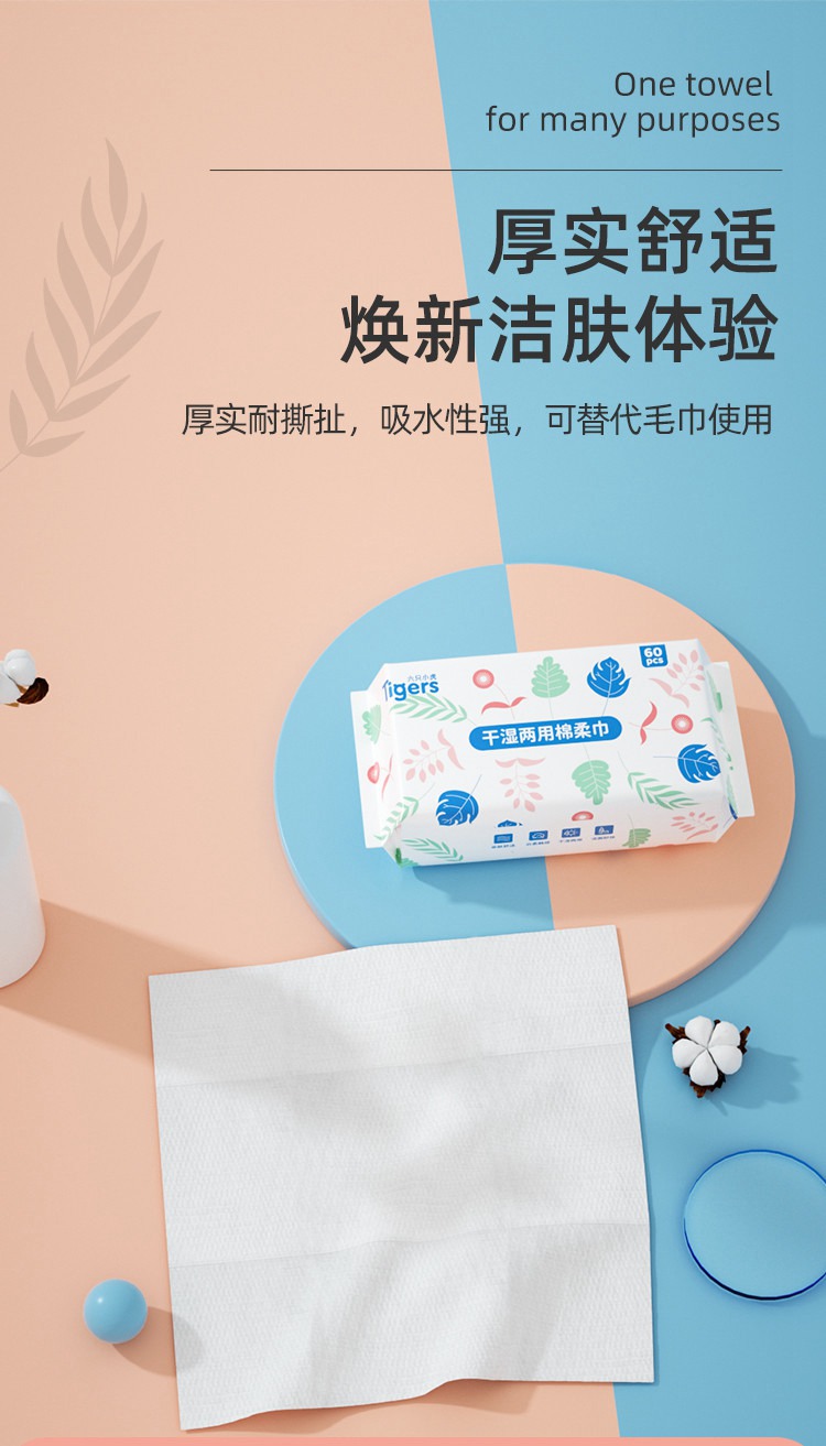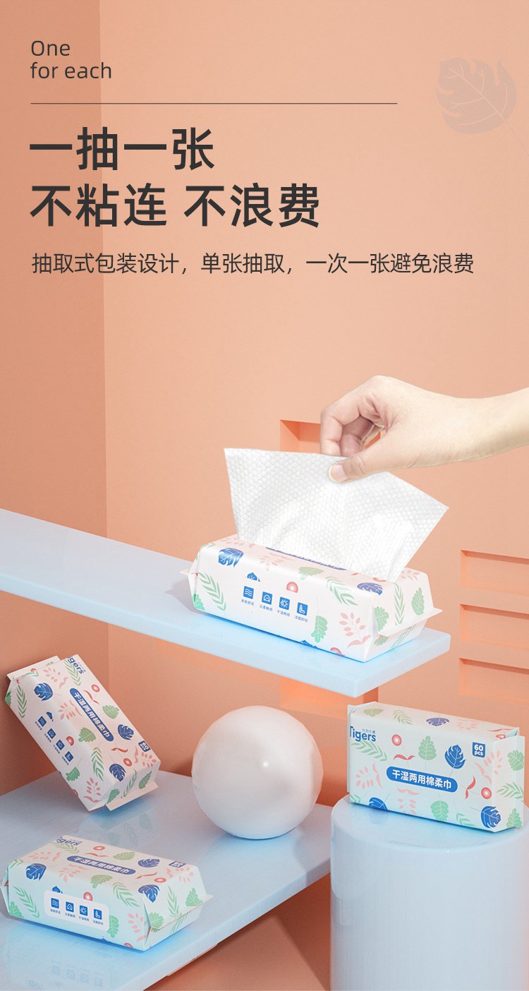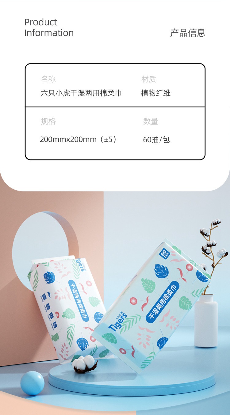 【Tigers六只小虎】全棉洗脸巾60抽*3包【包邮直发】