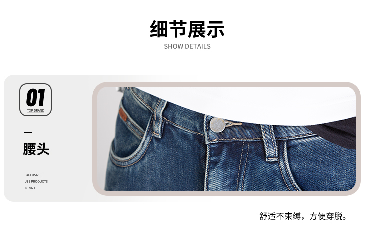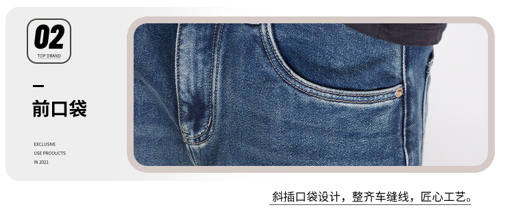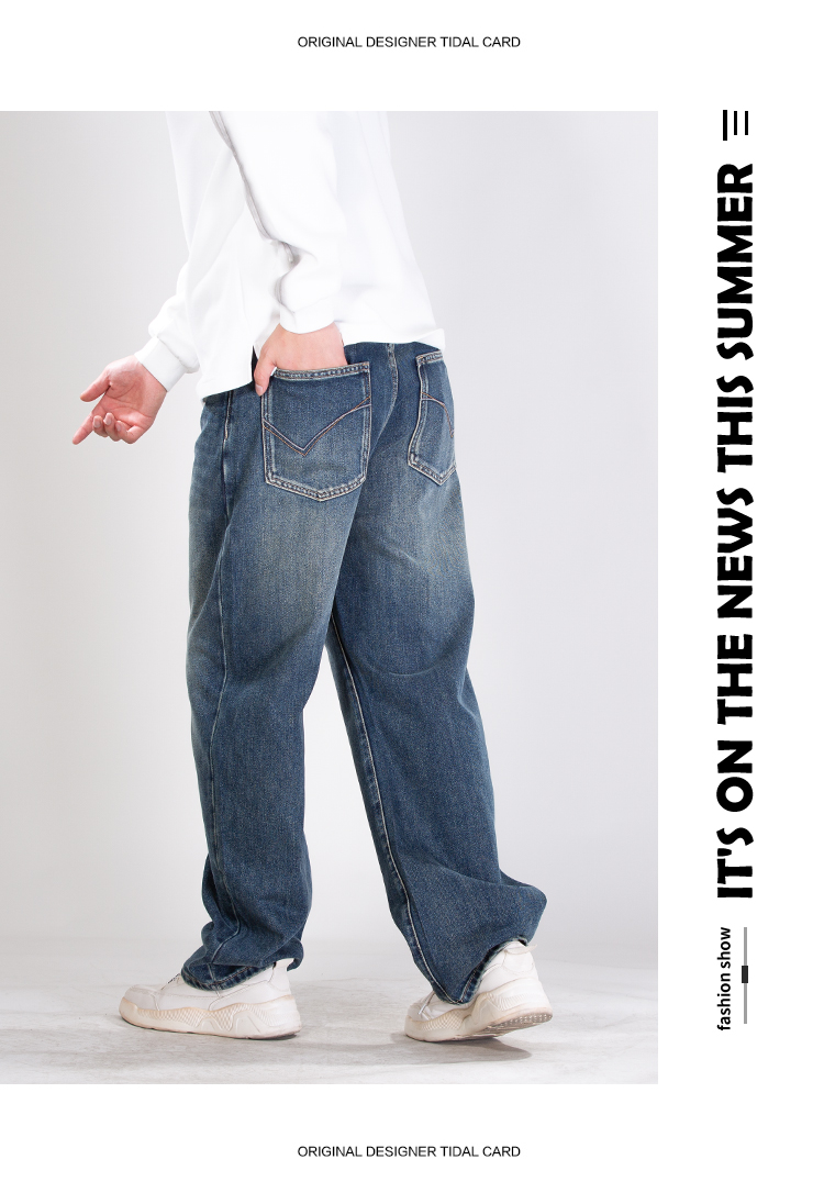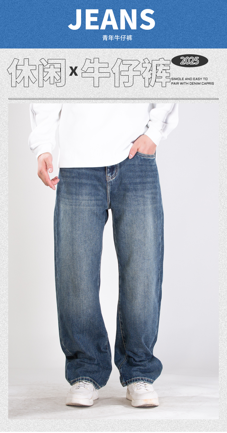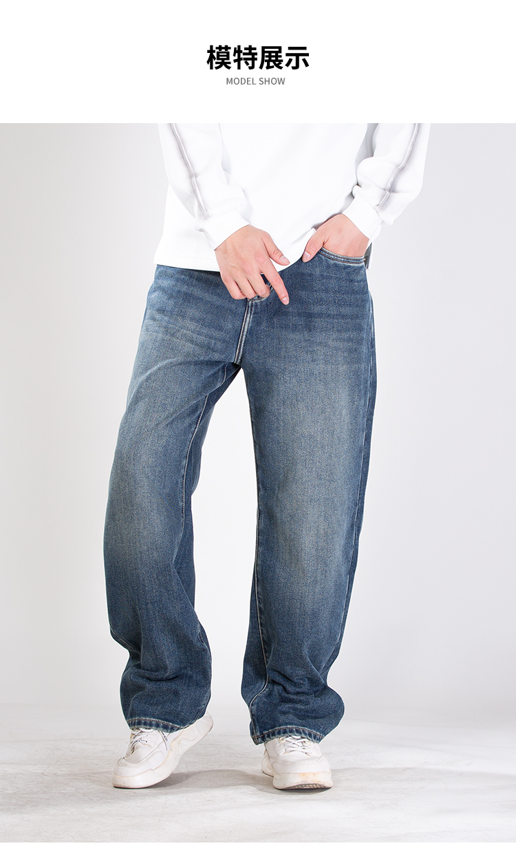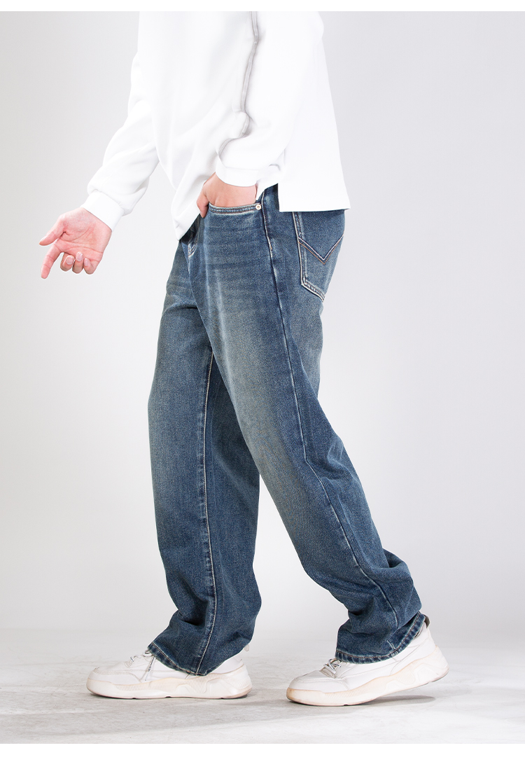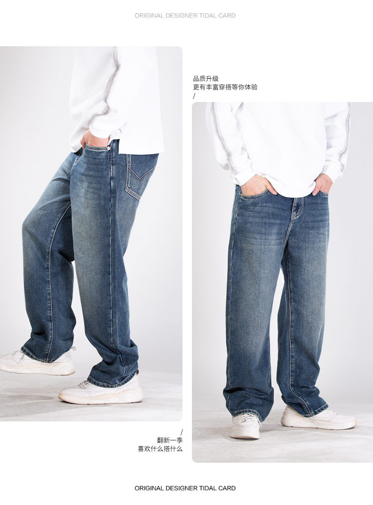DRONKOO 2025 半松紧腰表袋棕皮标底磨毛中厚牛仔长裤
