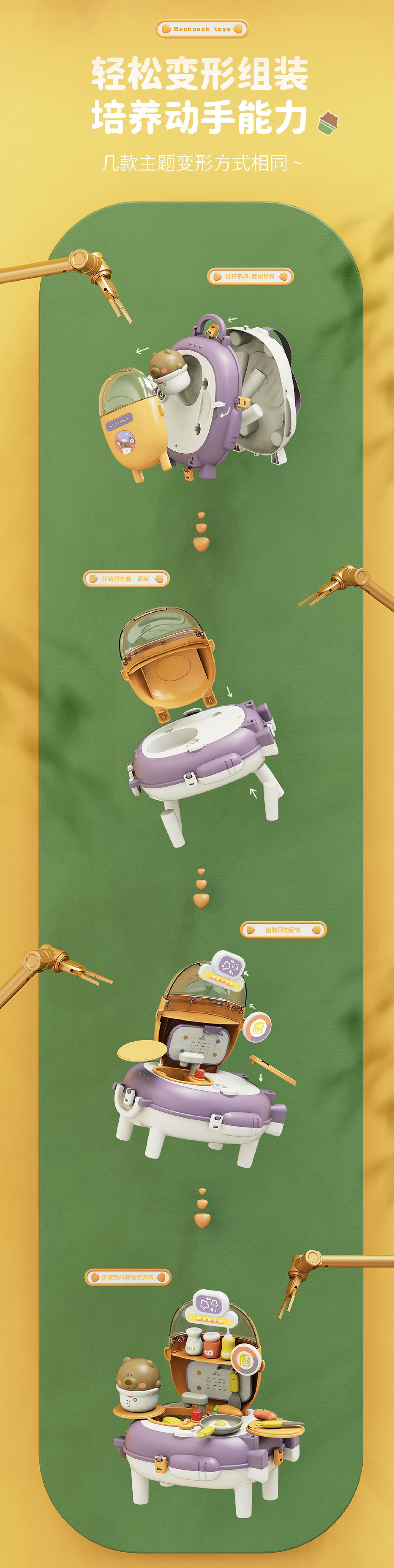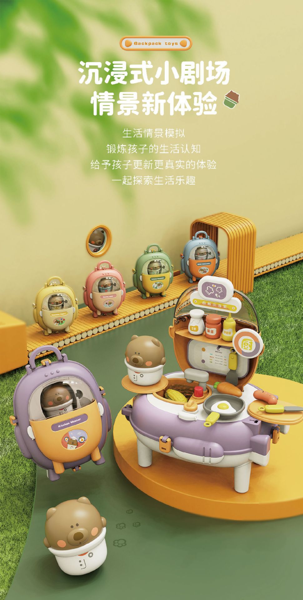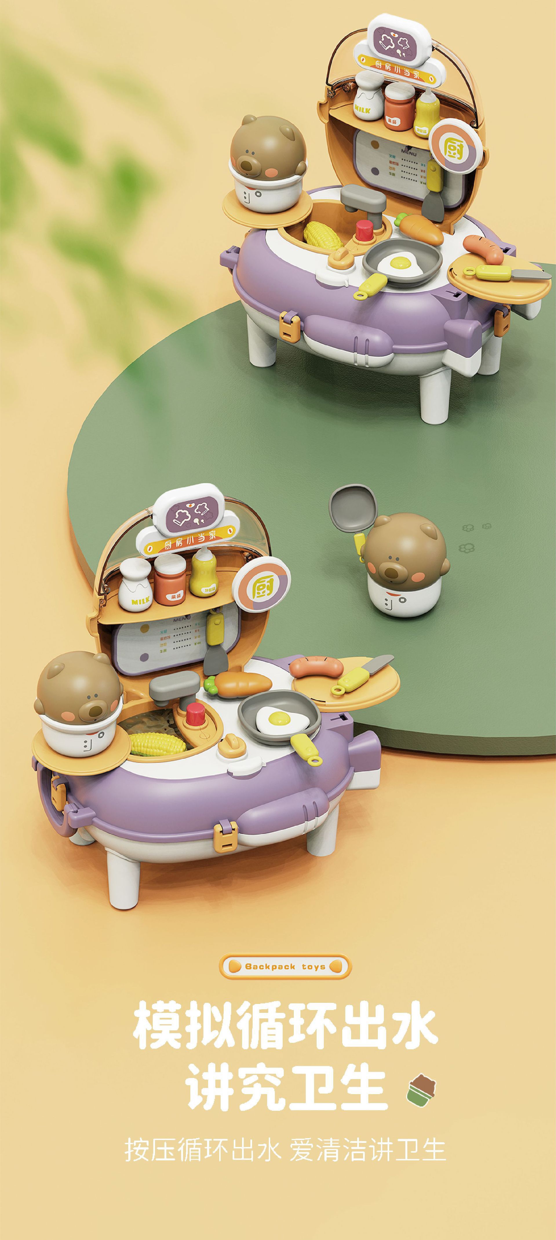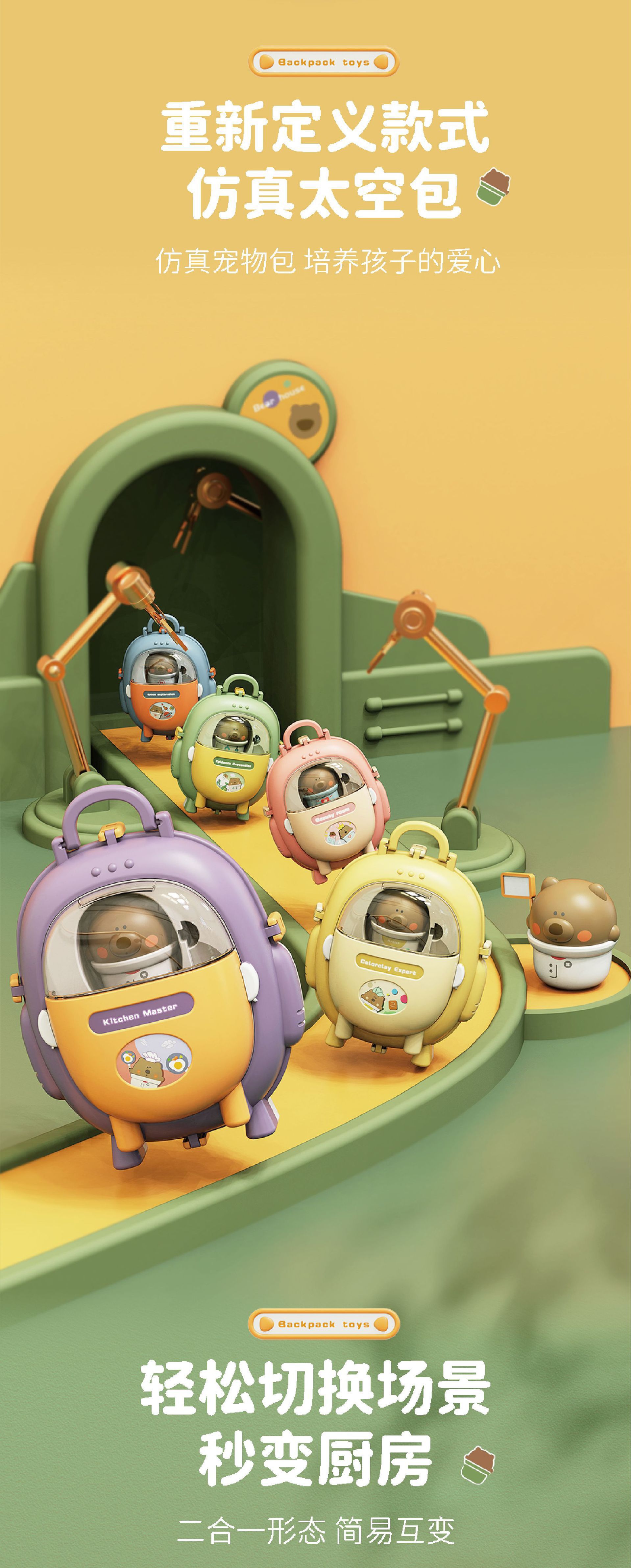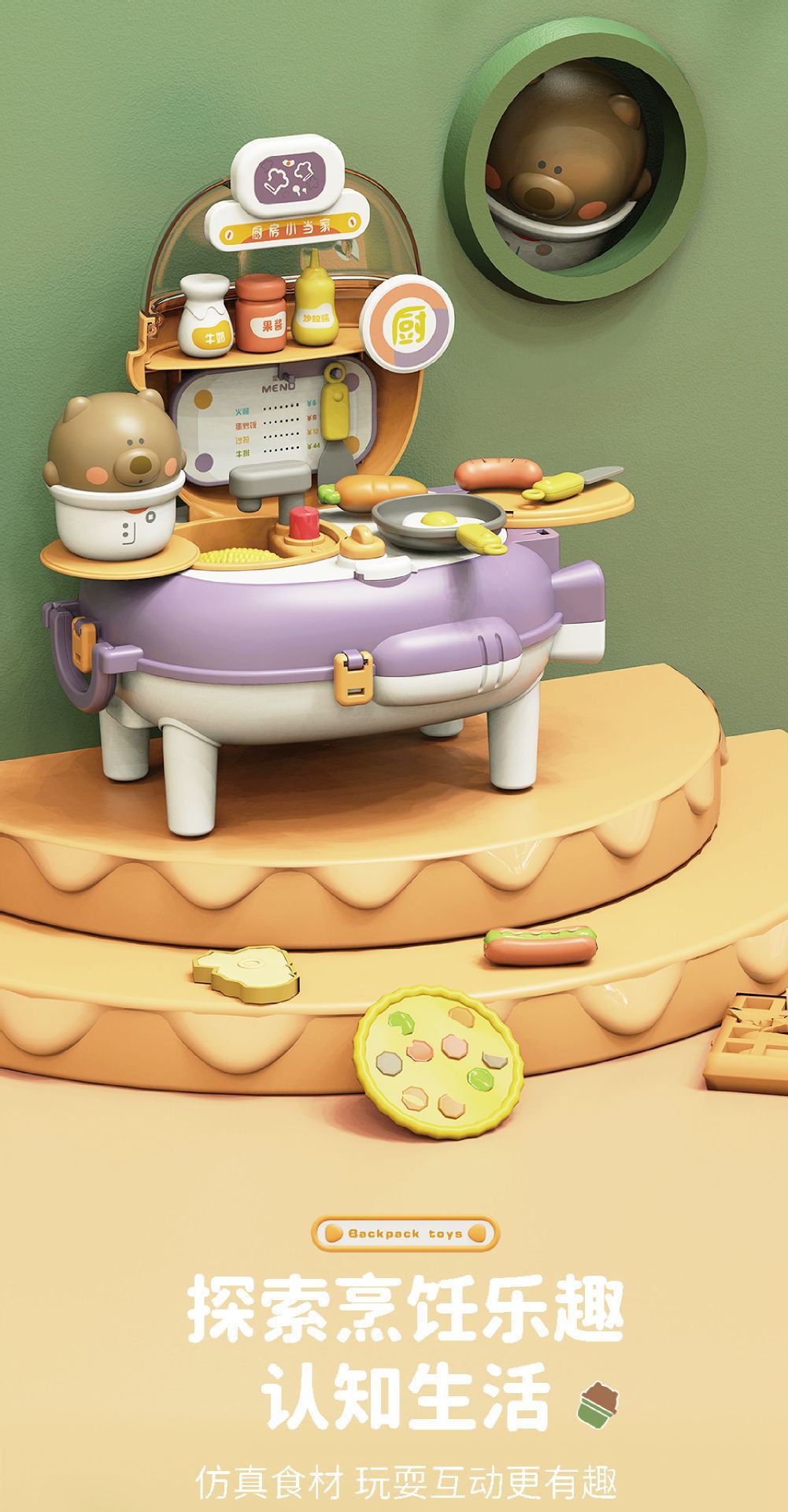 【趣味小熊背包】新款趣味 儿童过家家玩具 仿真太空包 可切换彩泥 厨房煮饭 小熊背包
