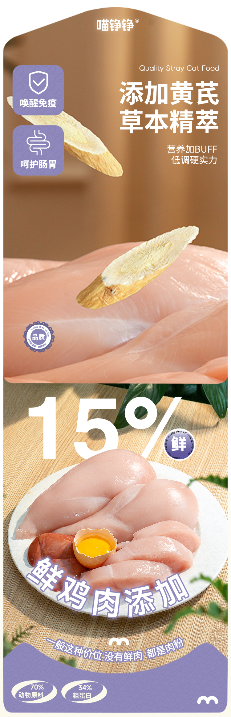 喵铮铮简爱流浪猫粮 流浪猫猫粮全价猫咪宠物幼猫主食营养肠胃主粮 34%蛋白复原肠胃添加黄芪鲜鸡肉【该商品不参与满赠】