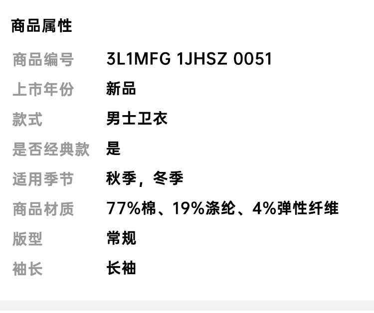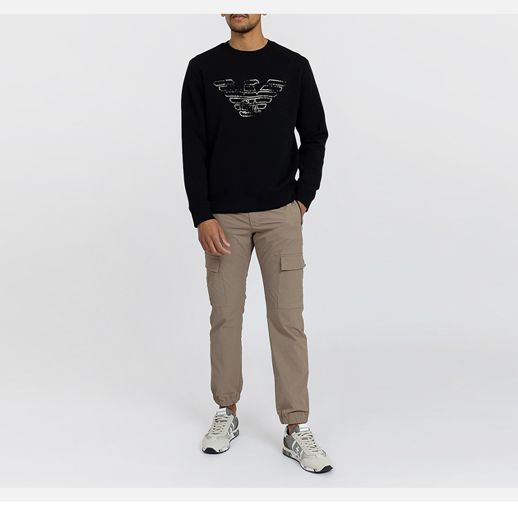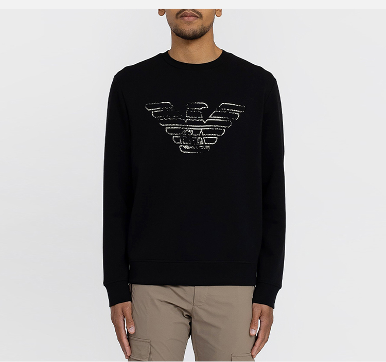 EMPORIO ARMANI 阿玛尼 男士棉质徽标印花长袖卫衣 黑色 3L1MFG 1JHSZ 0051