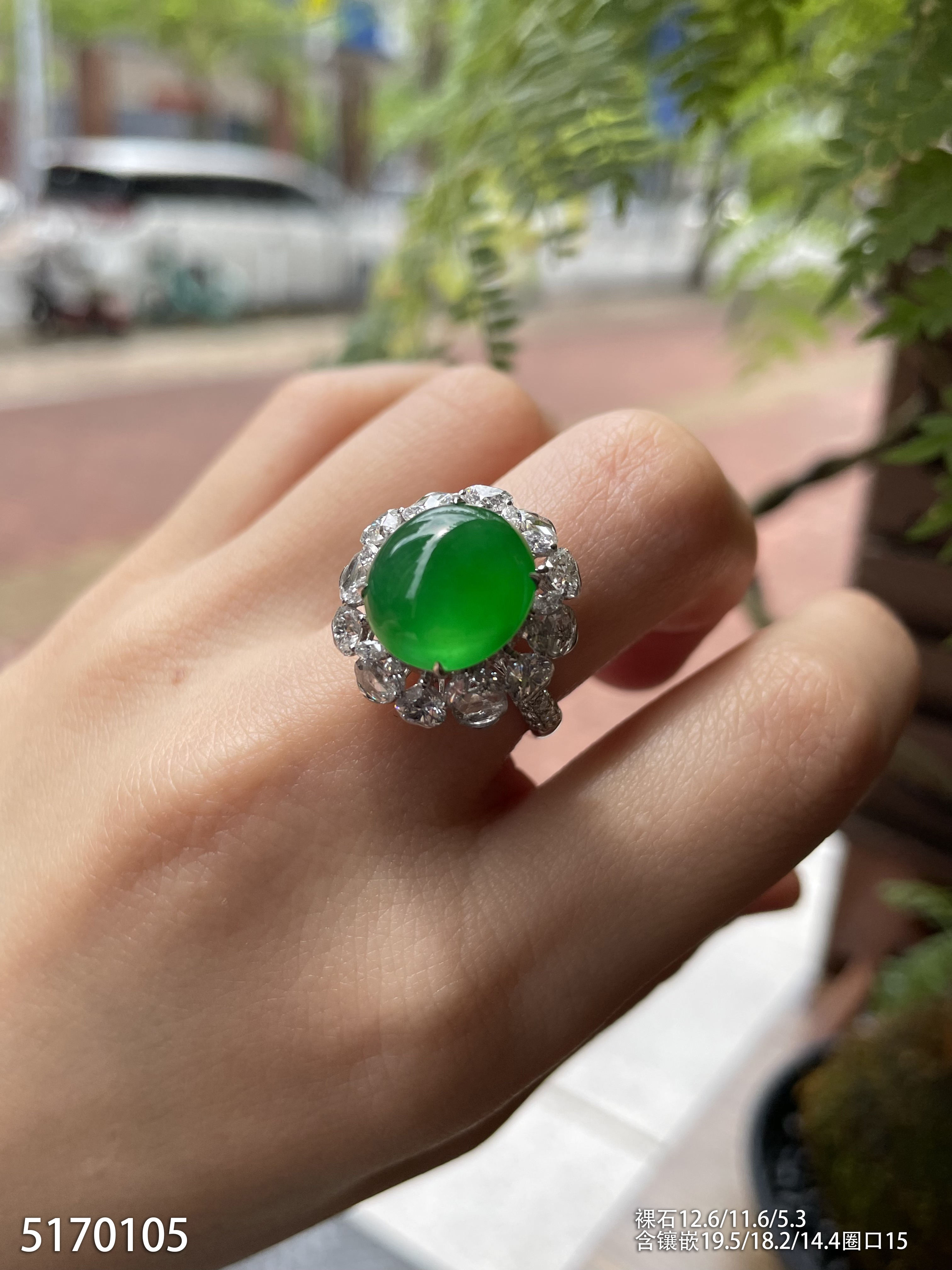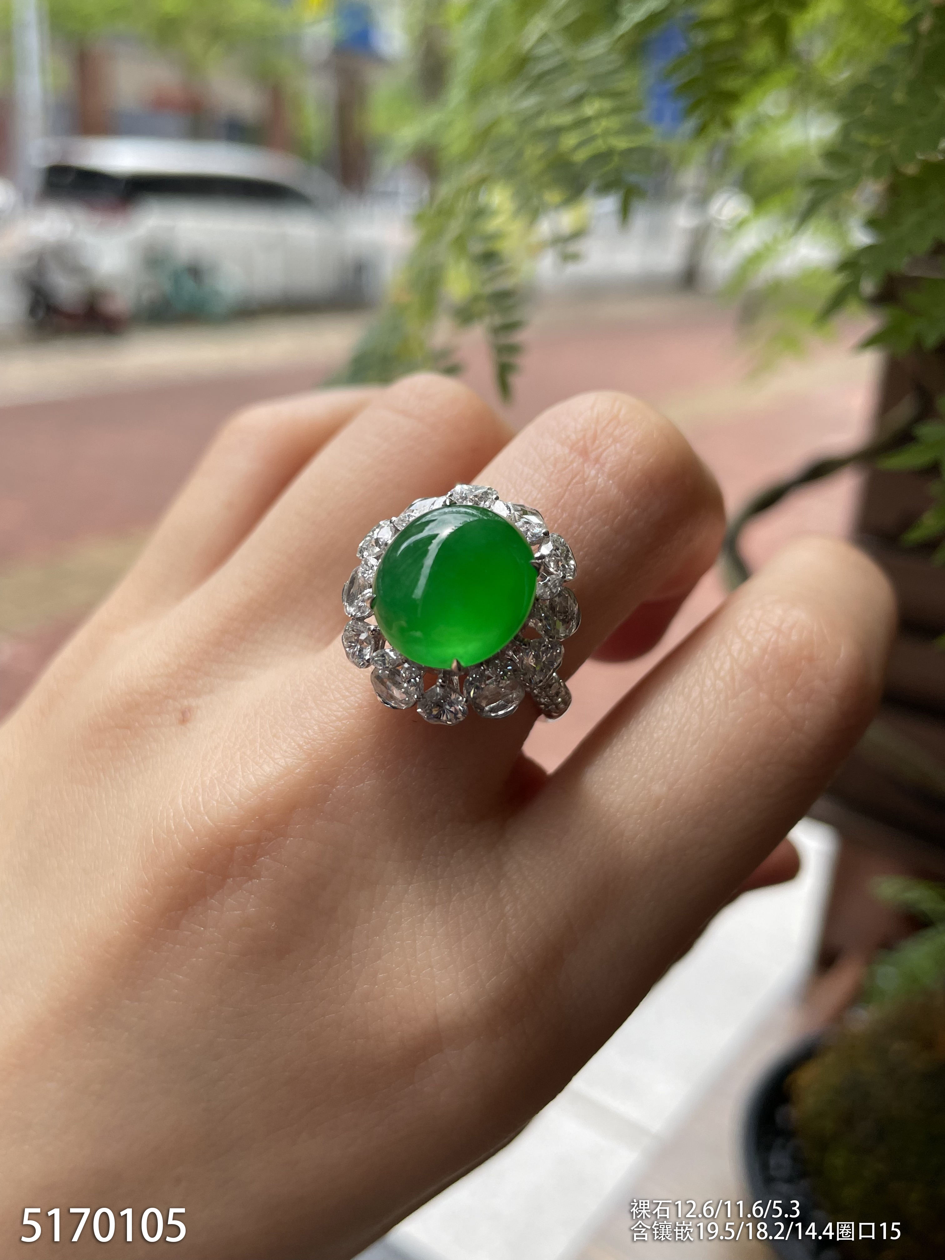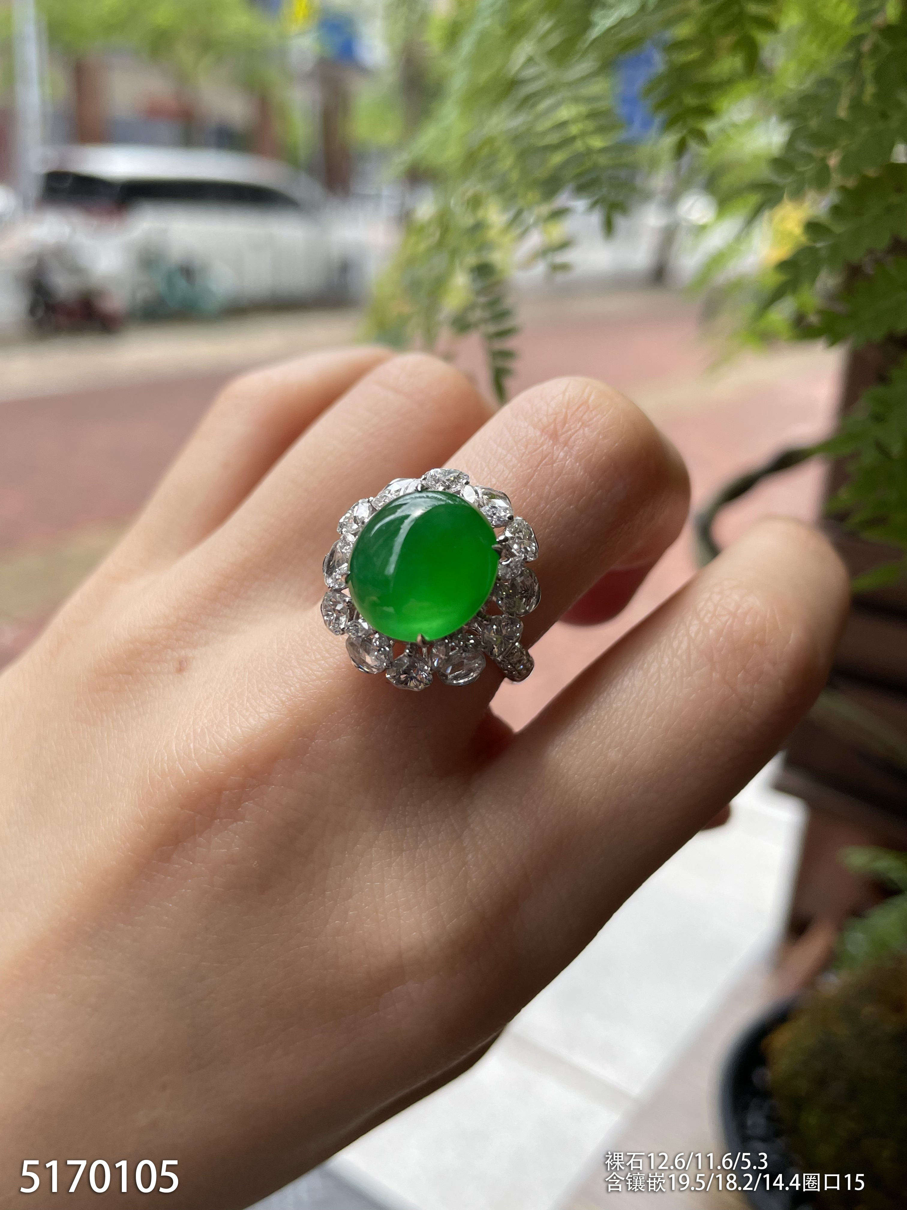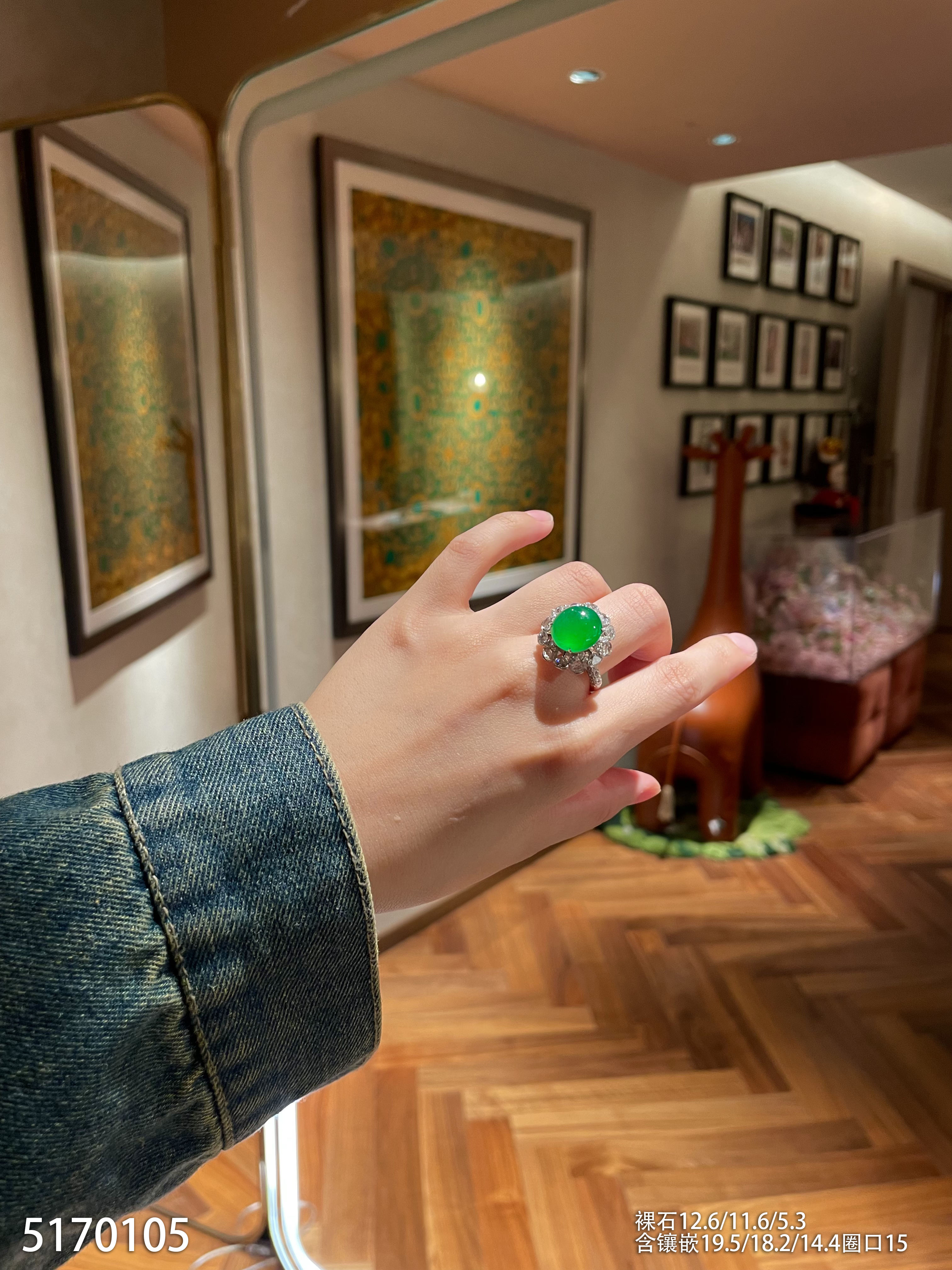 老坑艳绿蛋面戒指【5170105】具体价格微信咨询