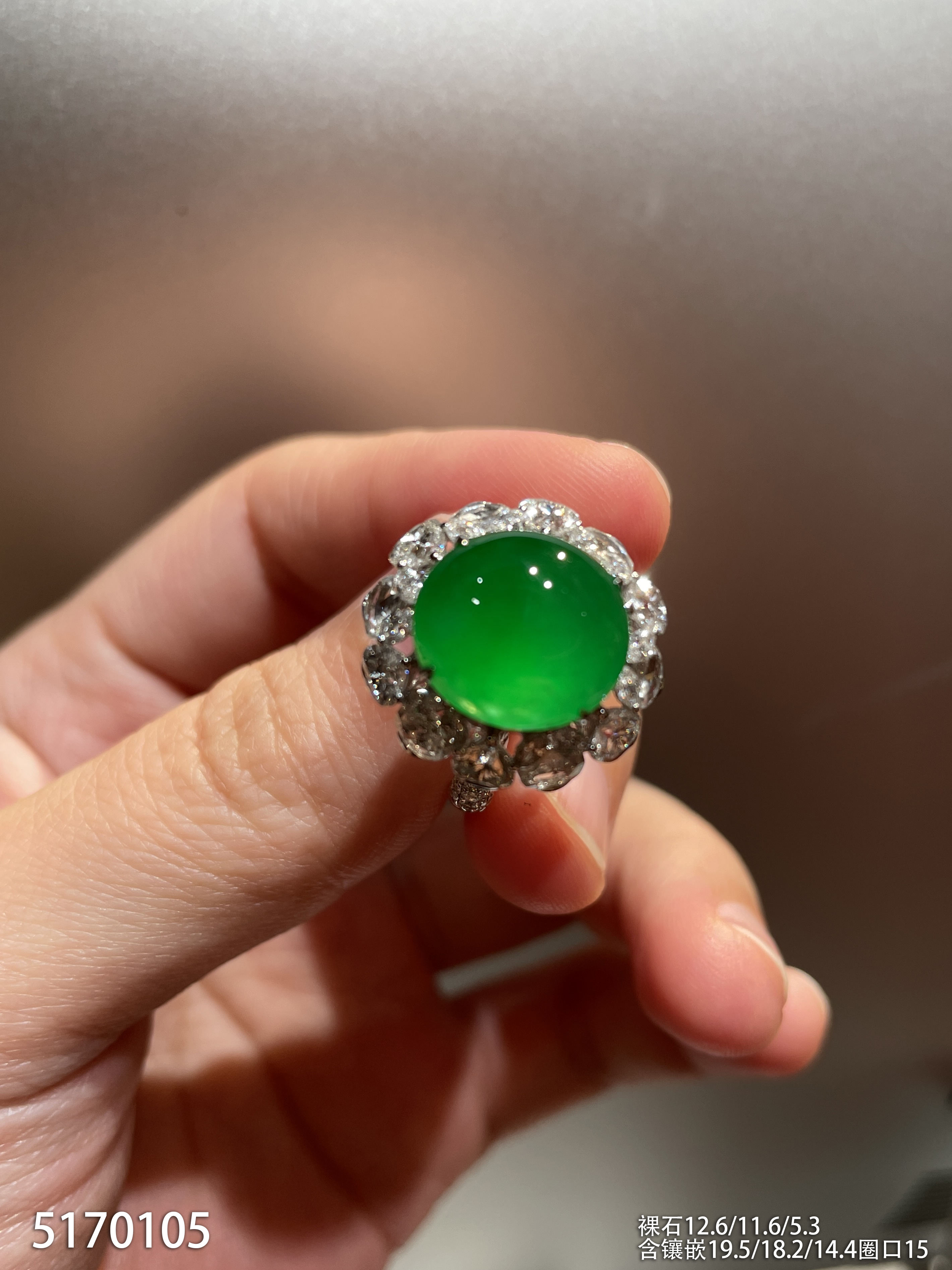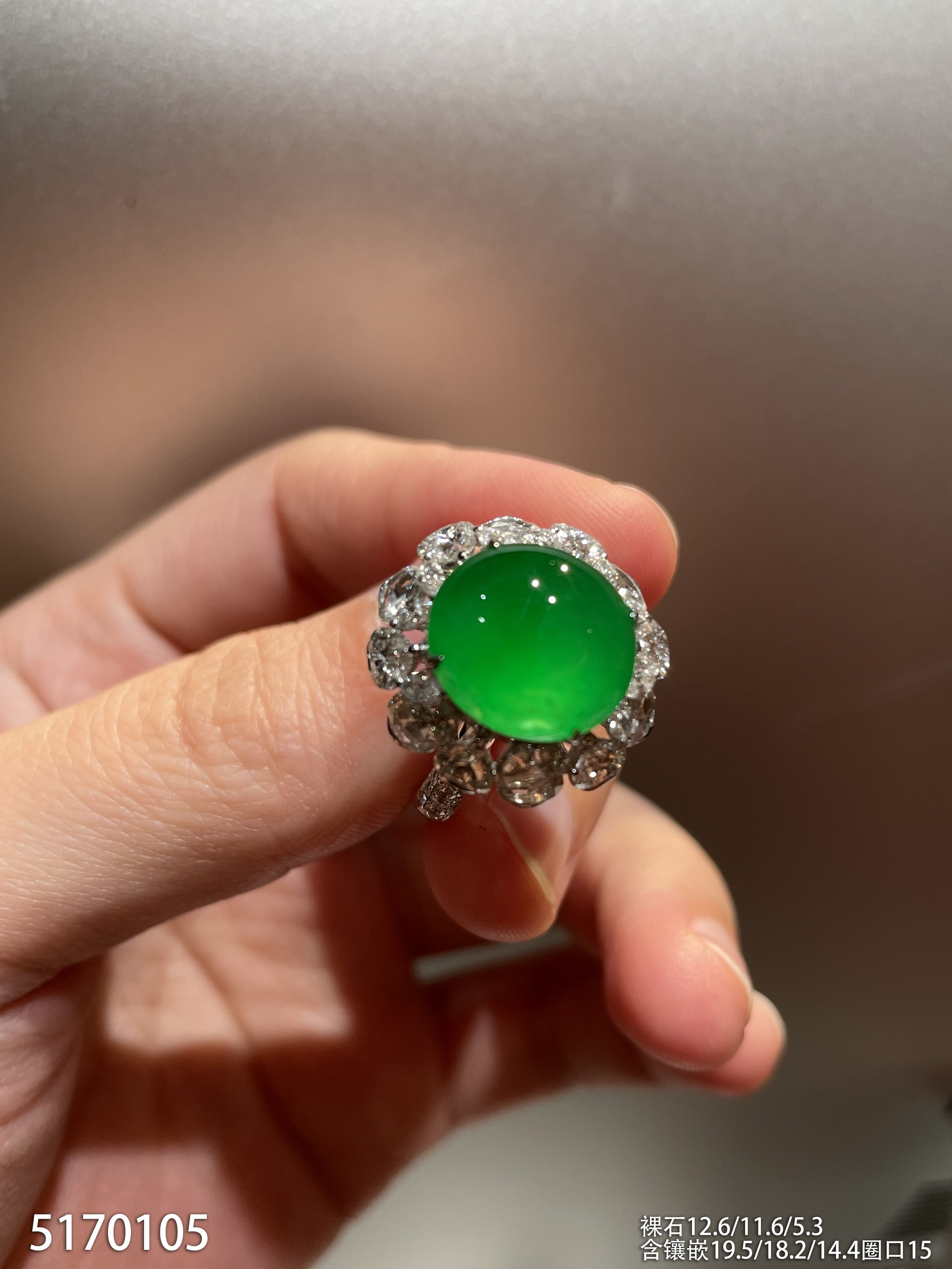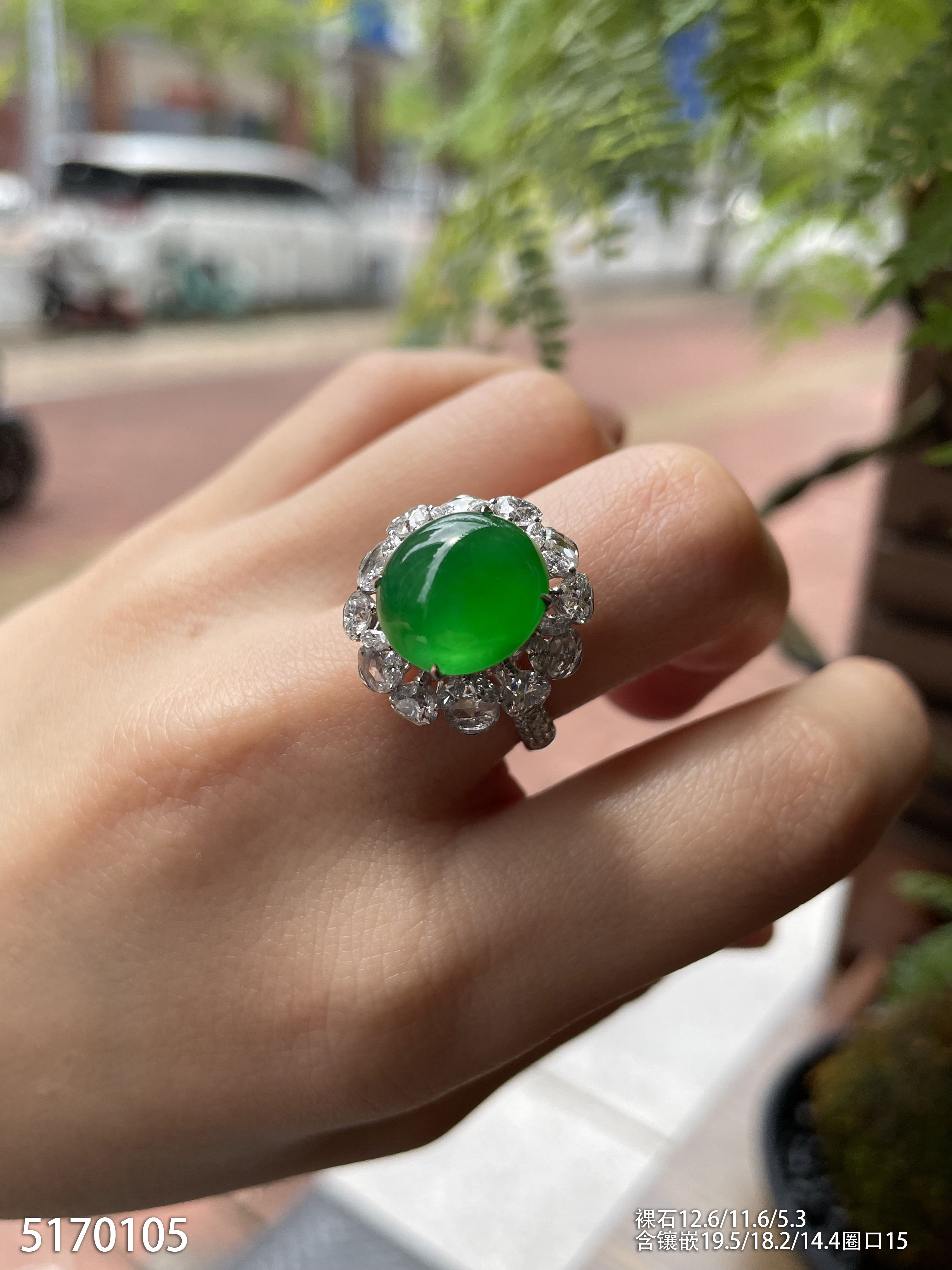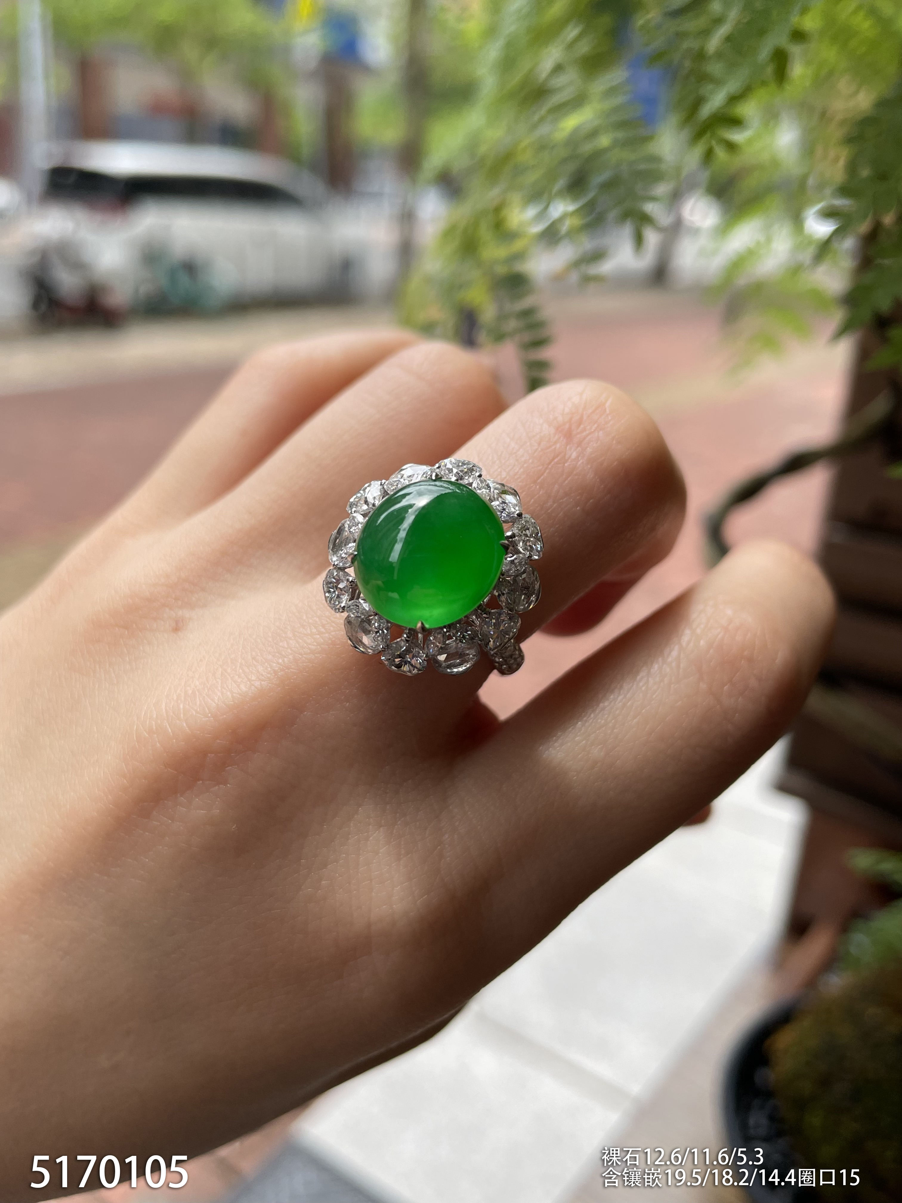 老坑艳绿蛋面戒指【5170105】具体价格微信咨询