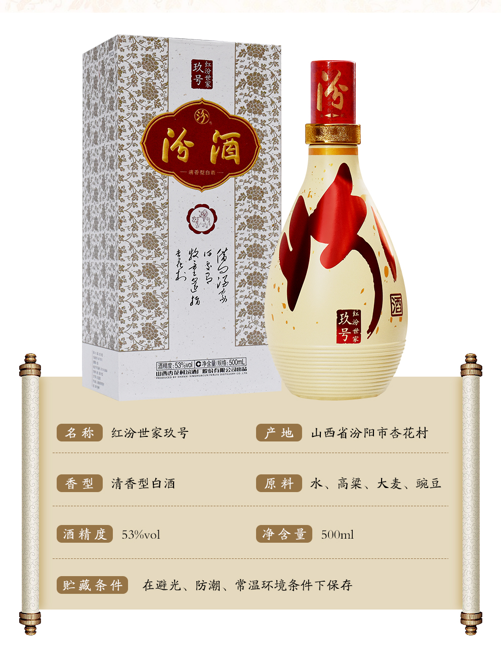汾酒 红汾世家玖号 清香型白酒 53度 500ml