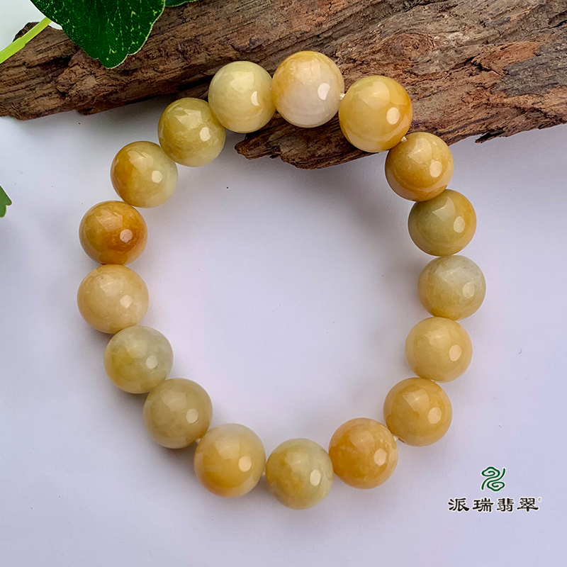 派瑞翡翠 翡翠手链 糯种 黄色