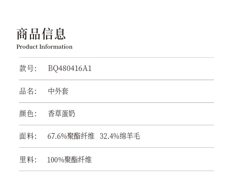 oldcolour欧珂冬季高级感时尚气质优雅纯色中外套女BQ480416A1