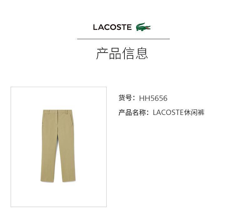 【海南专供价】Lacoste法国鳄鱼男装新款时尚商务通勤直筒裤长裤HH5656-10