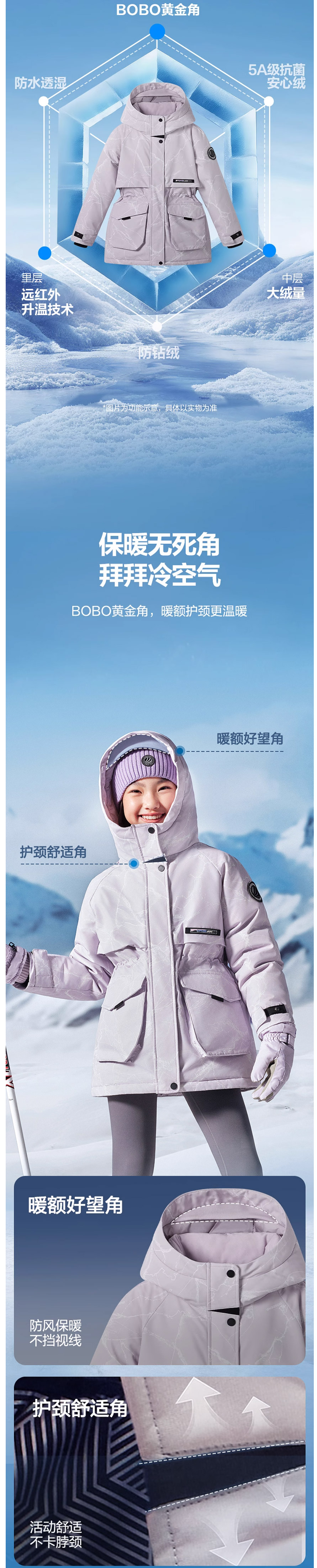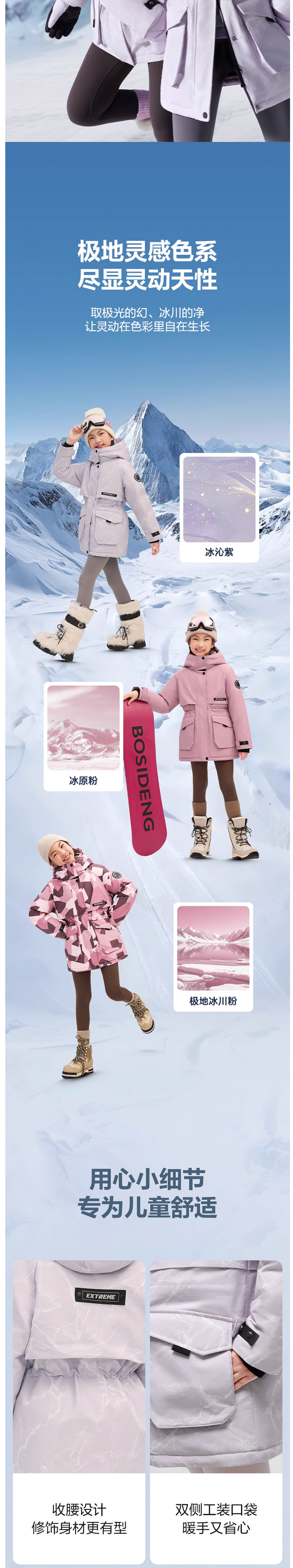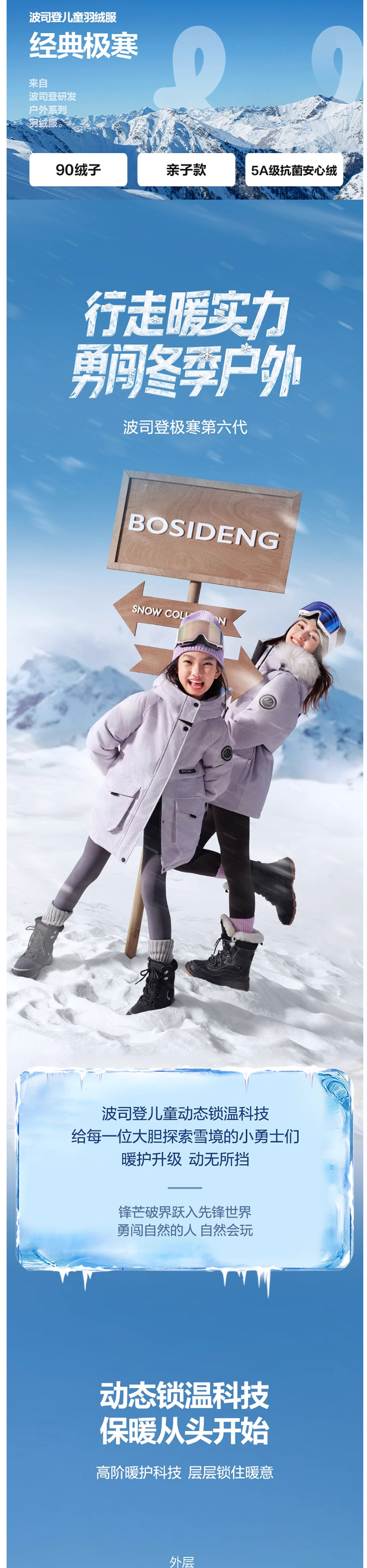 波司登冬季极寒系列儿童羽绒服男女童长款收腰蓄热加厚亲子款T250242312Q