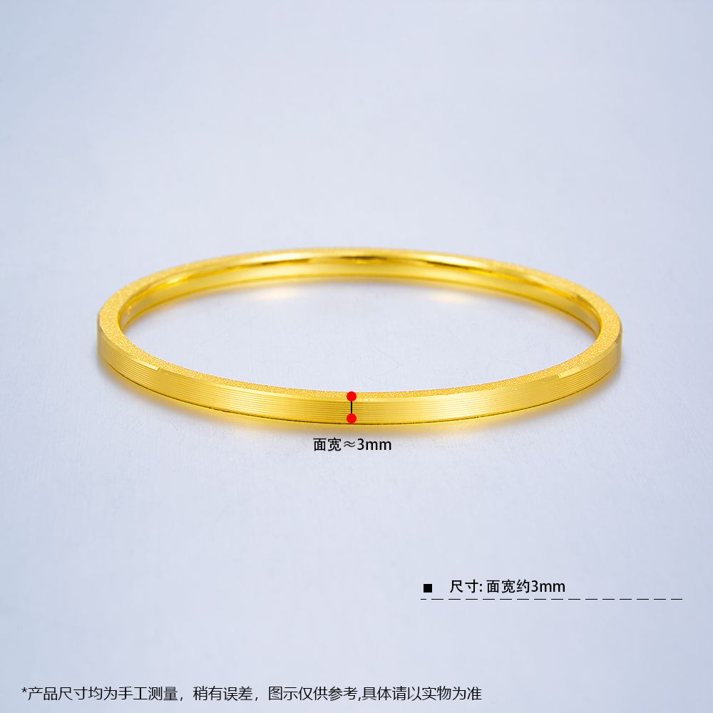 【限时克减150元】足金999.9 黄金实心(面宽约2.8-3.2mm)拉丝喷砂四方简约固口手镯(SZ00308)预售产品下单后不退款不退货不换货不补差价)