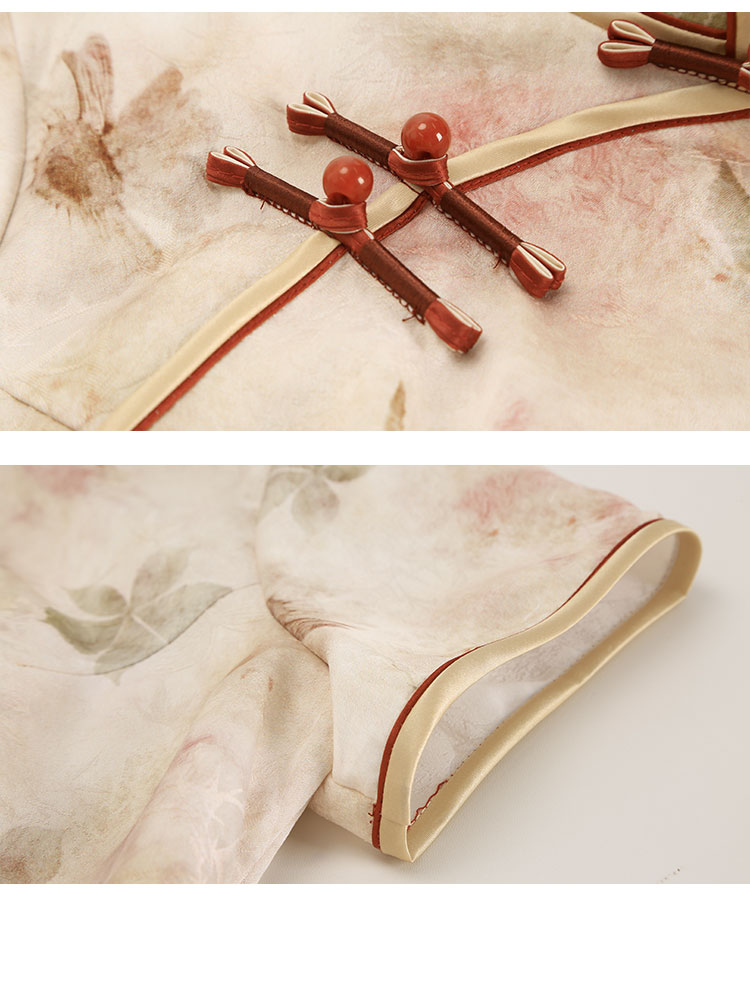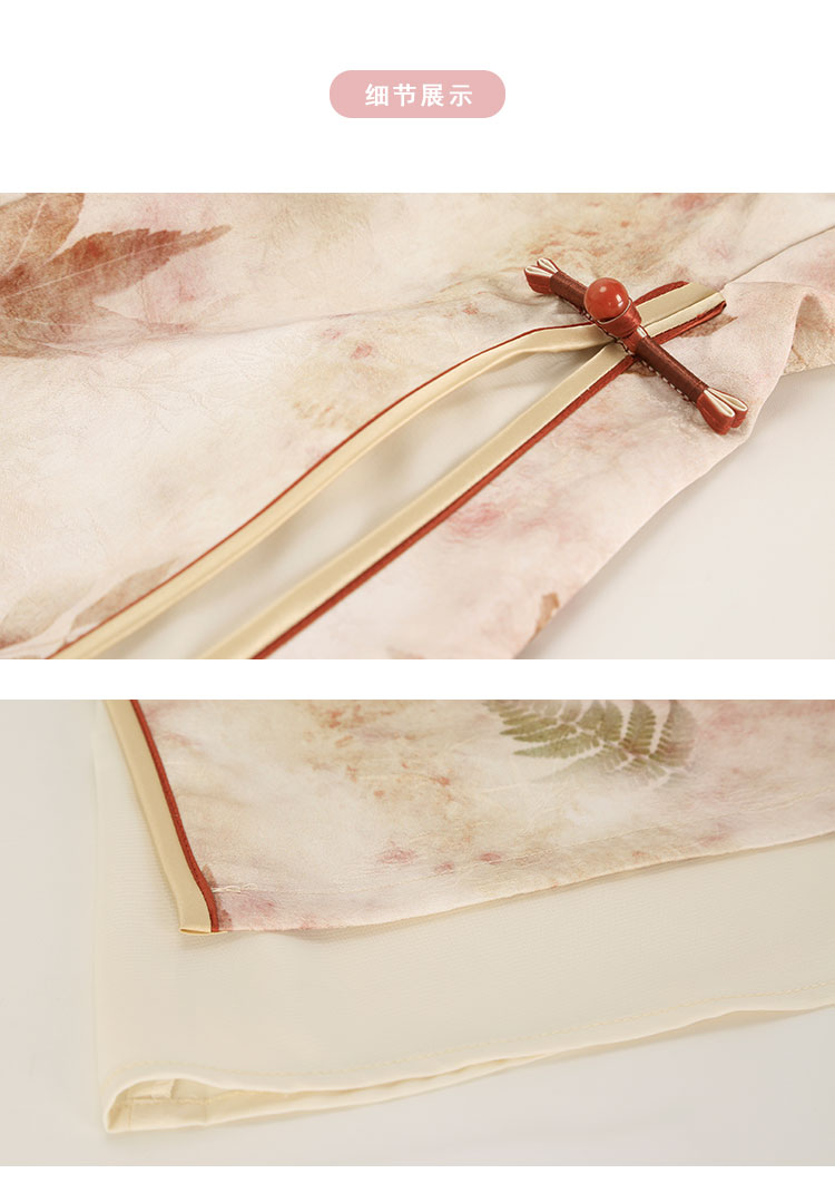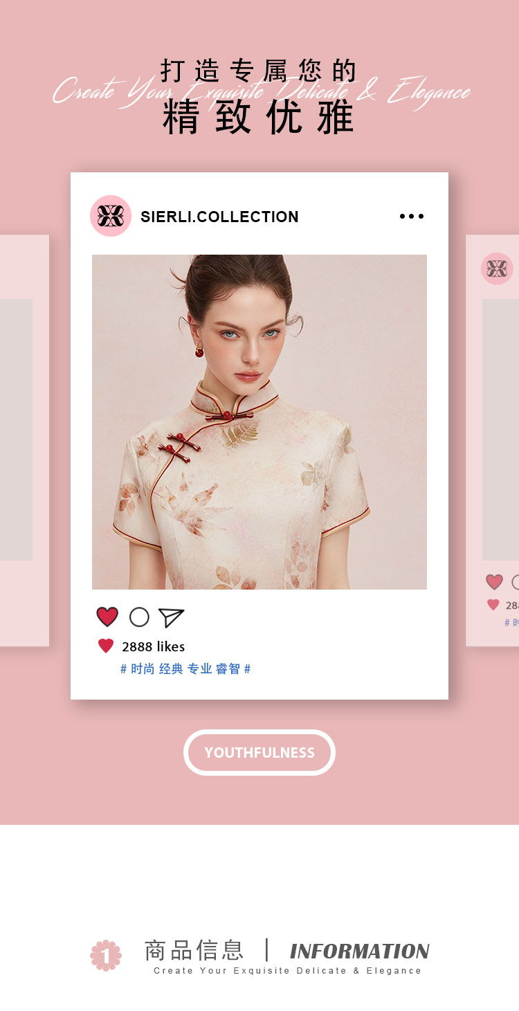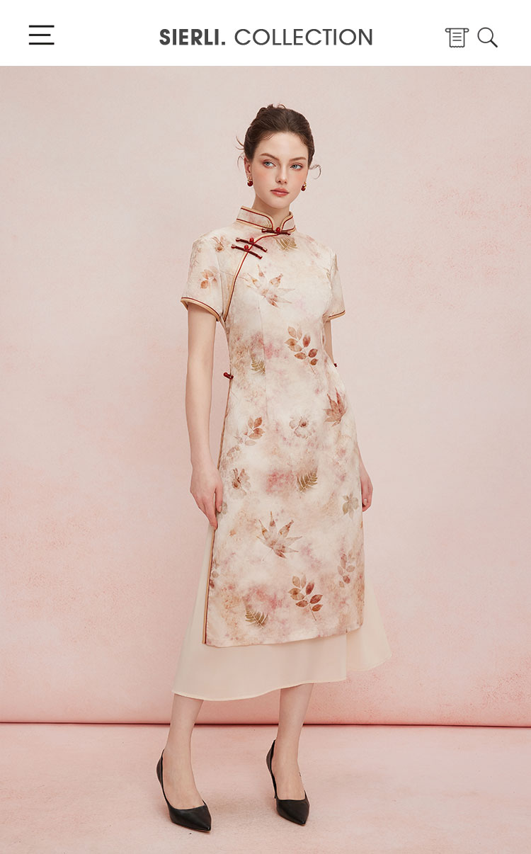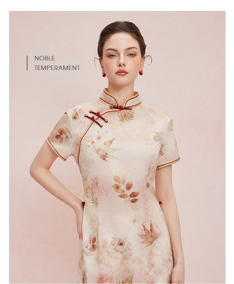 QF822斯尔丽25新款改良式旗袍提花加印花下摆插片A型显瘦浪漫连衣裙
