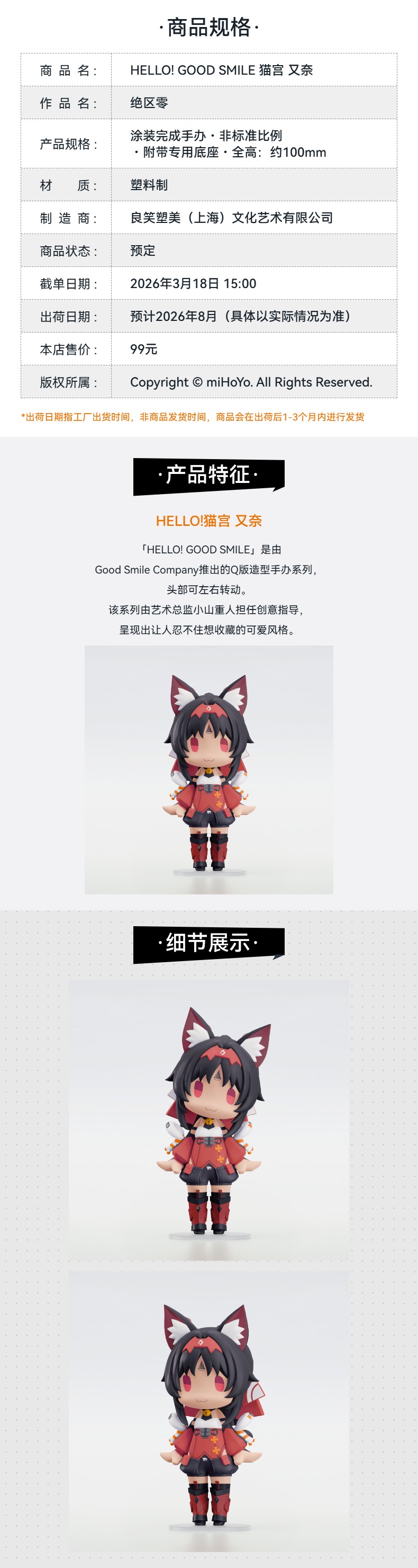 【GSC预售定金】HELLO! GOOD SMILE 猫宫 又奈 绝区零