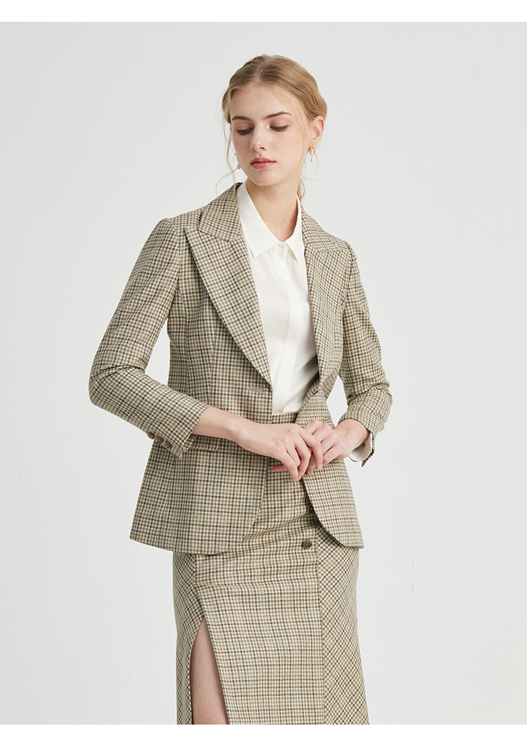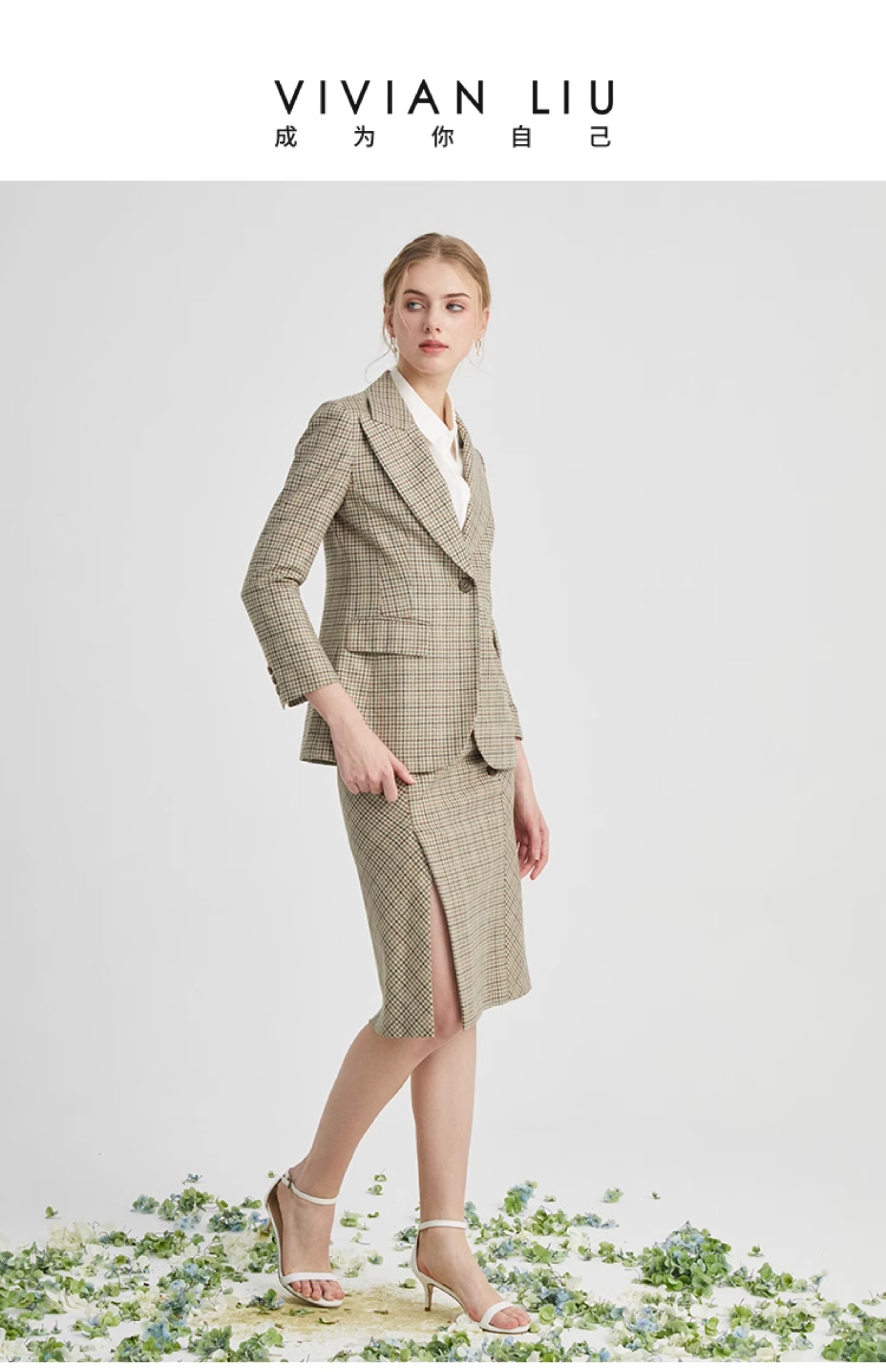 VIVIAN LIU TZ2413105梅春女装新款翻领一粒扣收腰西装