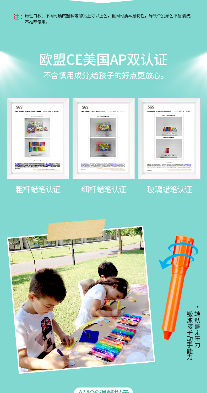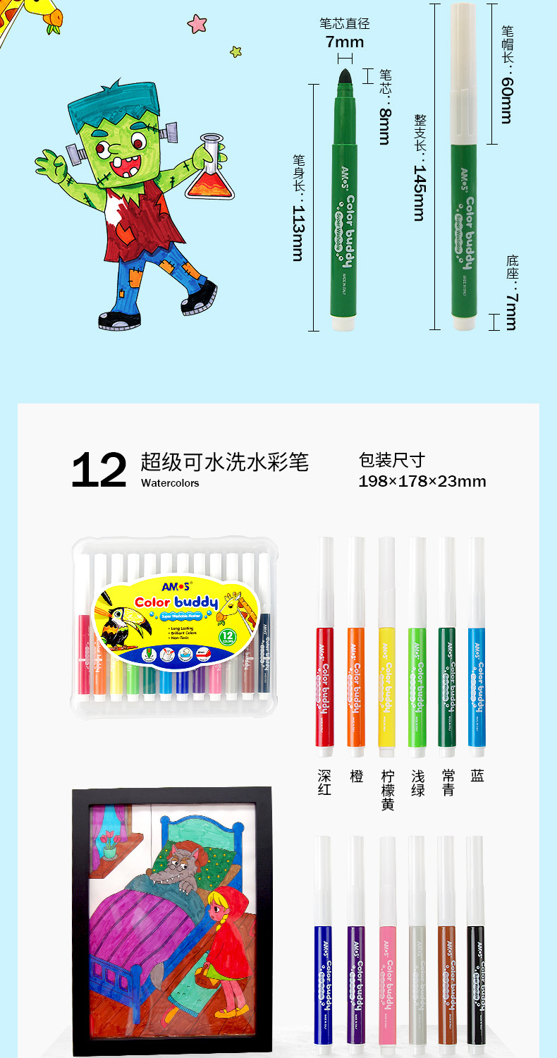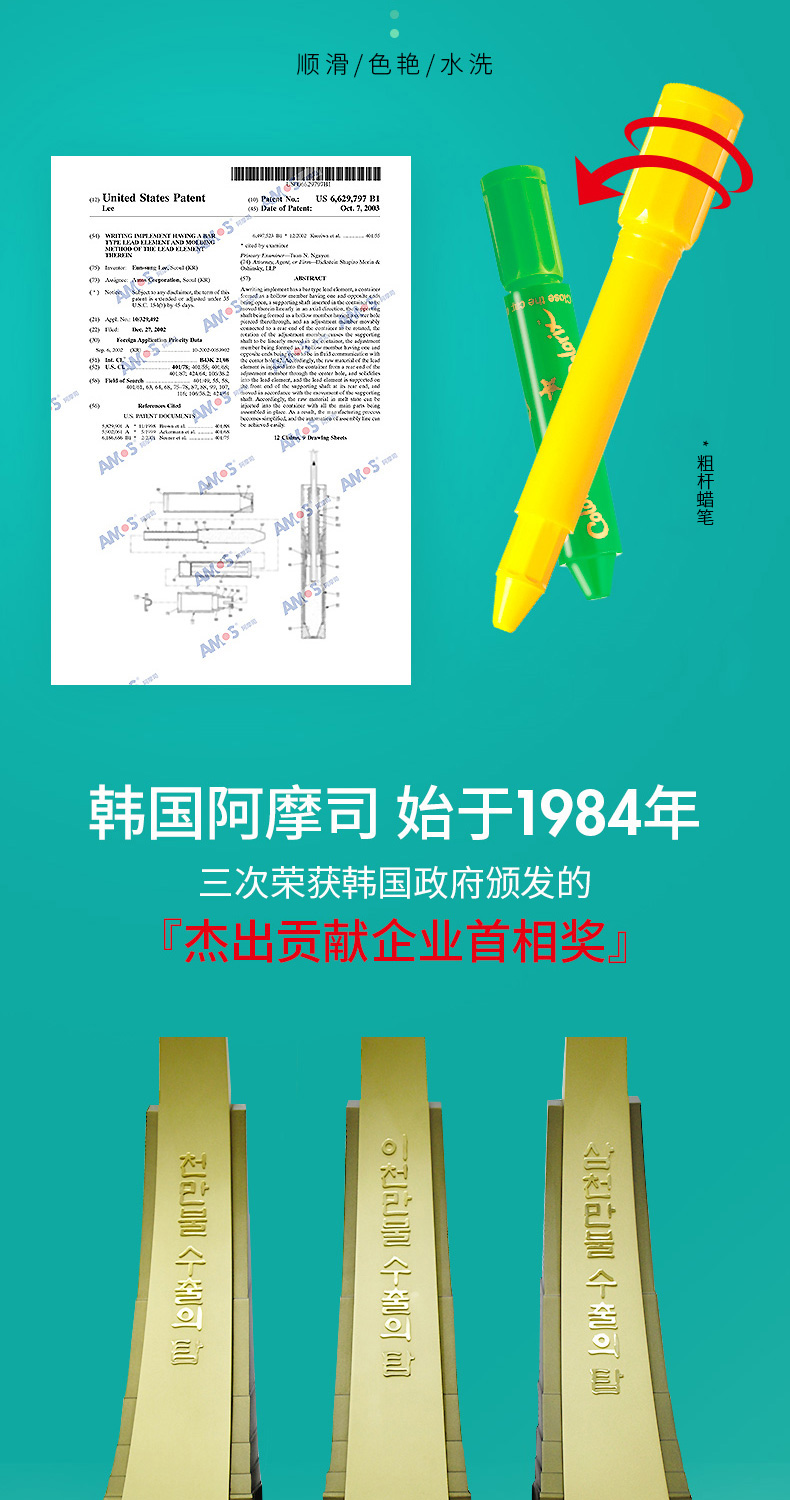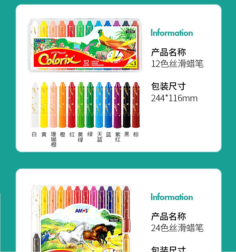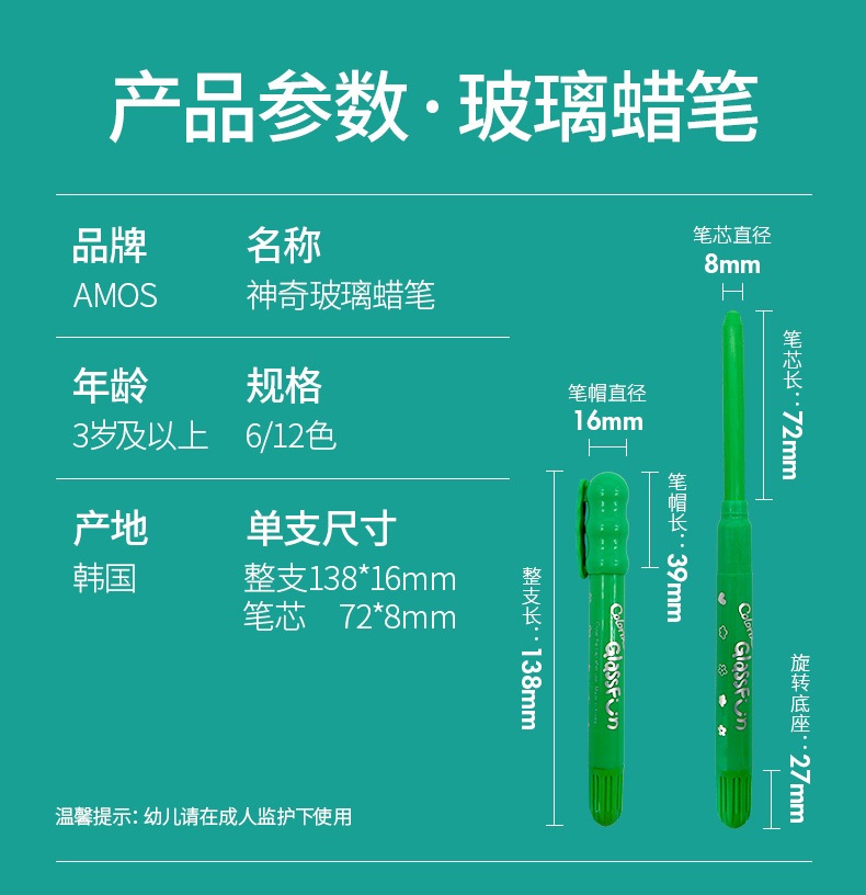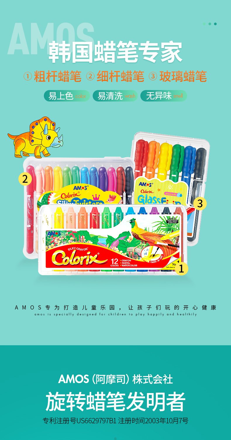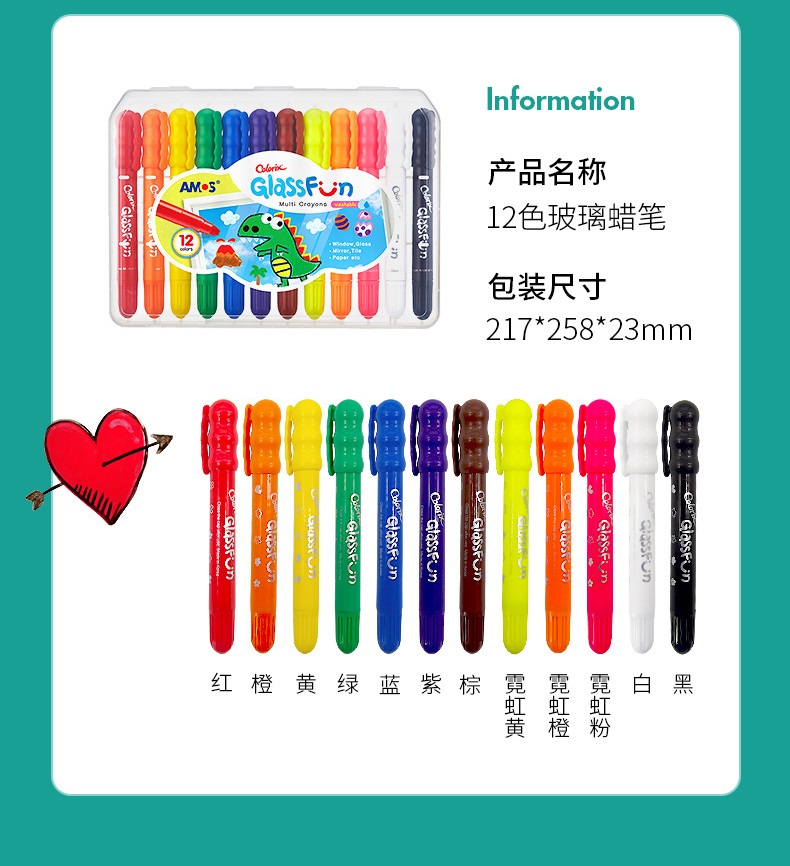 AMOS 玻璃瓷砖蜡笔 可水洗 12色 塑料收纳盒