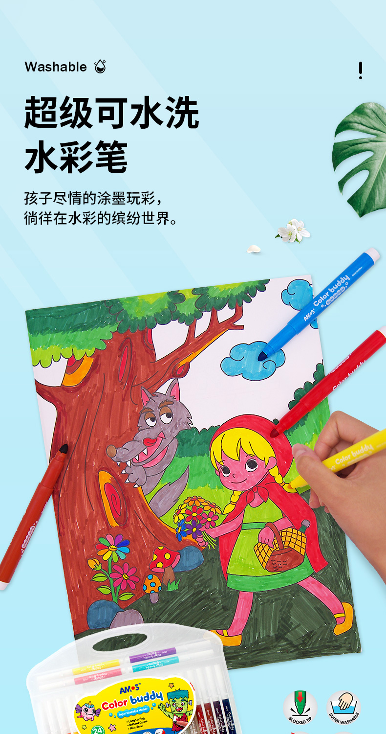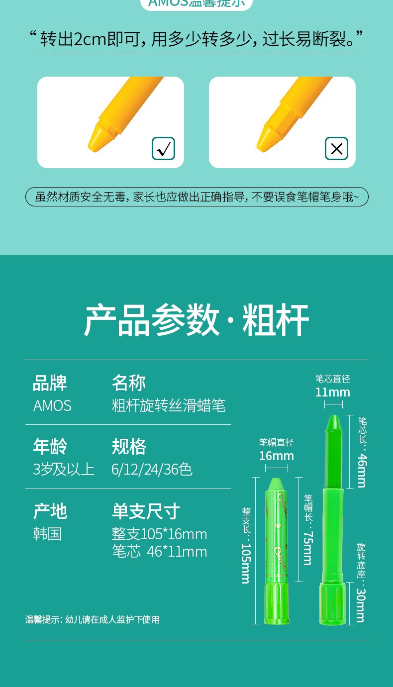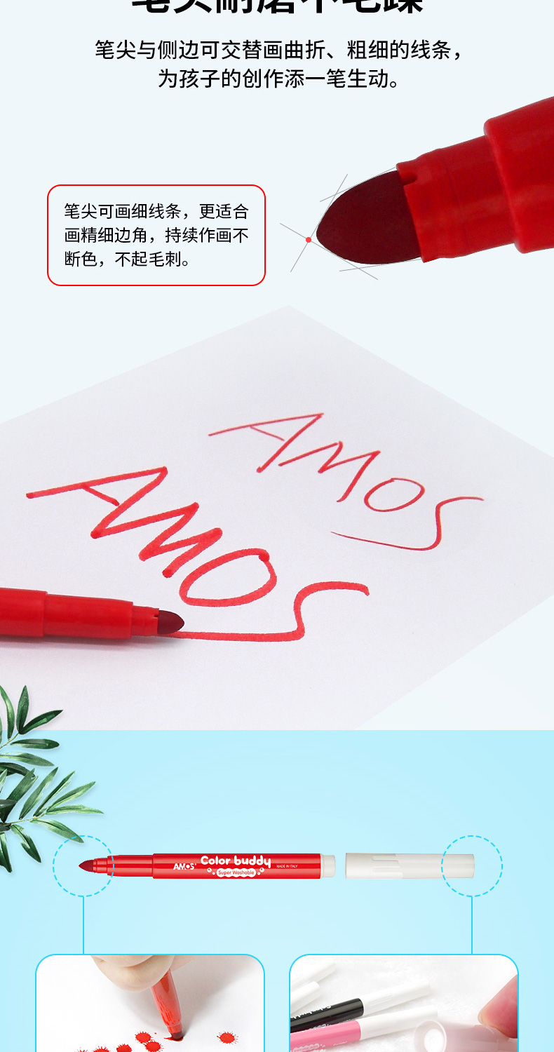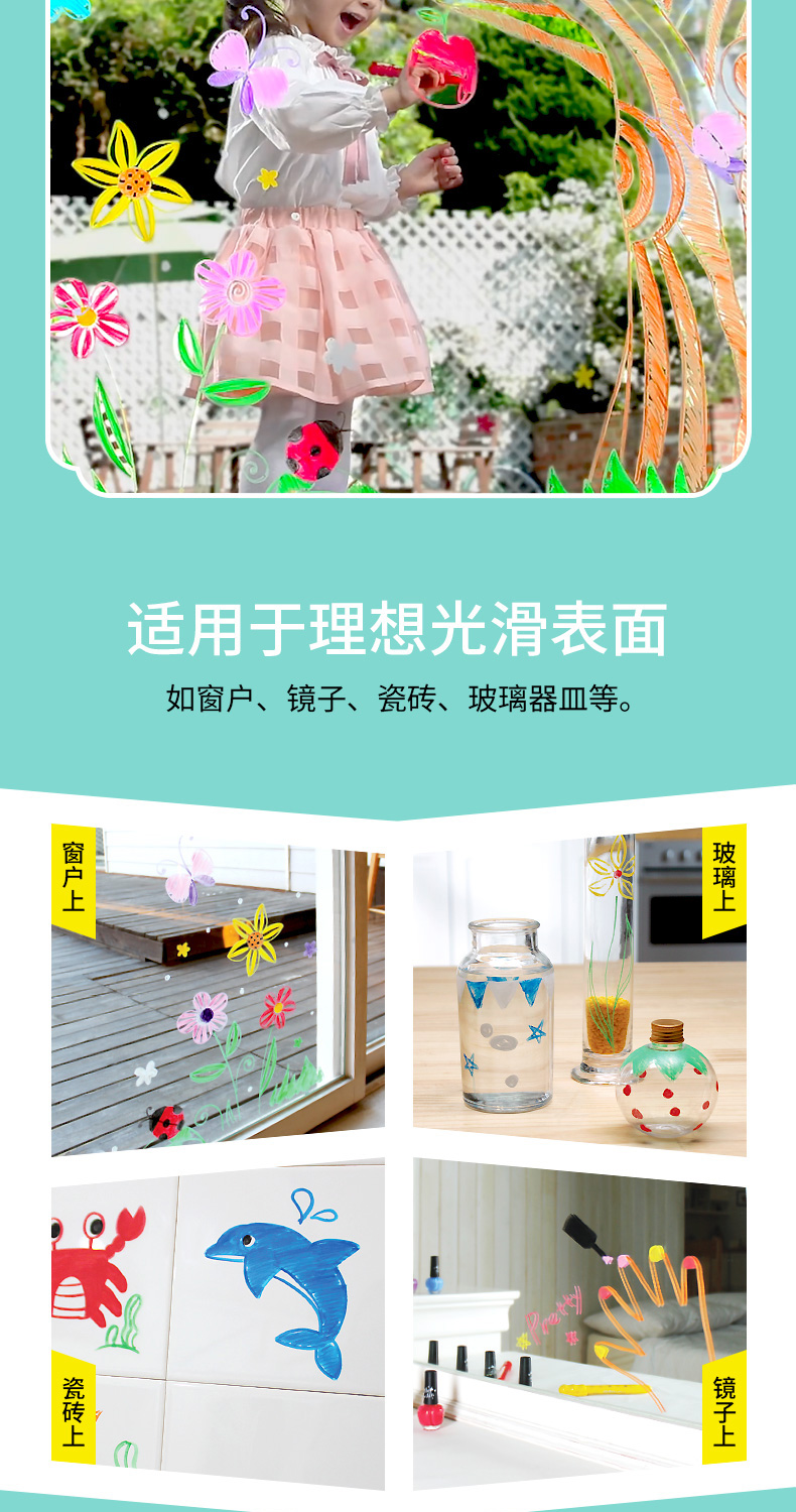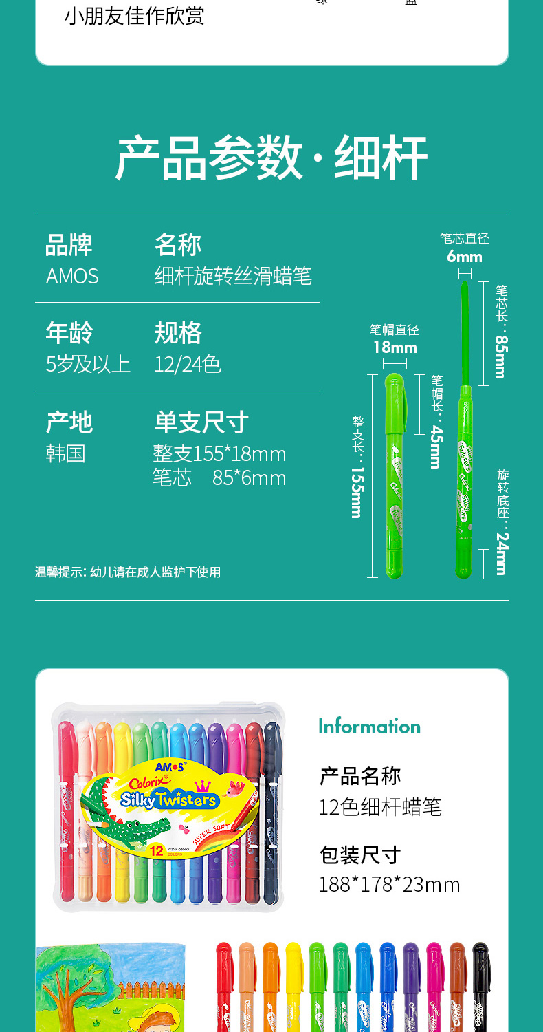 AMOS 玻璃瓷砖蜡笔 可水洗 12色 塑料收纳盒