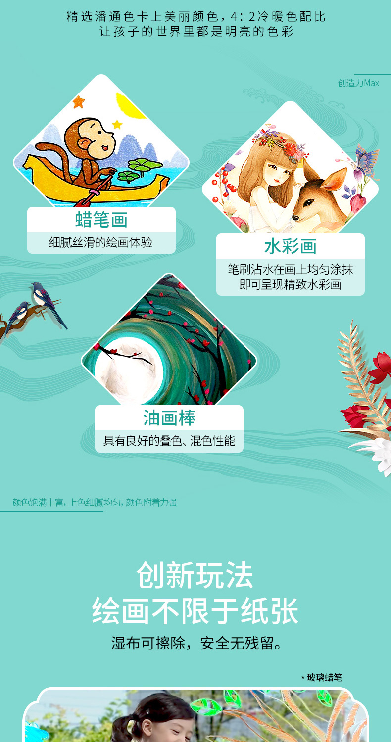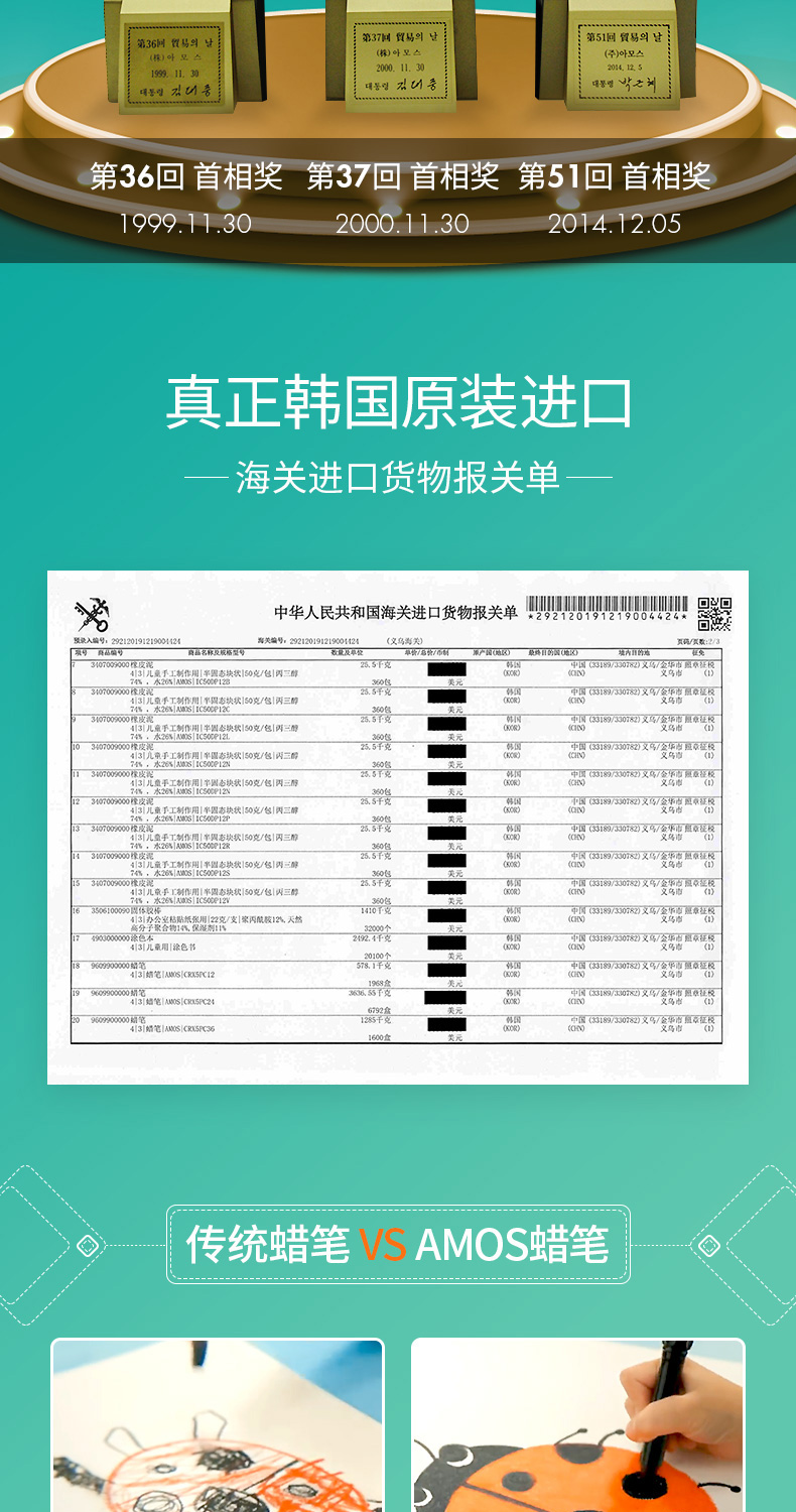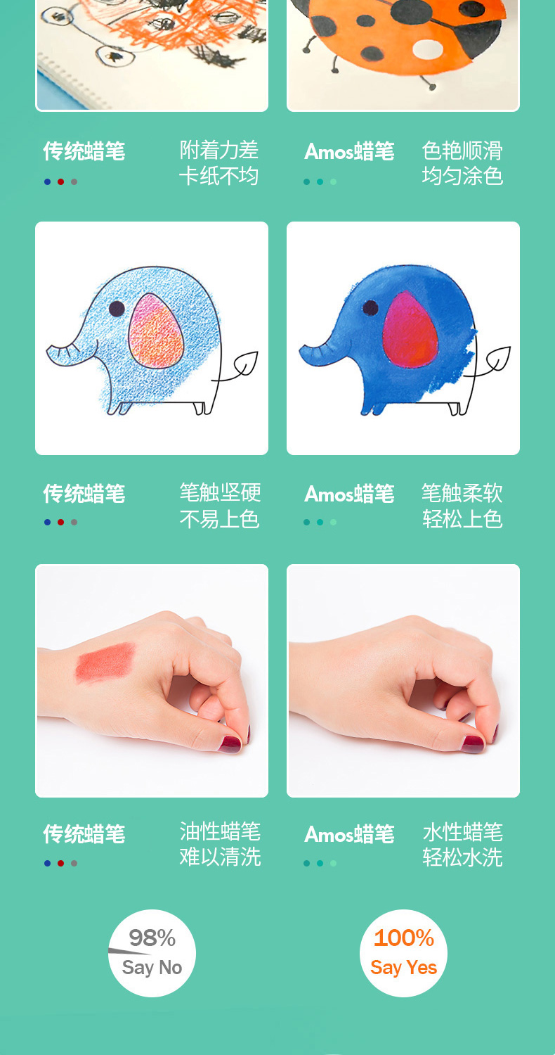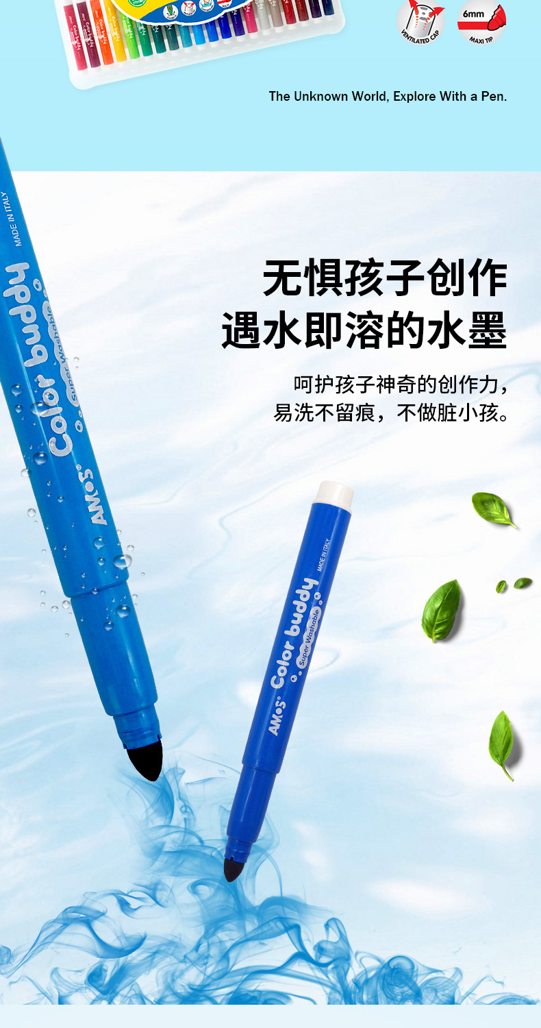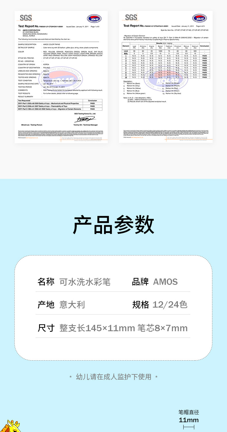 AMOS 玻璃瓷砖蜡笔 可水洗 12色 塑料收纳盒