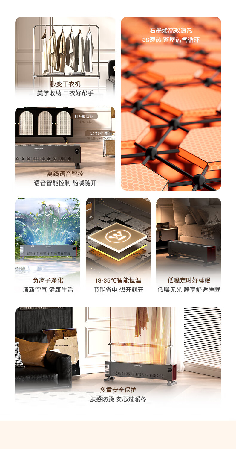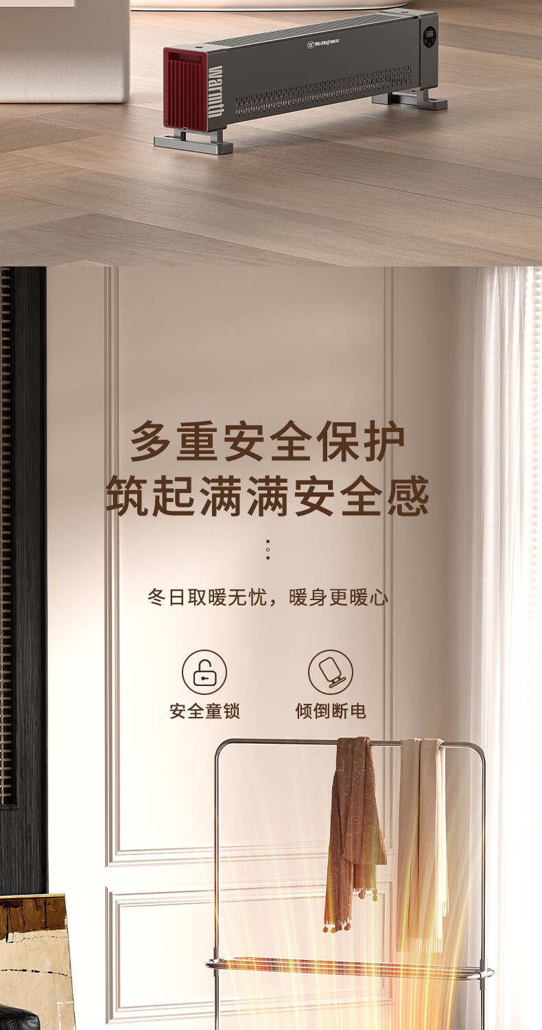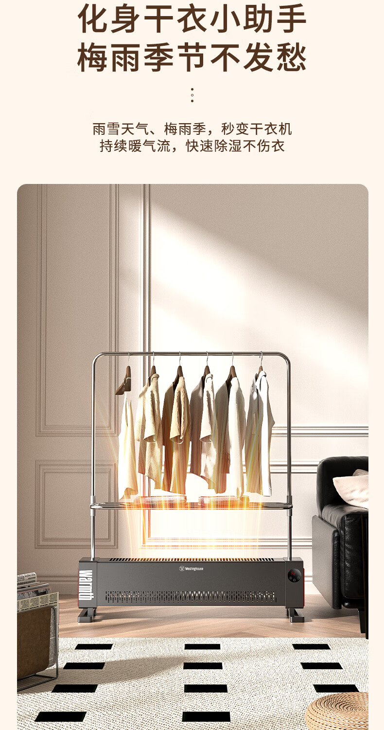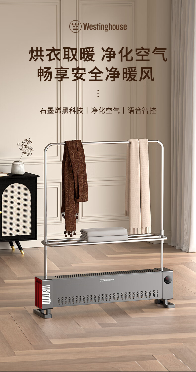 「3秒速热全屋循环 500W负离子净化 AI智能控温」西屋2024新款 踢脚线取暖器S608 单机款/衣架款