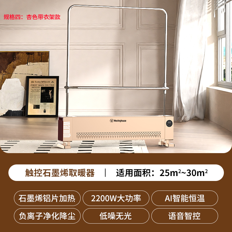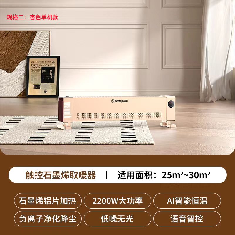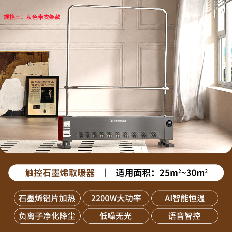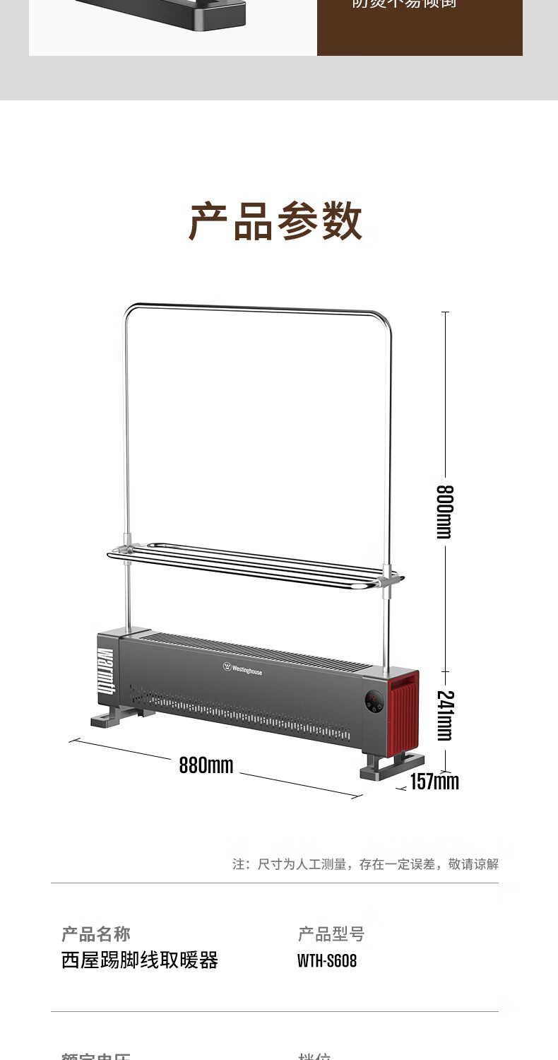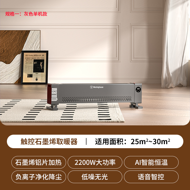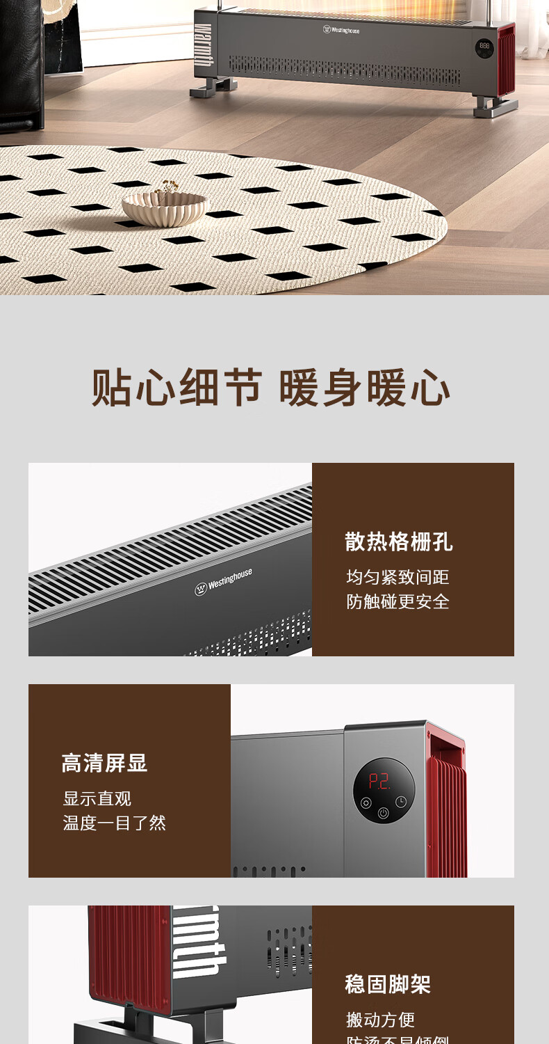 「3秒速热全屋循环 500W负离子净化 AI智能控温」西屋2024新款 踢脚线取暖器S608 单机款/衣架款