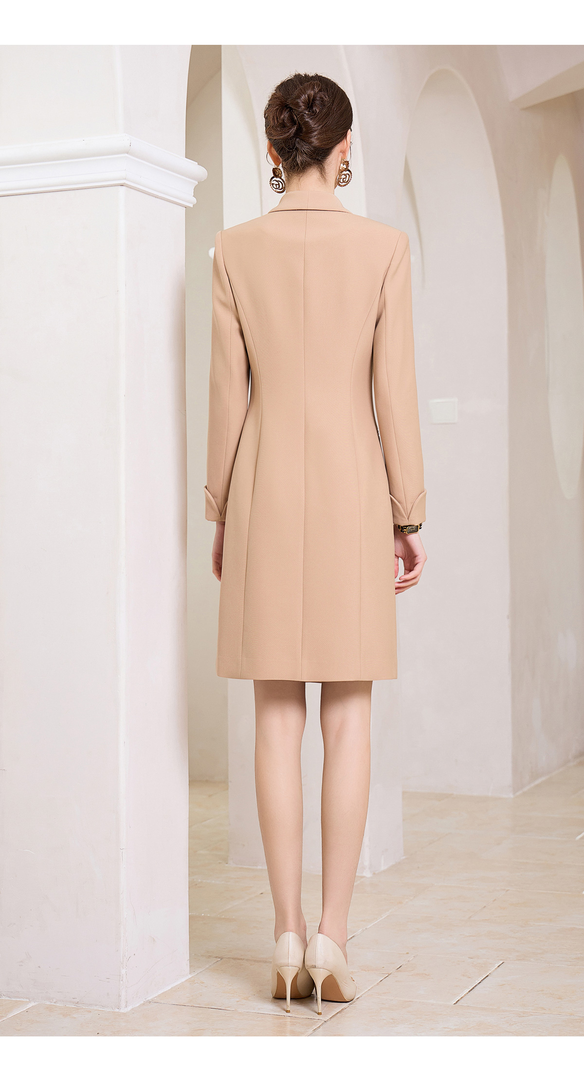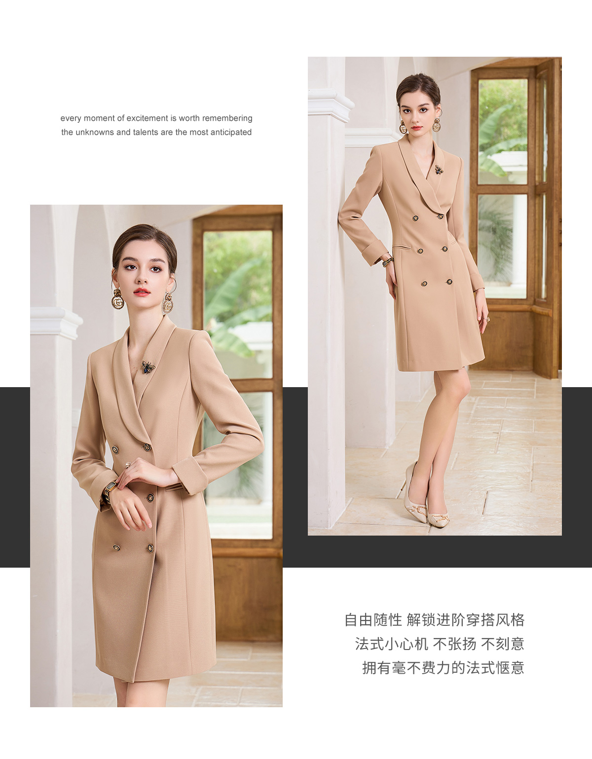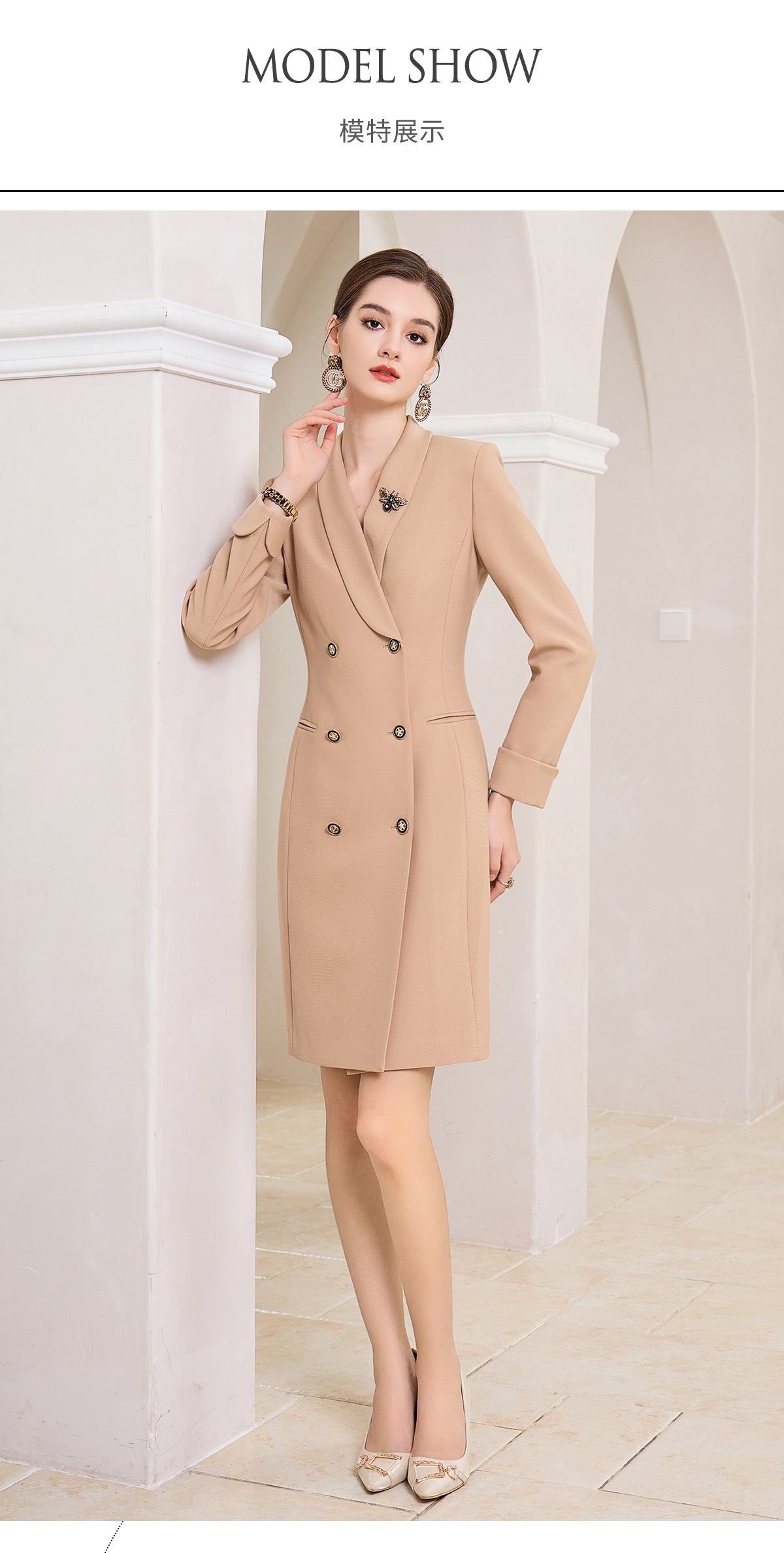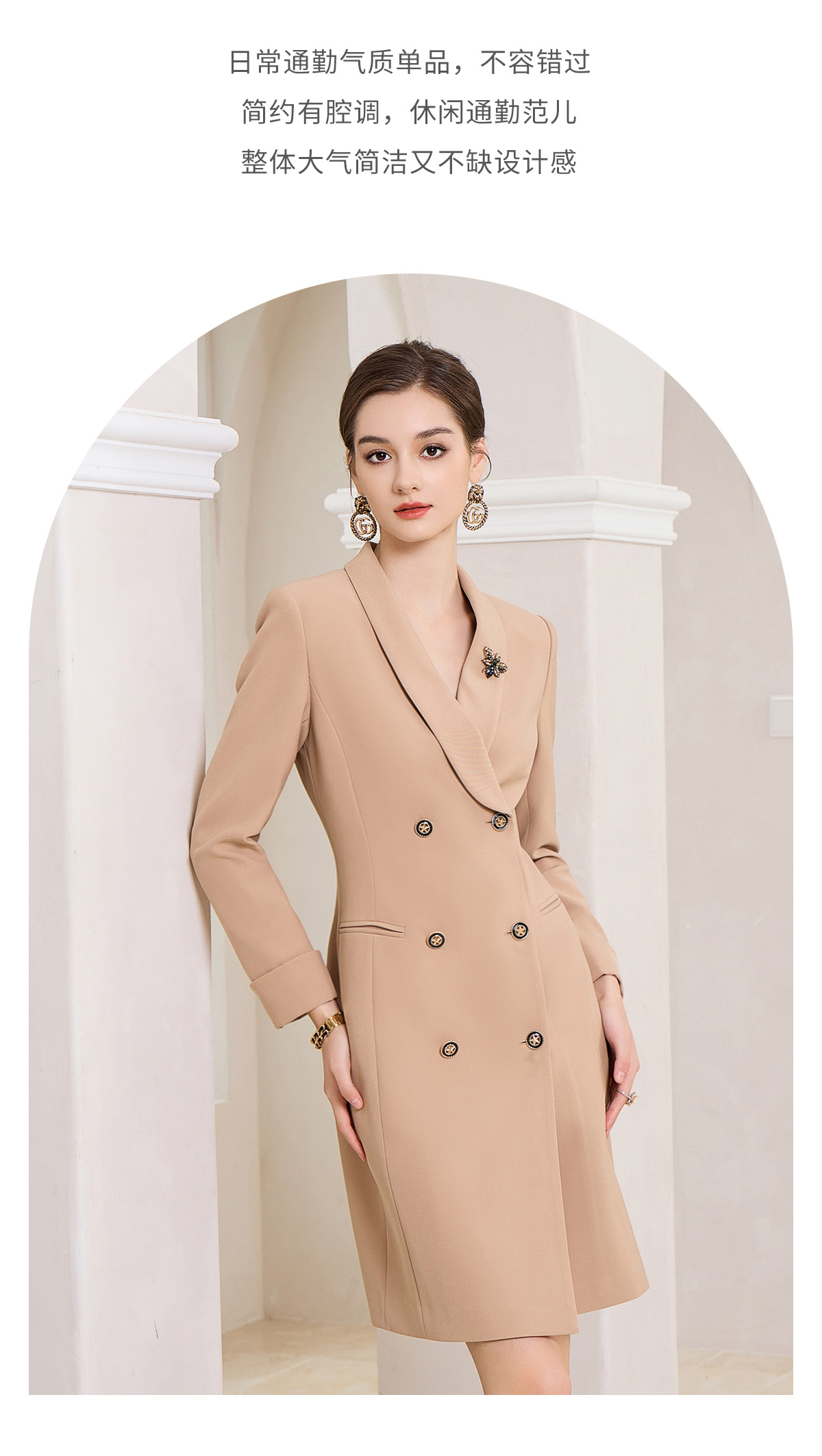 IWY/时尚高端卡其色双排扣连衣裙设计感职业西装裙Q1004
