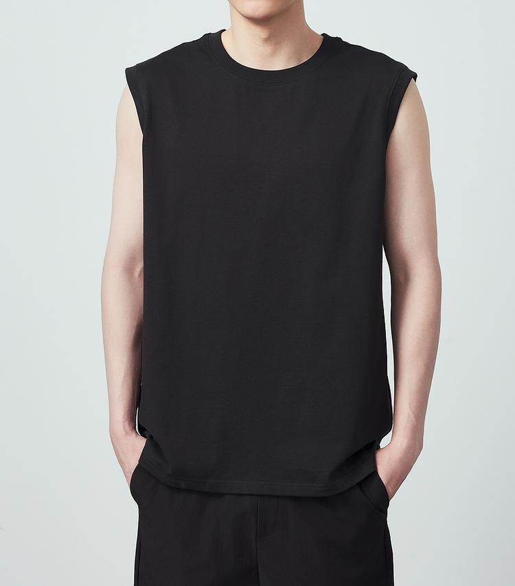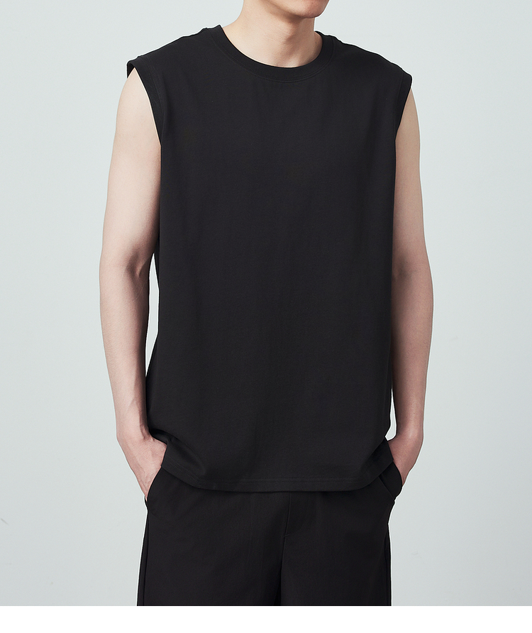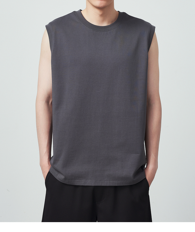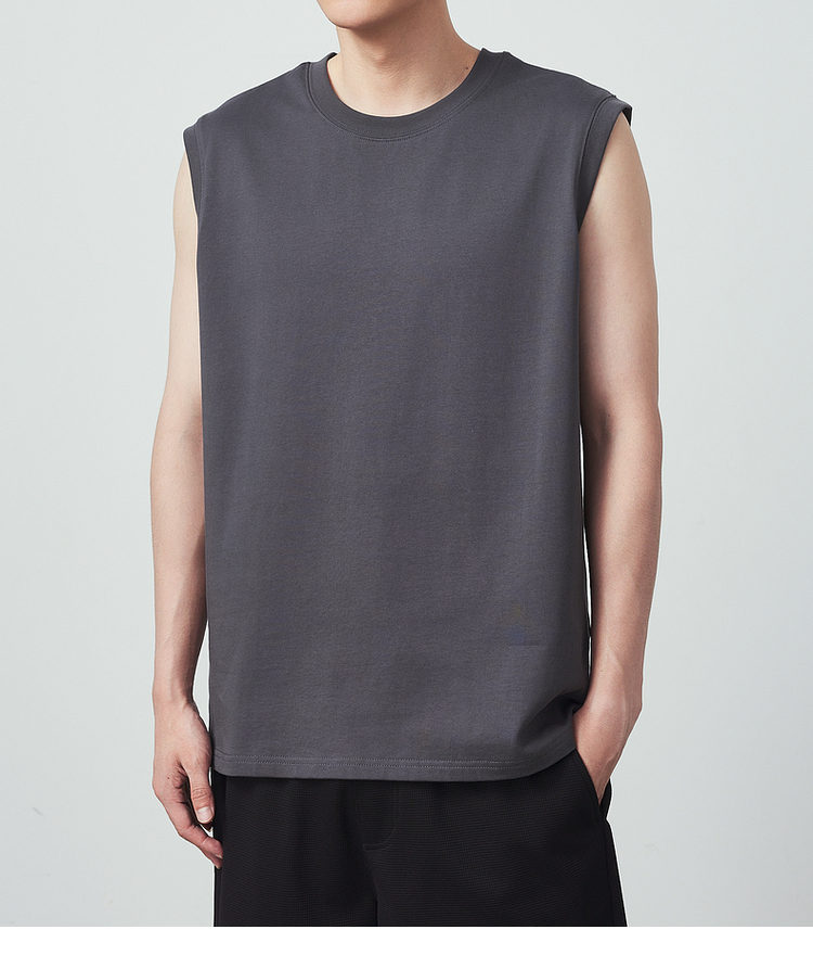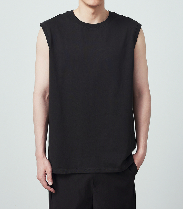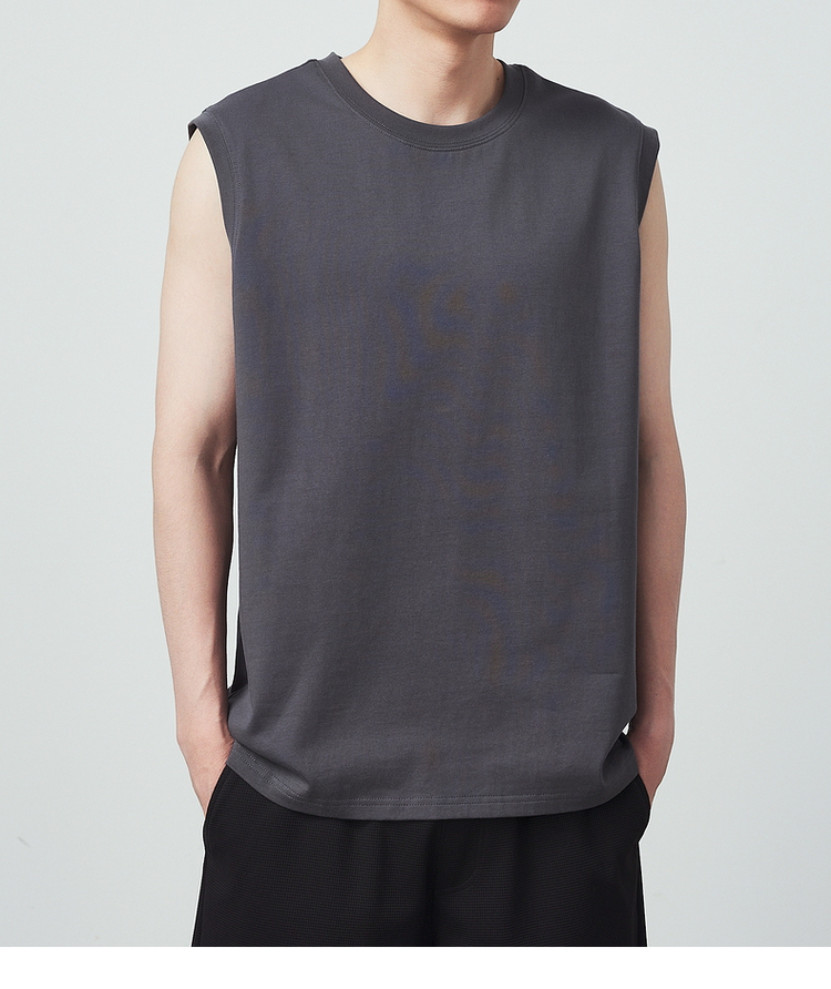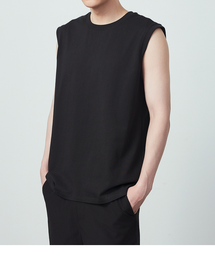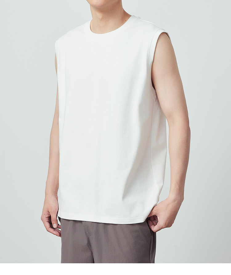 墨麦客男装长绒棉凉感无袖背心男士2024夏季新款休闲圆领t恤衫男